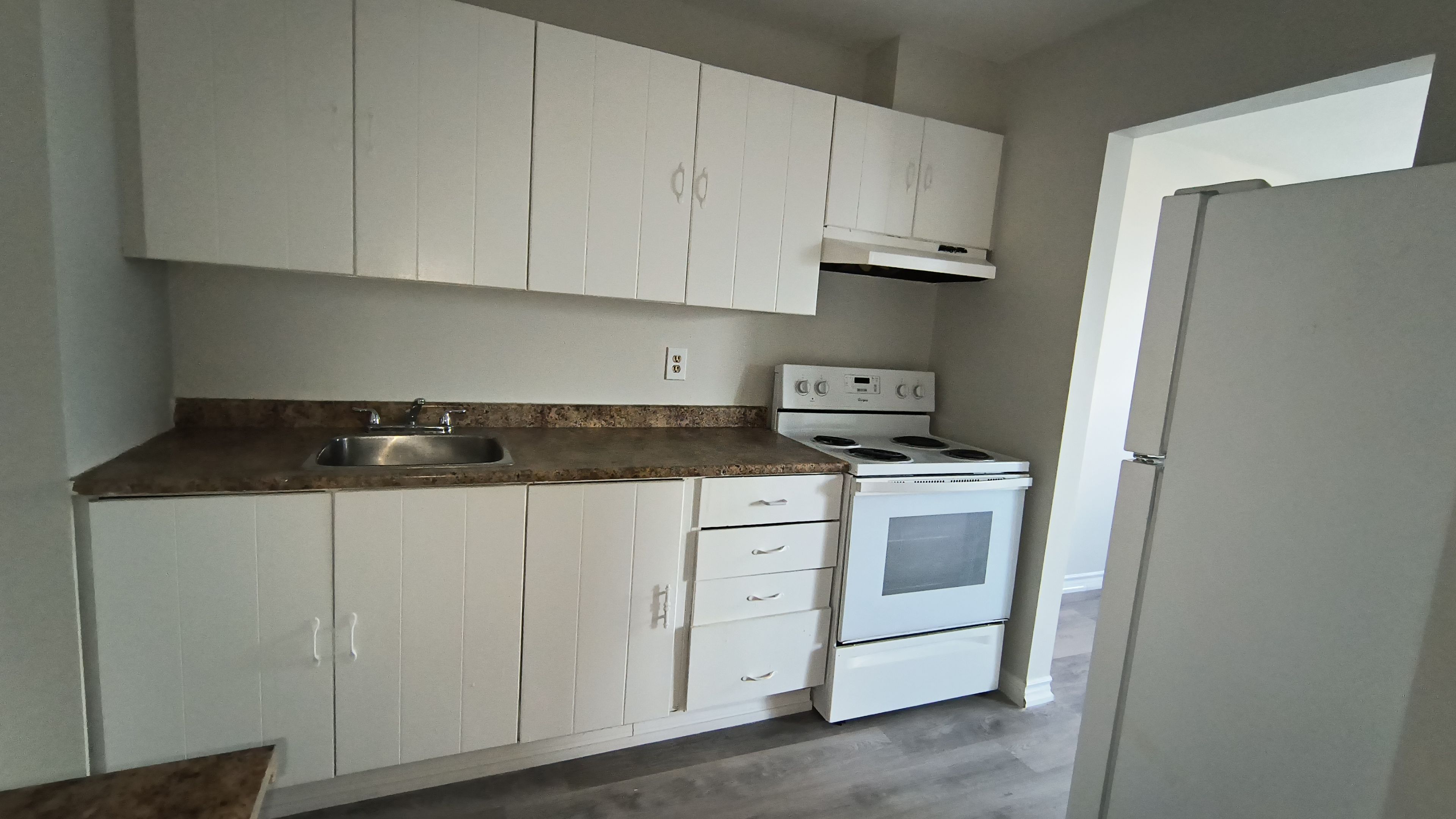 Clean, renovated, bright, 2 bedroom apartment in a quiet building. Convenient location. Spacious, open concept living/dining room, laminate floors throughout. Kitchen has quality oak cabinetry. Large closet in primary bedroom, well-maintained building, fantastic location! Minute drive from hwy 401, public transit at your door step. Close to all amenities, shopping, schools, banks, grocery plus so much more!