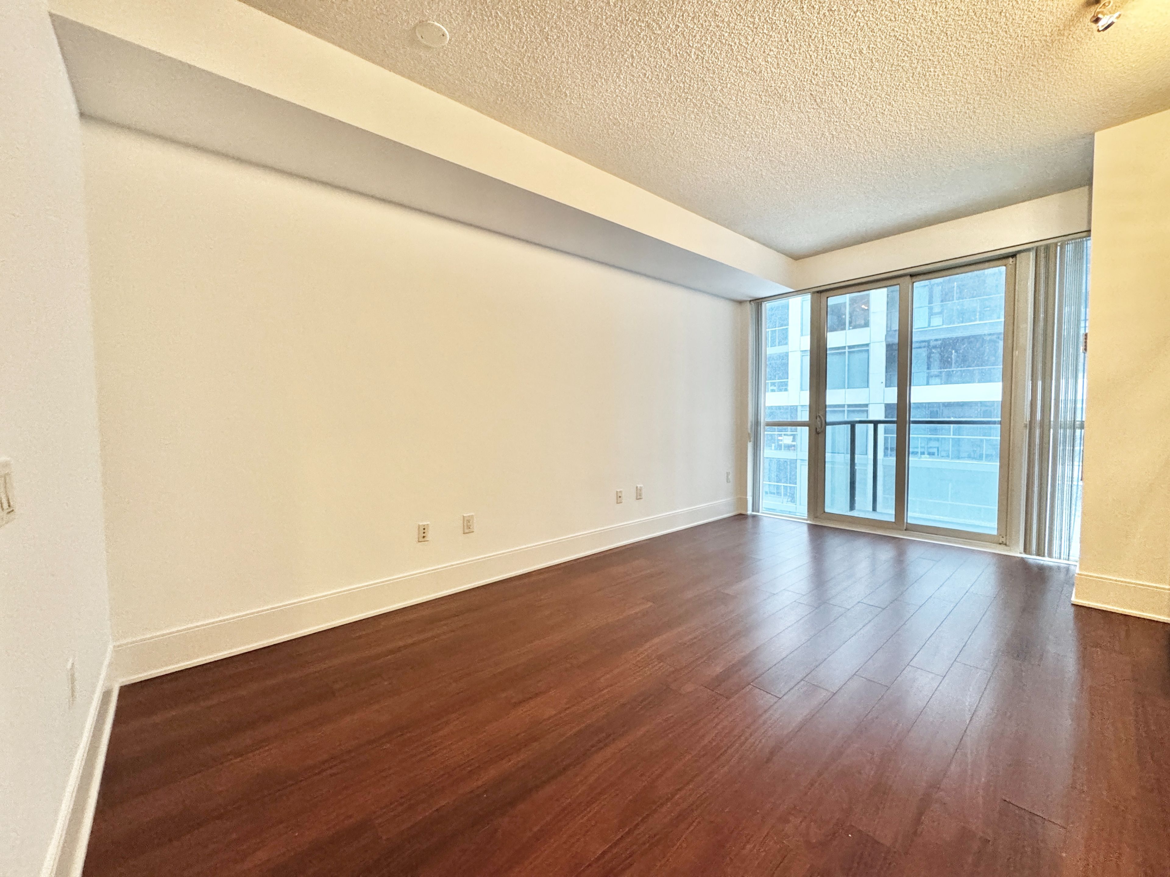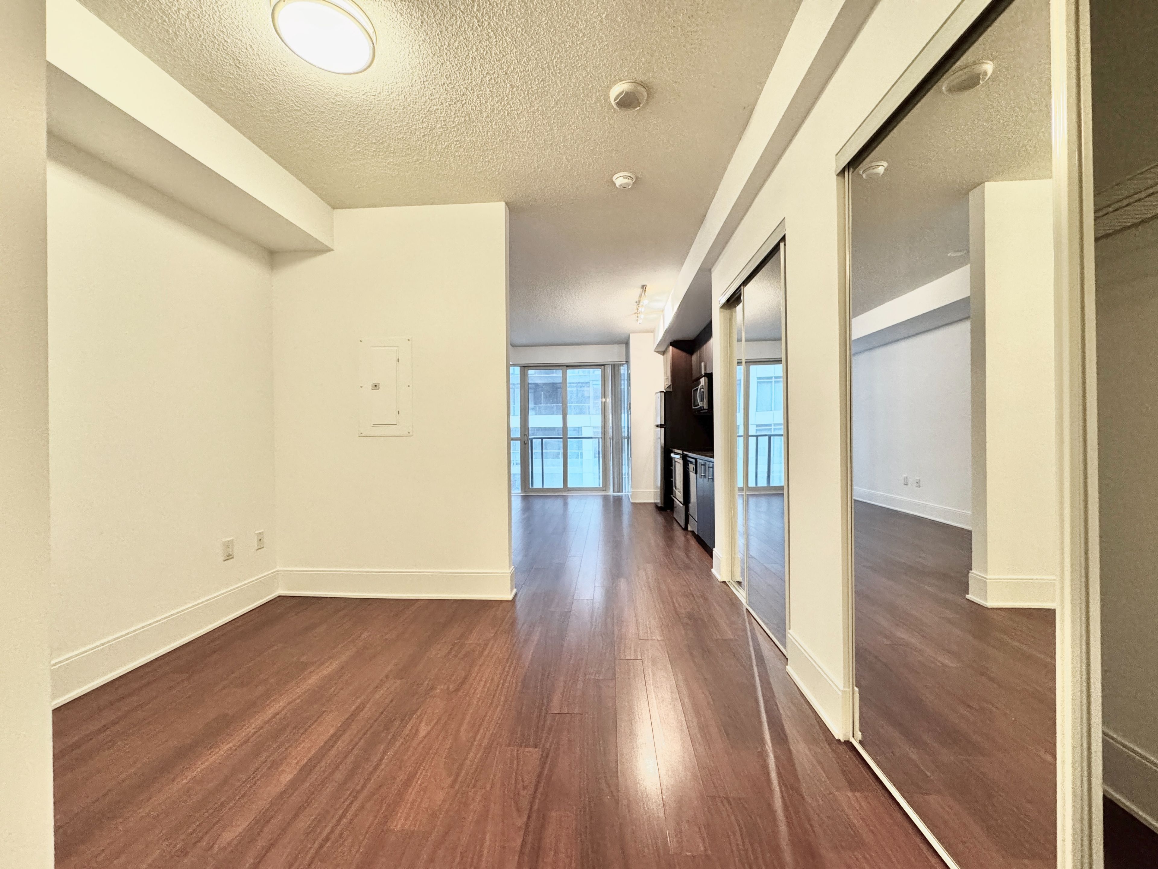 Spacious studio suite with a smart layout that offers a defined living area, creating a comfortable separation between sleeping and living space. This well-maintained unit features a functional floor plan, private balcony, and two large closets providing excellent storage. One locker is included for additional convenience. Building amenities include: concierge, gym, sauna, billiards and media rooms, party room, rooftop deck with city views, and visitor parking. Unbeatable downtown location just steps from king st west, the well, farm boy, stackt market, waterfront trails, parks, and some of toronto's best restaurants, cafés, and nightlife. Convenient access to transit and major highways.