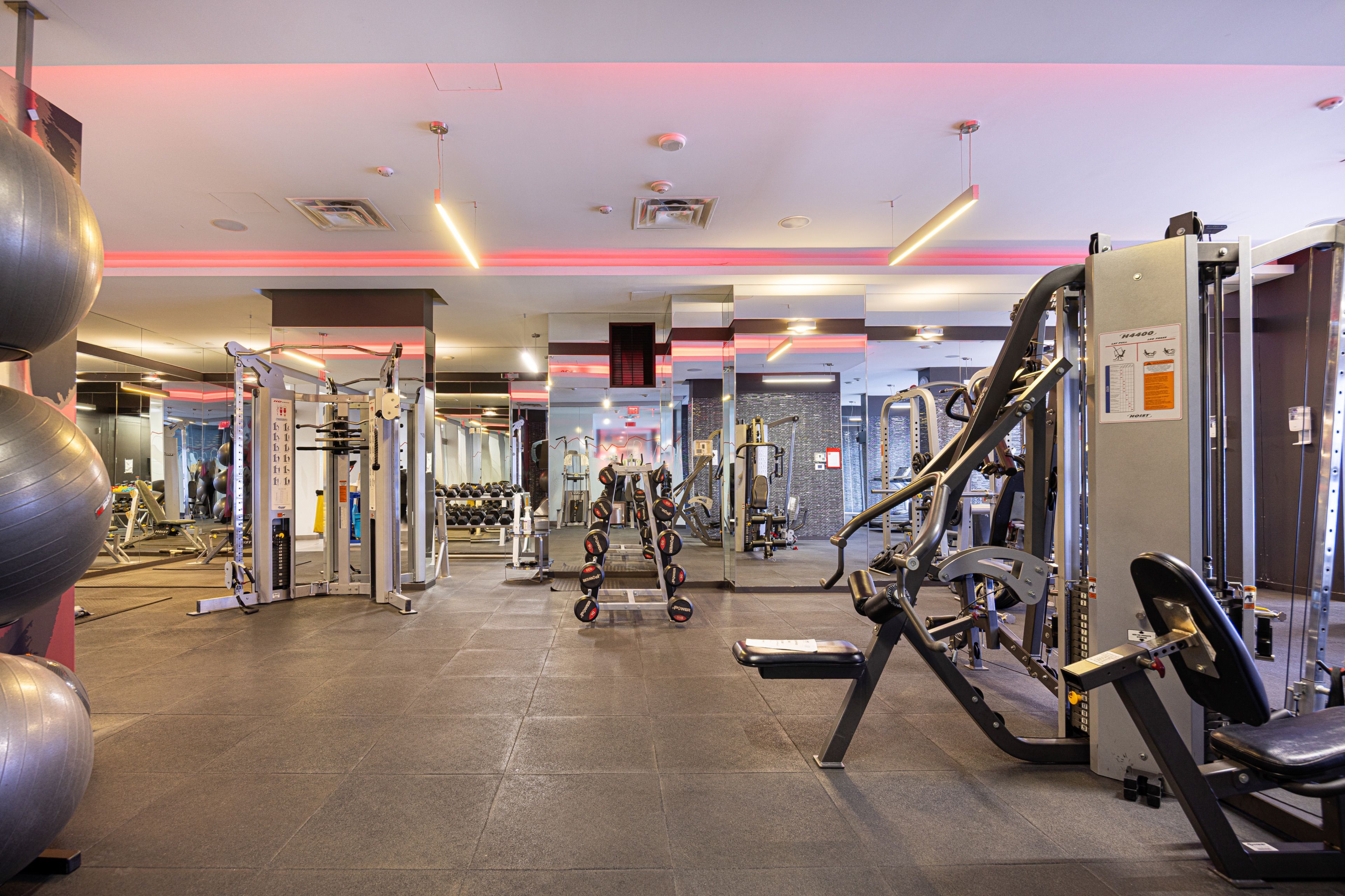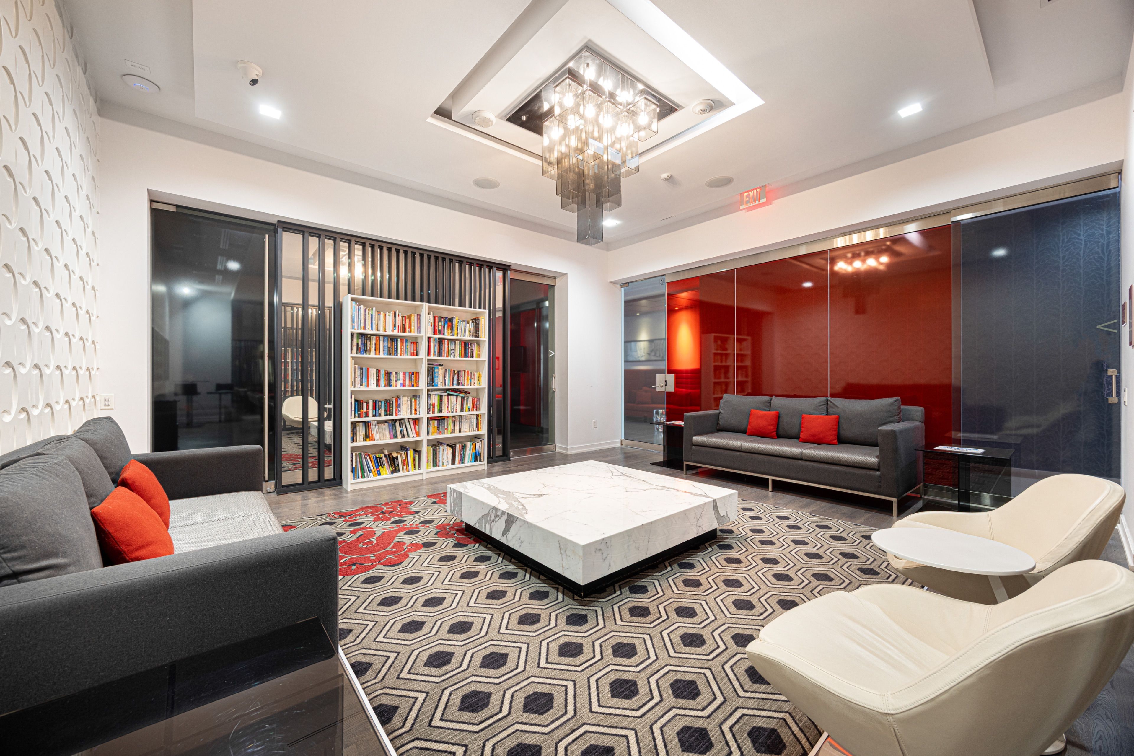 • Building amenities include fitness center, rooftop terrace, and party room.
