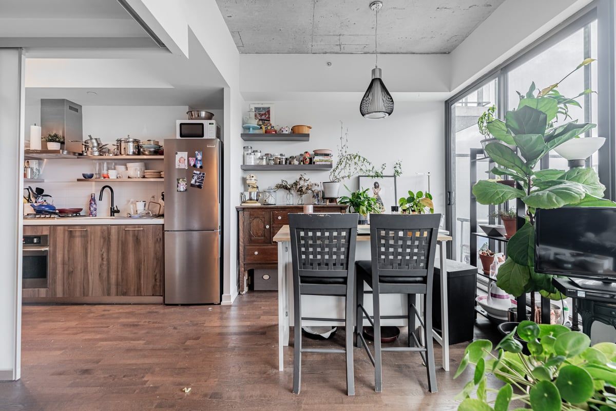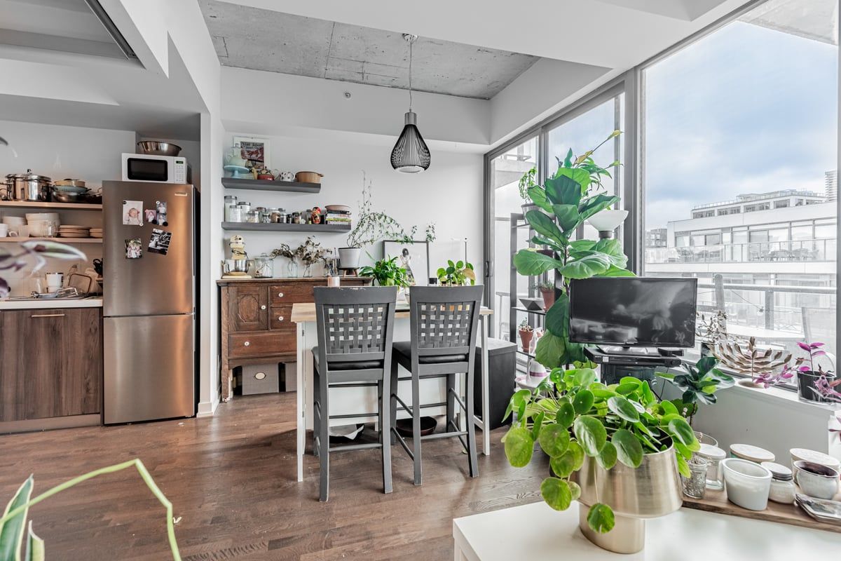 10th floor fashion house - 1 bedroom "soft loft" in the heart of central king west. Look up at the "10 ft ceilings" and feel the difference that extra 2 ft makes. Form and function work in harmony in this popular loft. Yes, you really feel the 18 ft width of wall to wall,floor to ceiling windows, which open to you're own outdoor living space that you can enjoy relaxing and entertaining on. Bright, open concept, living and dining rooms ,practically layed out and accented with hardwood floors (throughout the loft). A generous primary bedroom has a double closet,queen bed sized and frosted 9 ft tall sliding doors. Sleek kitchen design includes "cooking with gas", stainless steel appliances ."roomy stylish bathroom" frameless glass shower-ample space. Oh.. And yes, simply one of the best outdoor summer pools/gyms in the city. At 560 king you have every amenity in the city, anyone needs, right at your door. **extras** amenities include, security system & concierge, 9th floor rooftop infinity pool,cabanas,terrace,party room and gym. Ttc, st andrews park,dog park, grocerys,incl. Loblaws,torontos best restaurants, cafes etc..