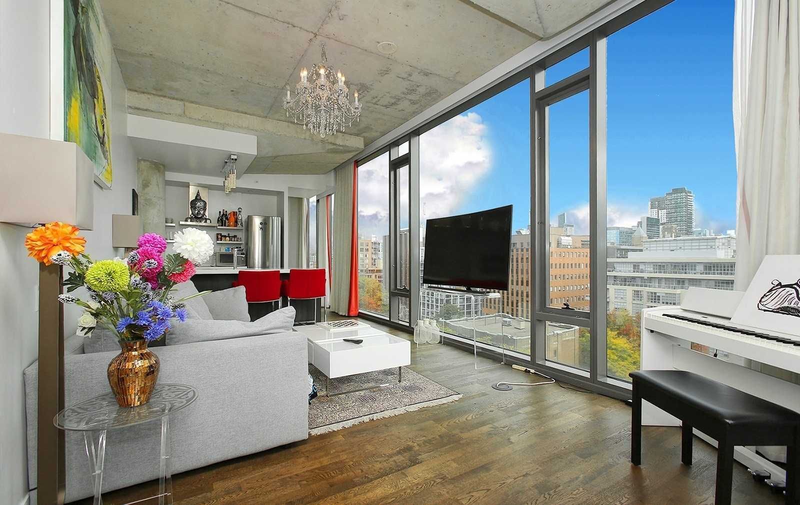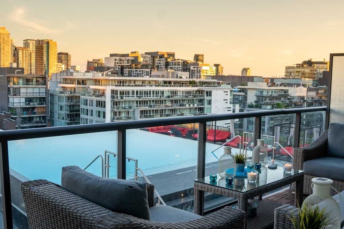 Experience luxury living in this fully furnished 2-bedroom sub-penthouse corner suite at fashion house, located in vibrant king st west. Enjoy breathtaking south-facing views of the cn tower &toronto's skyline from every window, w/direct views of the rooftop pool right in front of your spacious balcony. This bright & airy unit features an open-concept, split-layout design for privacy& comfort w/floor-to-ceiling windows throughout, including the primary bedroom. The modern kitchen offers sleek stone countertops, stainless steel appliances, & a chic marble backsplash, while the recently renovated ensuite boasts all-marble finishes. Additional highlights include hardwood floors, exposed concrete ceilings, and a gas line for bbqs on the balcony, which includes an enclosed area for added versatility. Situated in one of toronto's top neighborhoods with a 98 walk score, you're just steps from trendy restaurants, nightlife, and entertainment. This is urban living at its finest!