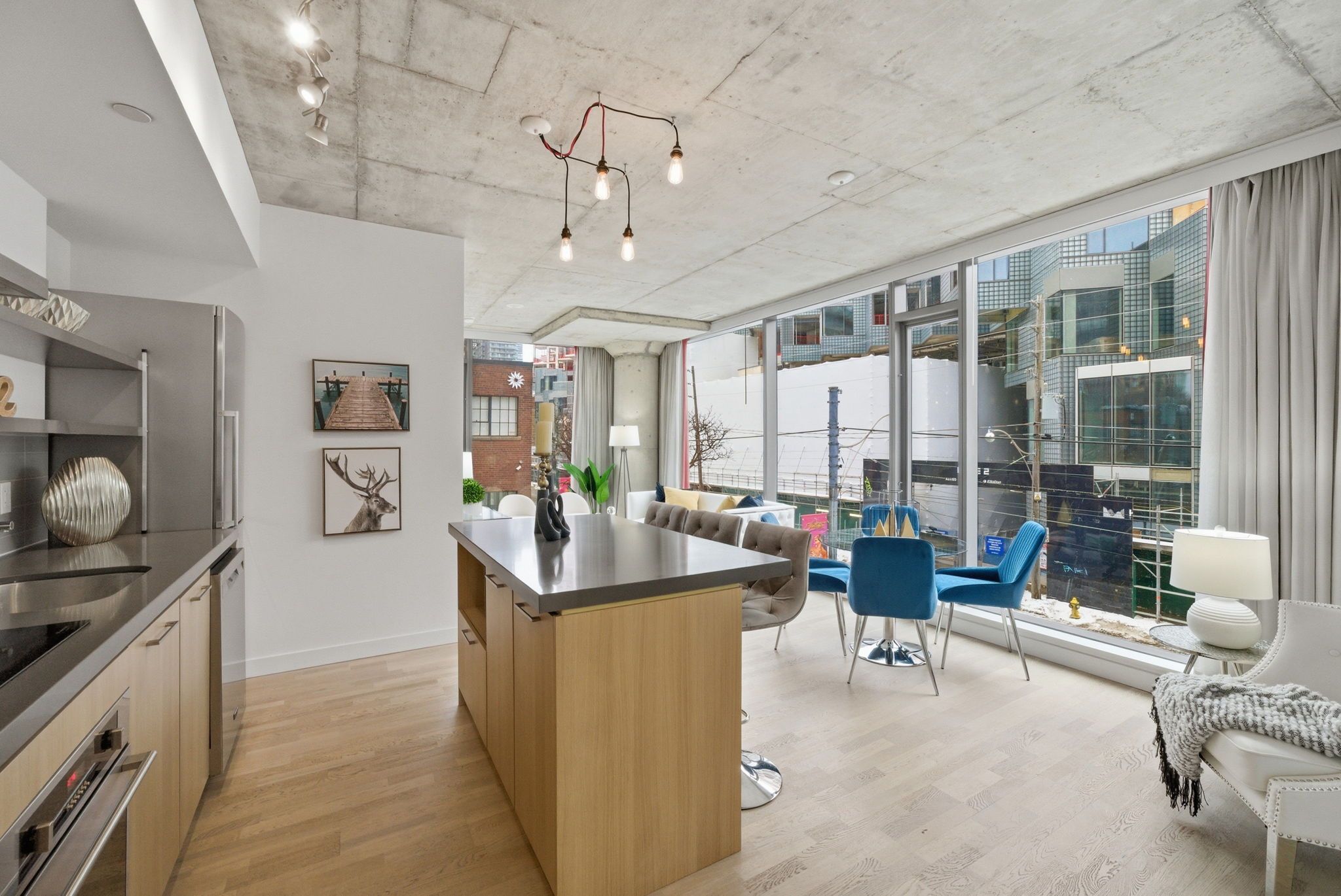 • Bright corner loft with floor-to-ceiling windows and stunning city views.