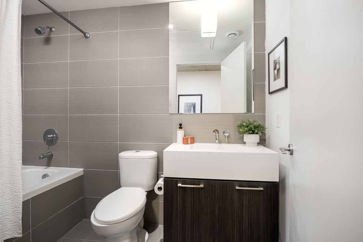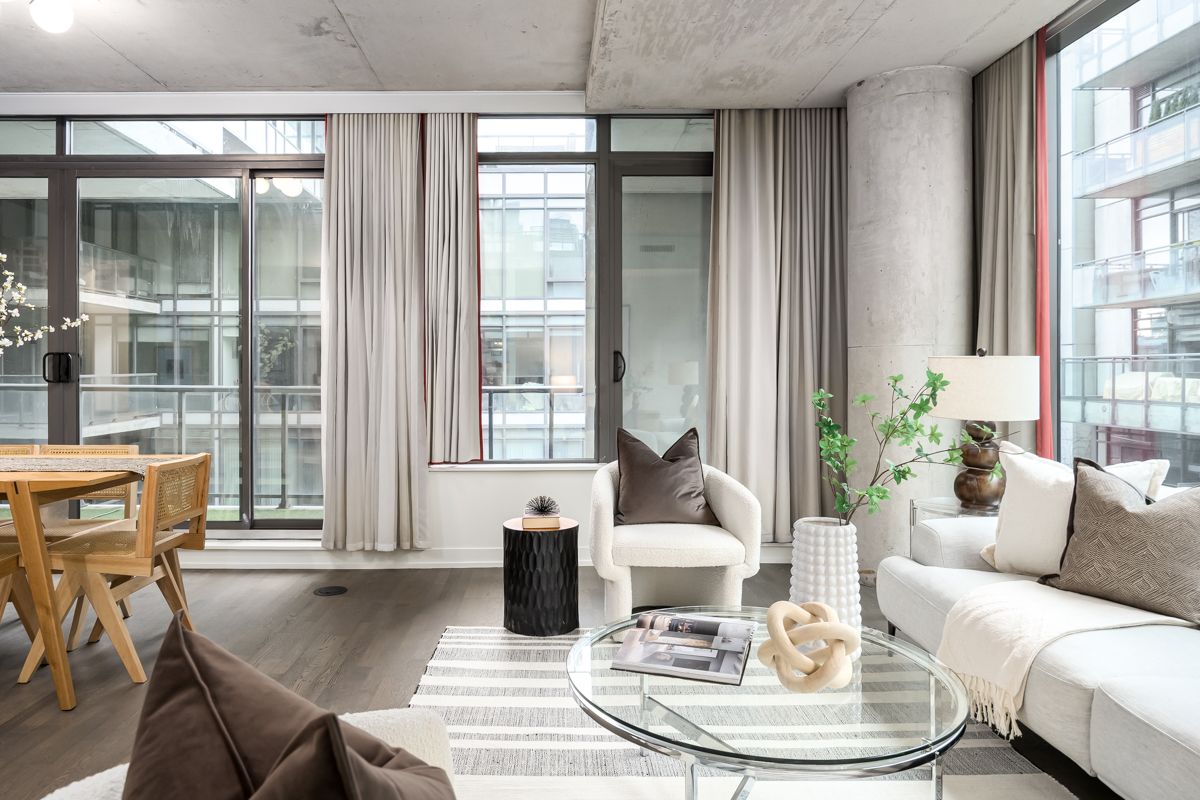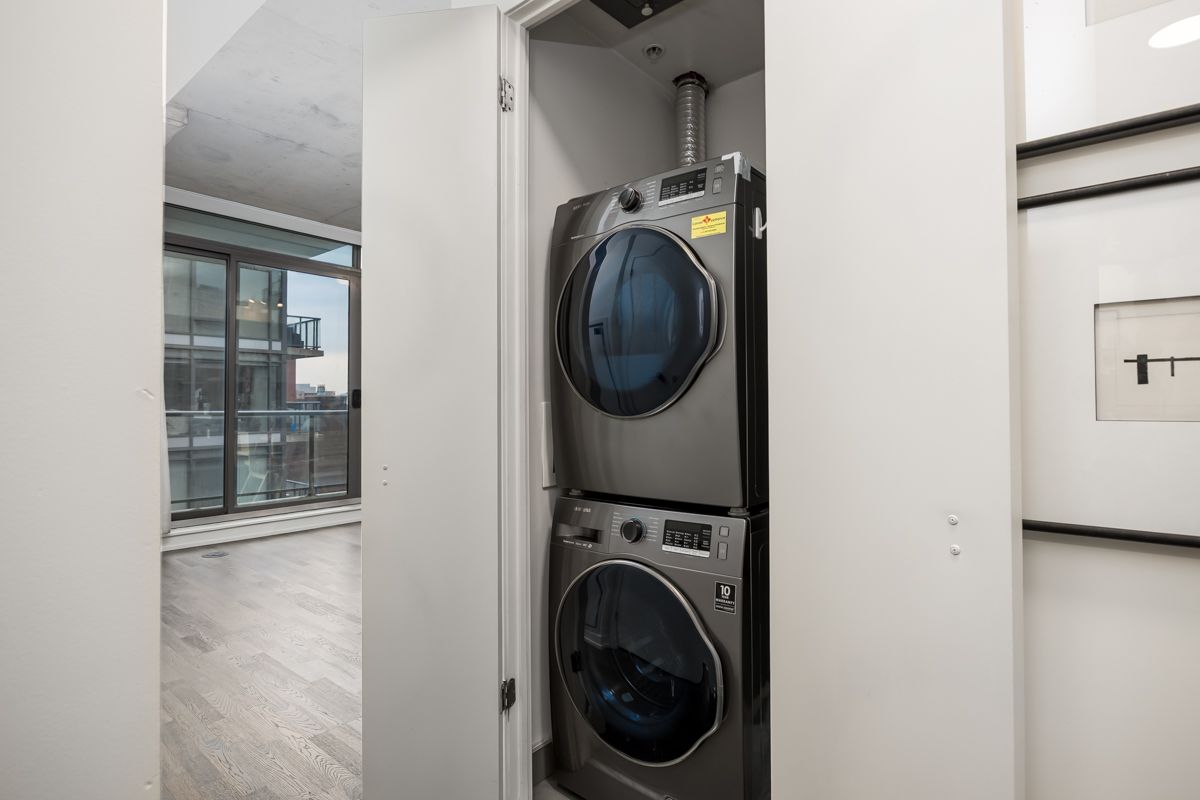 Welcome to fashion house lofts located in one of toronto's most vibrant and iconic neighbourhoods! This bright, freshly painted, open concept suite is 792 sq ft with exposed concrete ceilings and floor to ceiling windows! The modern kitchen has a gas cook-top, ss appliances and large centre island. A chef's dream! Double sliding doors open to the large 283 sq ft balcony that spans the length of the suite. There is a rare gas bbq hook-up perfect for entertaining! The primary bedroom also has a sliding door to the balcony for seamless indoor-outdoor relaxing on quiet mornings or evenings. The spacious den provides added space for a generous office ideal for work-life balance. 1 parking and locker are included. Top tier amenities include a stunning infinity pool w/cabanas, gym and party room! Fashion house is just steps to world-class dining, entertaining and transportation. The keg, café renee, gusto 101, pai, aera, wilbur & shake shack are some of the many food options. The well indoor/outdoor shopping and dining space is an architectural marvel and a must see. There are also countless health and wellness facilities within a 10 min. Walk. Fashion house has a near perfect walk and transit score ideal for convenience and luxury living! Don't miss this opportunity to own in one of the most desirable boutique buildings in king west!