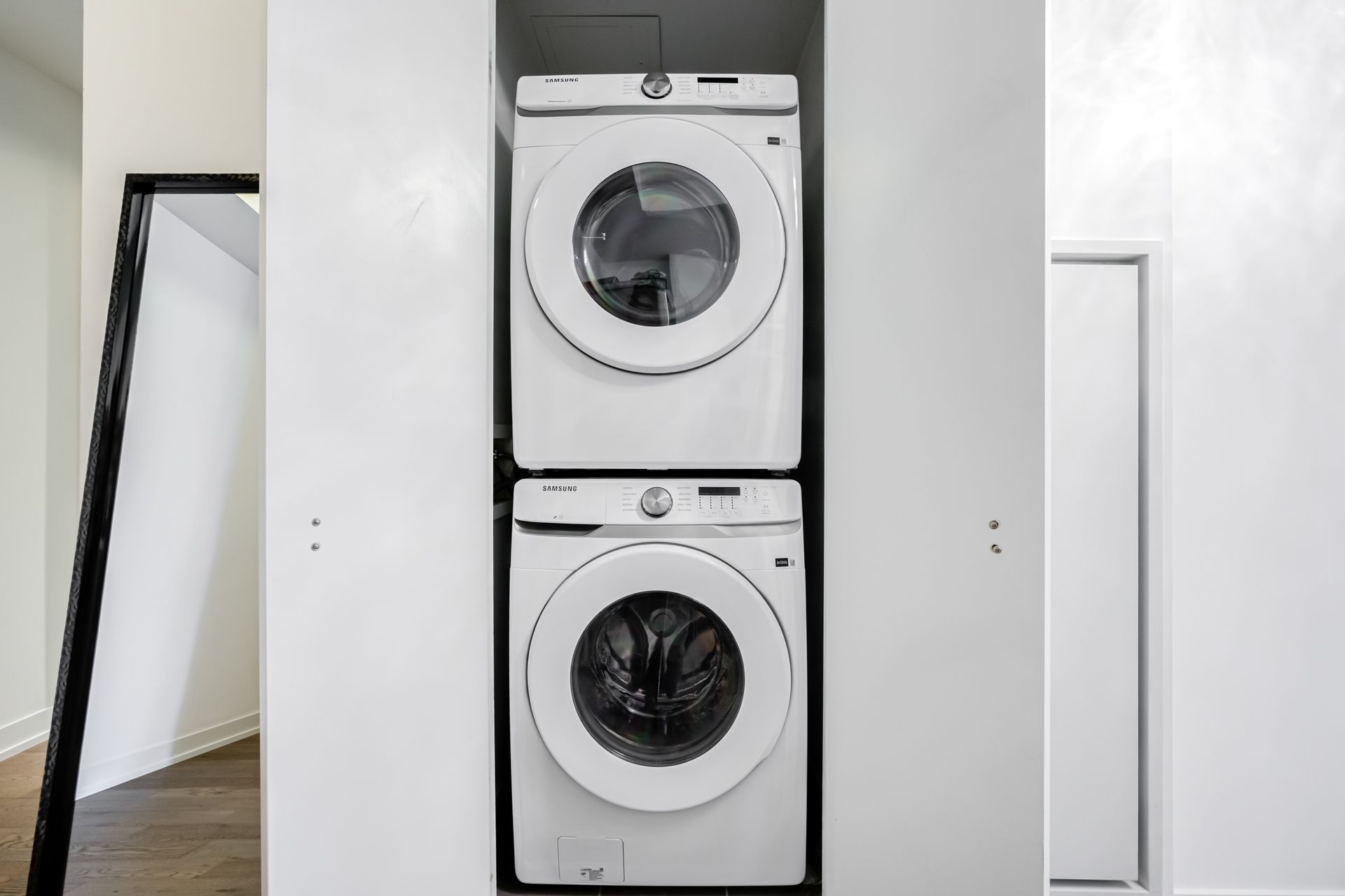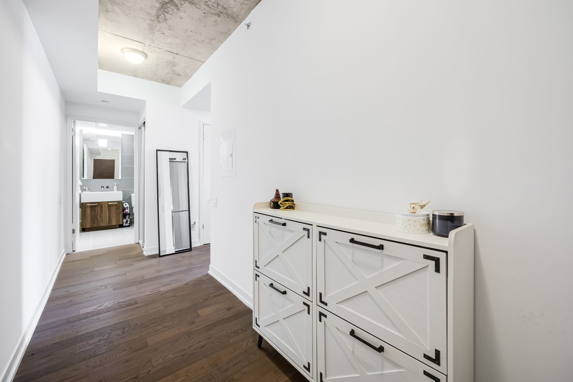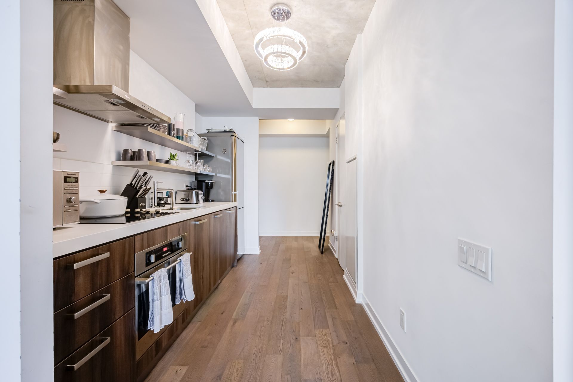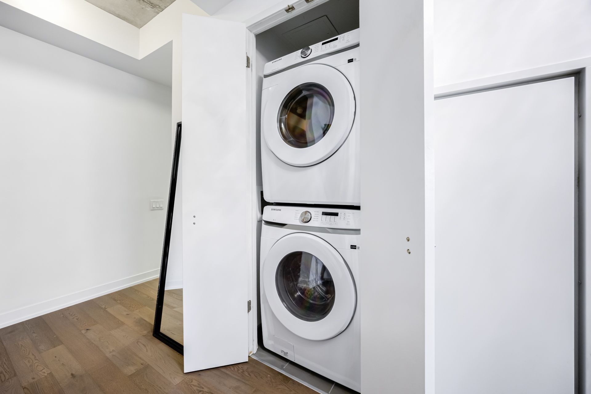 • Stylish loft aesthetic with 9 ft ceilings and hardwood flooring.