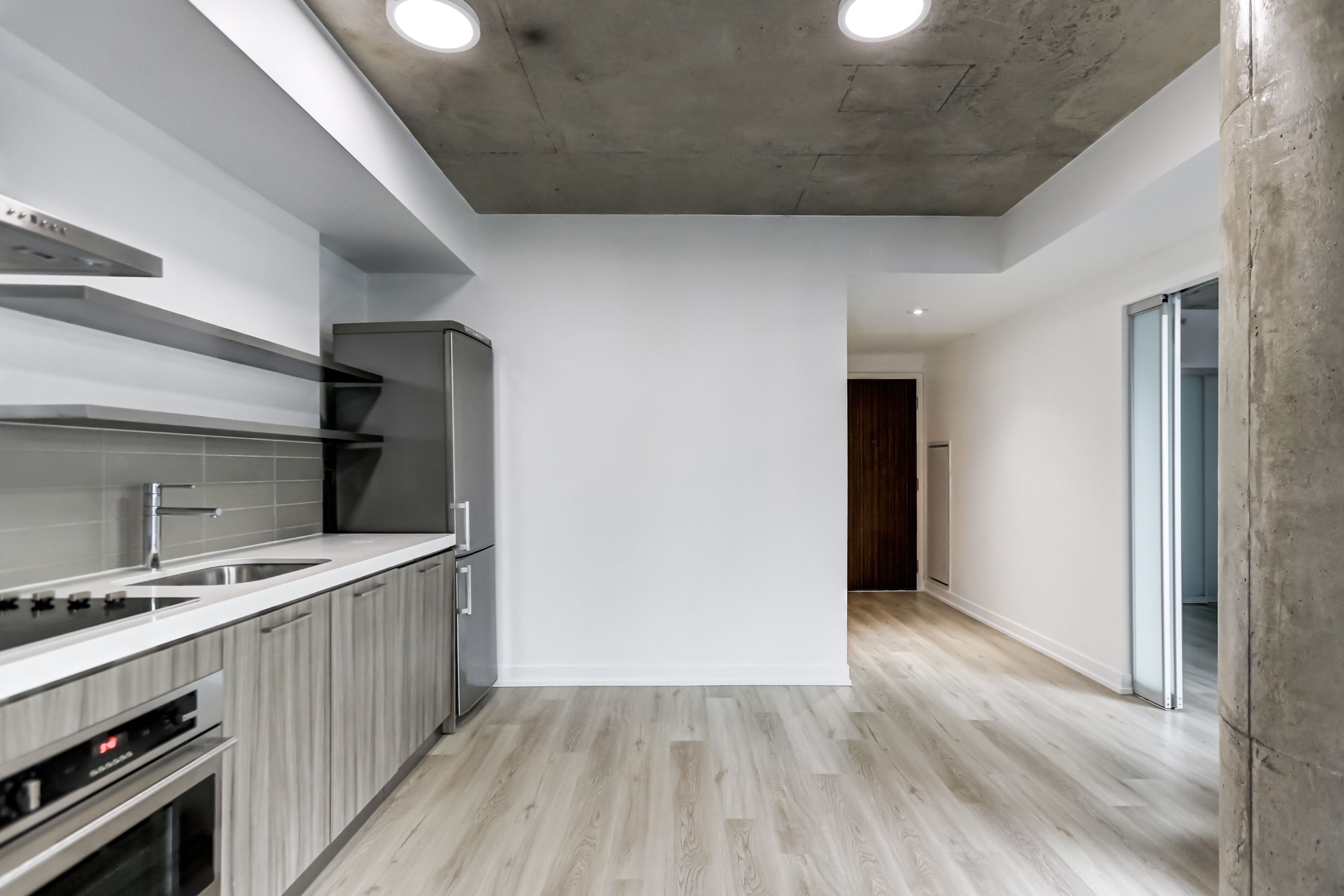 Where heritage meets lifestyle-welcome to fashion house, a signature freed developments residence in the heart of king west's iconic fashion district. Completed in 2014 and designed by core architects & era architects, this landmark building is a striking example of adaptive reuse, seamlessly blending modern design with toronto's industrial past. Anchoring the development is the restored silver plate building (circa 1875)-now home to the keg steakhouse + bar-bringing historic character and vibrant street presence to this dynamic address. This stylish, large 1-bedroom, 1-bath suite offers approximately 600 sq ft + 88 sq ft balcony, featuring 9 ft exposed concrete ceilings and a true loft-inspired aesthetic. Freshly painted and updated with new vinyl flooring, this move-in ready space allows you to simply drop your furniture and start enjoying the lifestyle. The upgraded scavolini kitchen is equipped with stainless steel appliances and caesarstone countertops, while the spa-inspired bathroom adds a refined touch. A functional layout maximizes every square foot, ideal for both end-users and investors. Step out onto your private balcony and take in the energy of downtown living. Enjoy premium building amenities including 24-hour concierge, a stunning rooftop pool complete with infinity edge and outdoor lounge area, a stylish resident lounge, and a fitness centre. Unbeatable location just steps to the ttc streetcars (504, 510, 511) and surrounded by the best of king west, queen west, and the well-with top restaurants, nightlife, cafes, and everyday essentials including loblaws, farm boy, lcbo, and shoppers drug mart all within minutes. Enjoy access to two exceptional nearby food halls at the well and waterworks, along with a new ymca, adding even more convenience and lifestyle appeal. Endless amenities right at your doorstep. 1 storage locker included