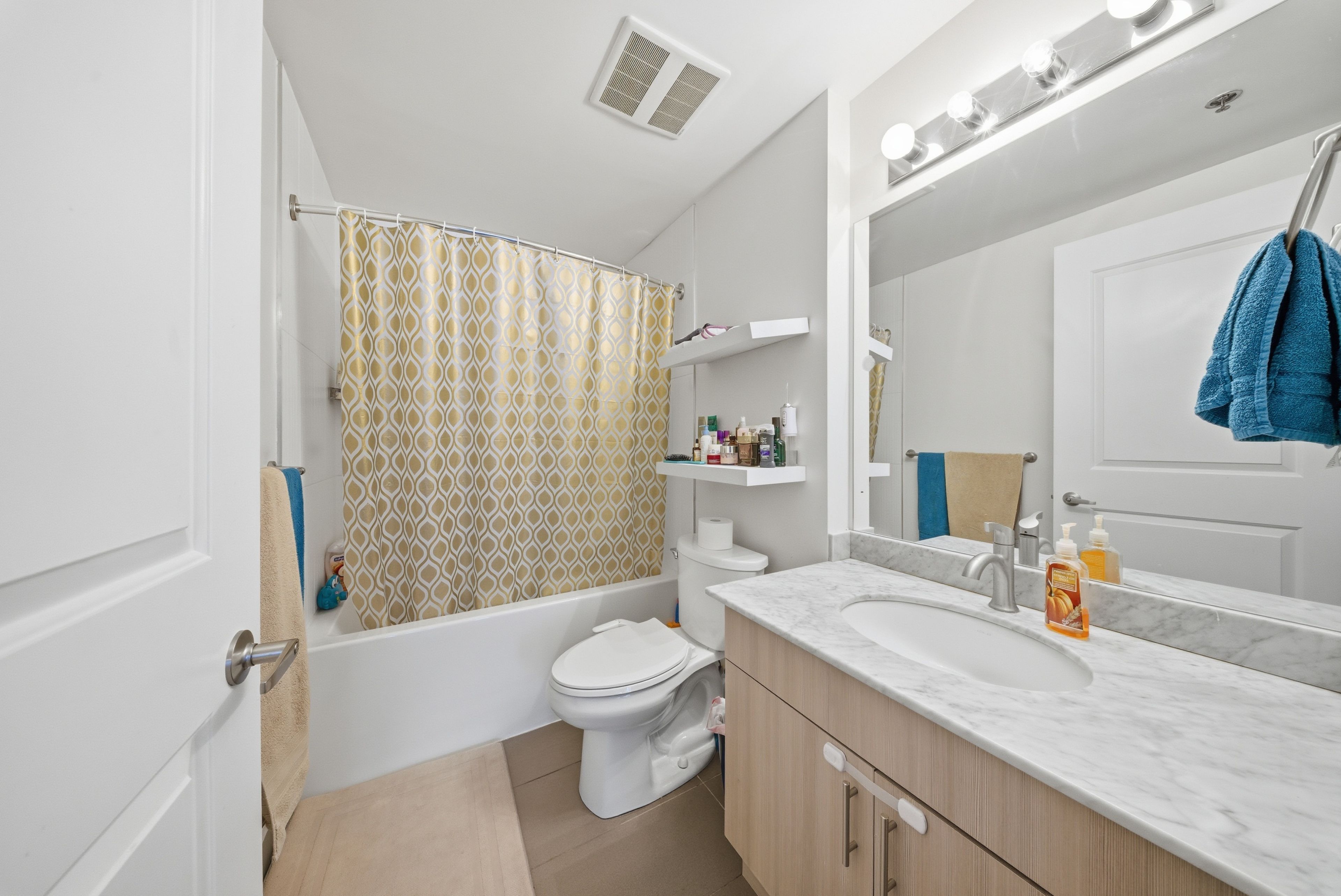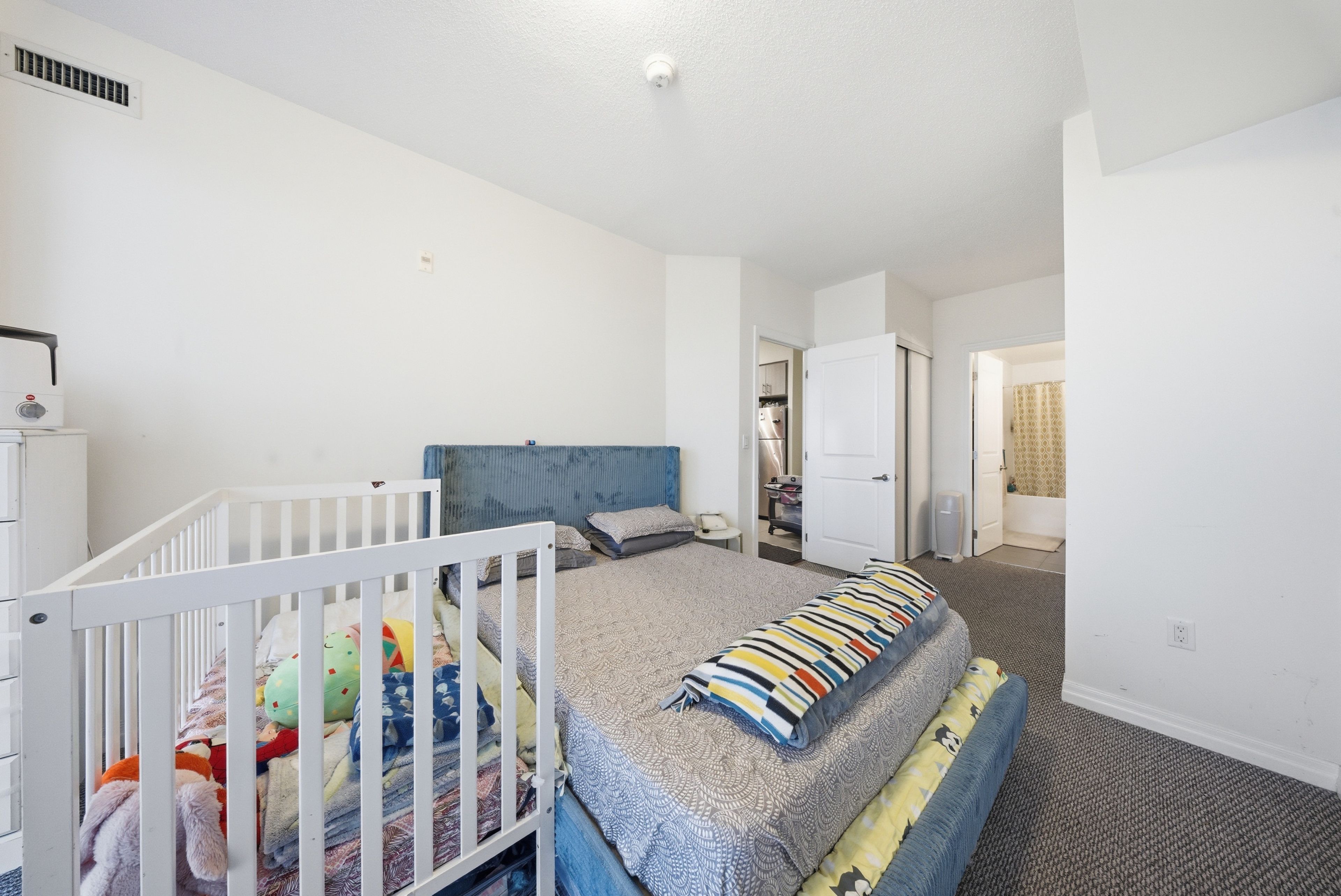 • Spacious open-concept layout with a modern kitchen and breakfast bar.