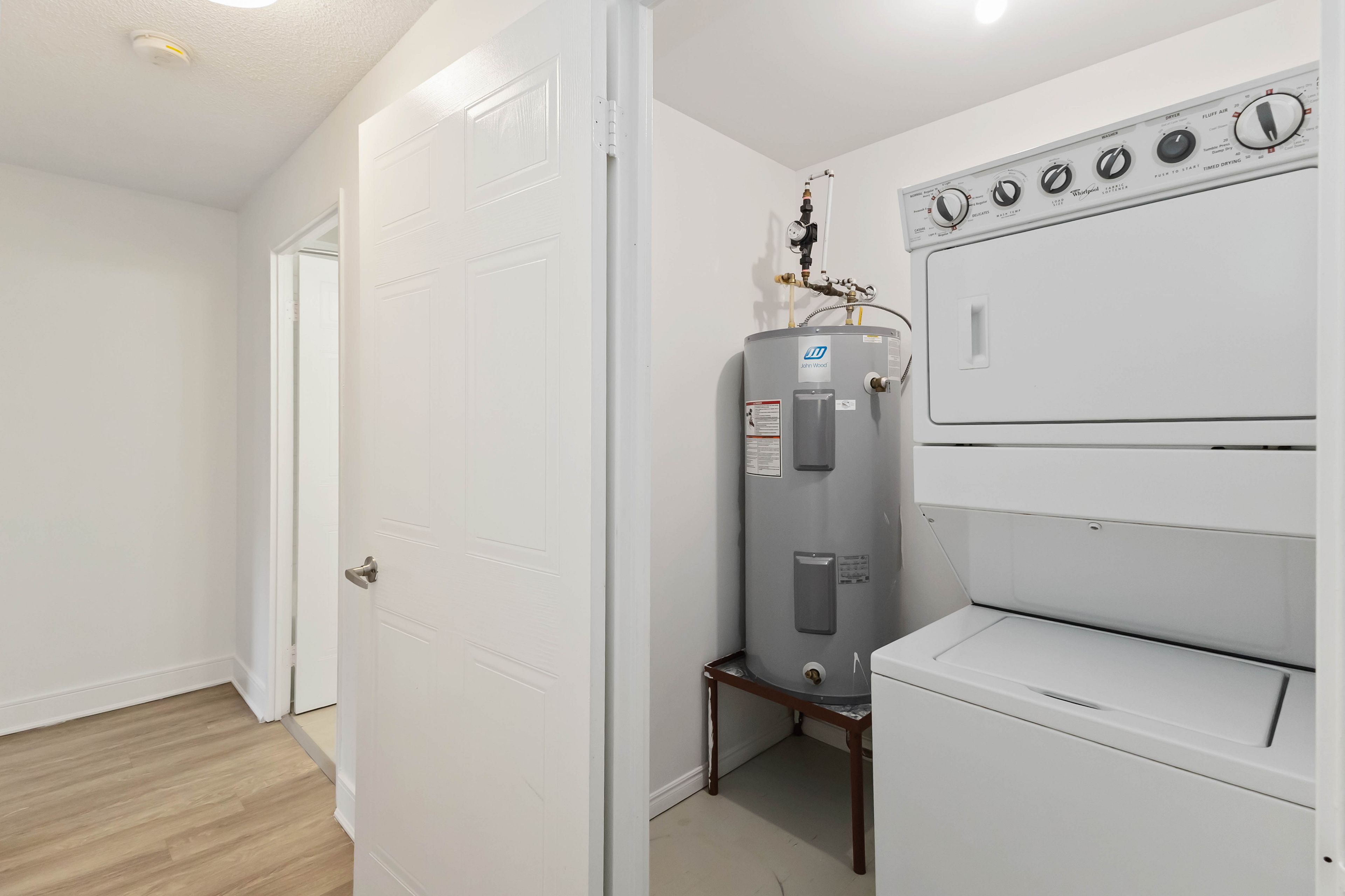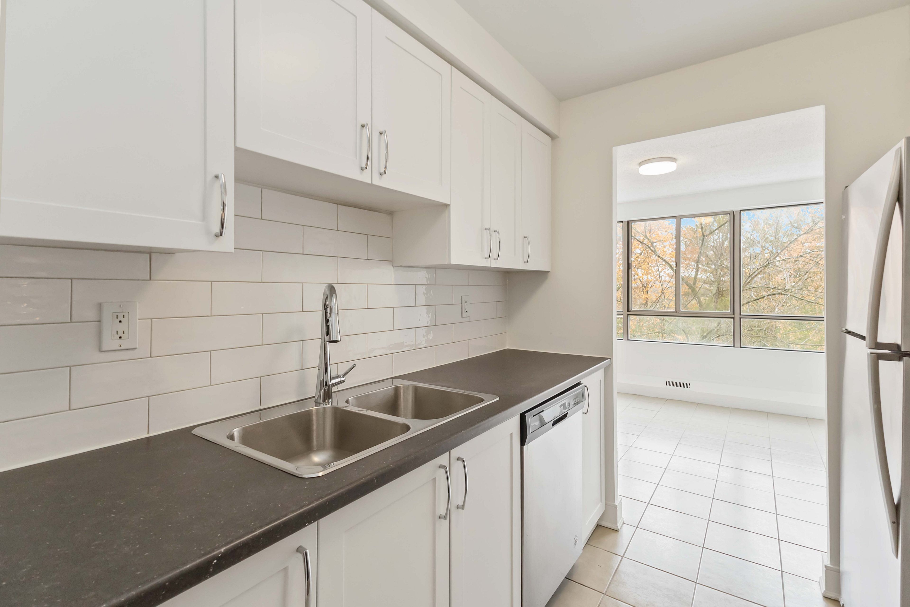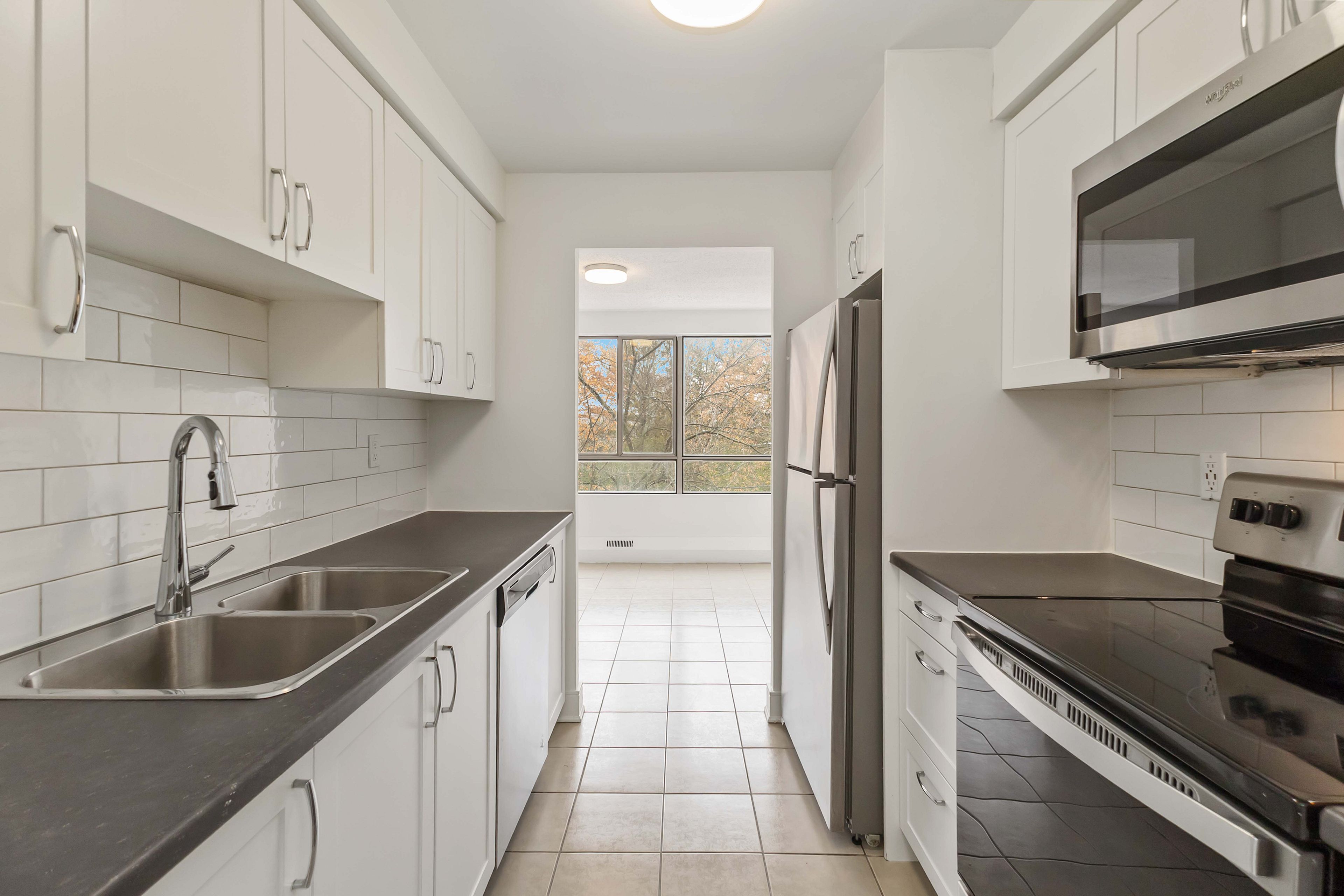 • Modern kitchen with upgraded finishes and in-suite laundry for convenience.