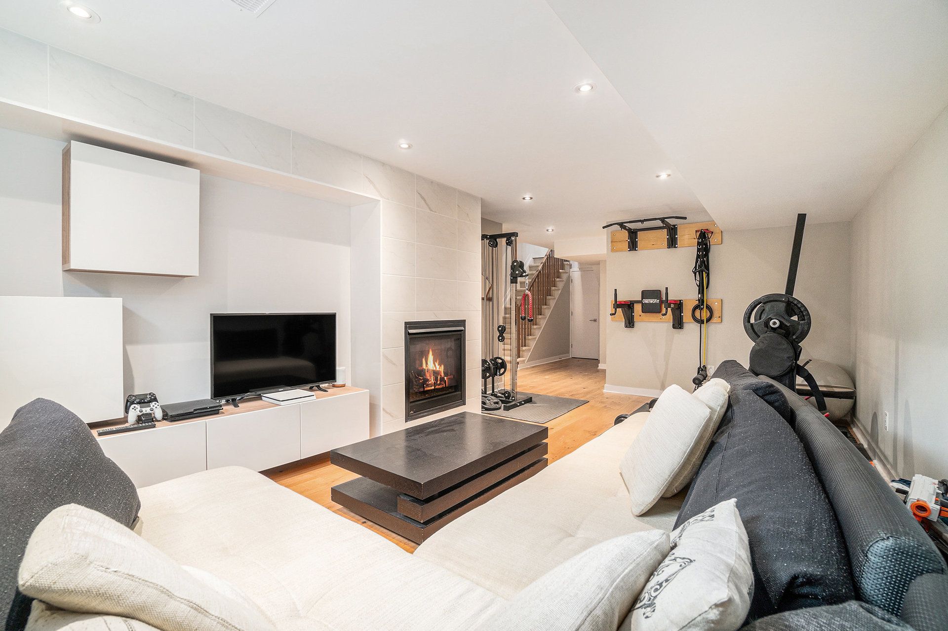 Welcome to this stunning corner-unit townhome in the heart of stittsville. From the moment you enter this bright, sun-filled home, you'll notice the upscale finishes, soaring ceilings, and thoughtfully designed layout that blends style with everyday comfort. The main level features a tiled foyer and convenient powder room, leading into an open-concept living space highlighted by rich hardwood flooring throughout two levels. The dramatic living room boasts floor-to-ceiling windows and an impressive open-to-above design that fills the home with natural light, while a cozy electric fireplace creates a warm and inviting atmosphere. The chef-inspired kitchen is perfect for entertaining, offering quartz countertops, stainless steel appliances, a gas stove, pot lighting, a spacious island with breakfast bar seating, and generous pantry cabinetry. The adjacent dining area opens through sliding doors to a fully fenced private backyard with a gas bbq hookup-ideal for outdoor dining and relaxing. Upstairs, the spacious primary suite features a large walk-in closet and a spa-like ensuite complete with an oversized glass and tile shower. Two additional bedrooms, a modern 4-piece bathroom, and convenient second-floor laundry provide both functionality and comfort for family living. The finished basement adds valuable living space with a versatile recreation room perfect for a home gym, media room, or play area, along with ample storage. Additional highlights include smart home features such as a nest thermostat. As a corner unit, the property offers extra windows for abundant natural light, a private driveway, enhanced privacy, and a larger outdoor area. Ideally located just steps from trails, parks, schools, shopping, and dining, this home offers the perfect balance of tranquility and convenience in one of stittsville's most desirable communities.