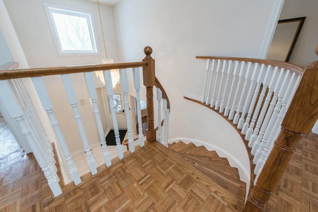 Welcome to the immaculate, solid & very well maintained 2-storey, detached house, conveninently located within minutes of heartland town centre. This beautiful property features 4beds + 3baths & a partially finished basement. Step into a bright, spacious & open layout foyer with a high ceiling & a circular oak staircase. Freshly painted walls throughout, updated parquet floor, modern quartz countertops & ceramic floor tiles in the kitchen. Plus a generous l shaped rec room in the basement with a sizeable cold room under the front porch. This property will not disappoint even the most picky buyer. The list is long, so hold your breath: new roof (2025), windows (2019). Tankless water heater (2023) & furnace (2023) under contract, a/c + central vac & gas fireplace. Fully tile paved backyard with large pergola & awning + natural gas line for bbq, & outdoor electric outlet. Fenced yard, beautifully landscaped frontage with interlock walkway & double garage with 220v electric sub-panel ready for e. V. Outlet. All of it can be protected by security system (setup required). Did i mention location? Aww... Location, location, once more location. Close to all amenities, schools, four winds hollow park within walking distance, costco, restaurants, shopping mall, great family community. Within minutes to major hwy's. Property shows exceptionally with a living space of approx. 2100 sq. Ft. Without basement