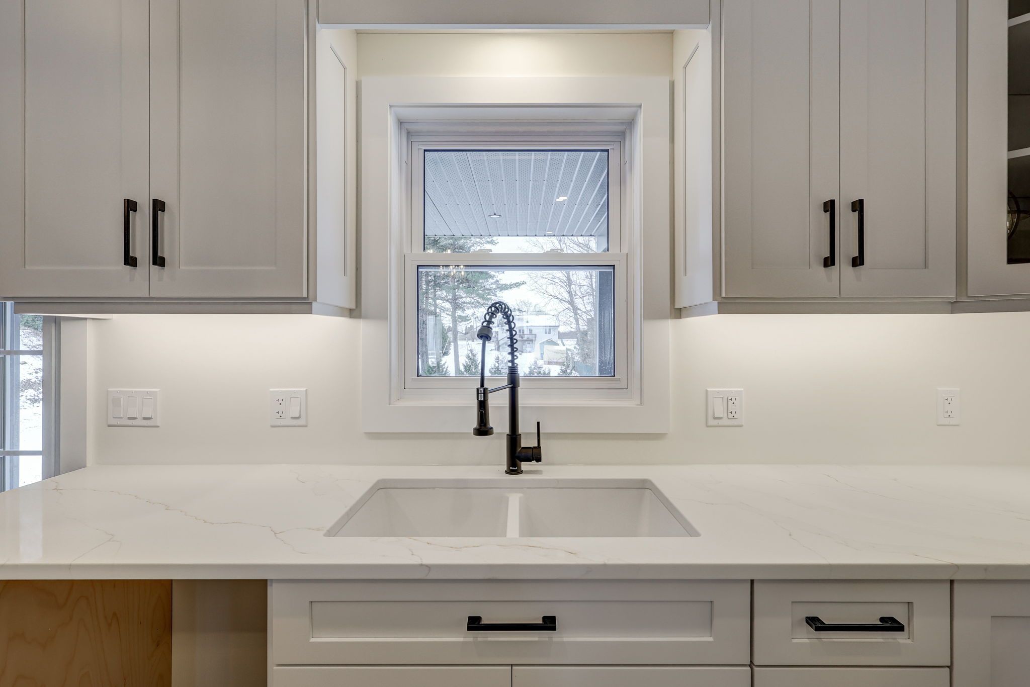 • Open-concept design featuring quartz countertops and modern cabinetry.