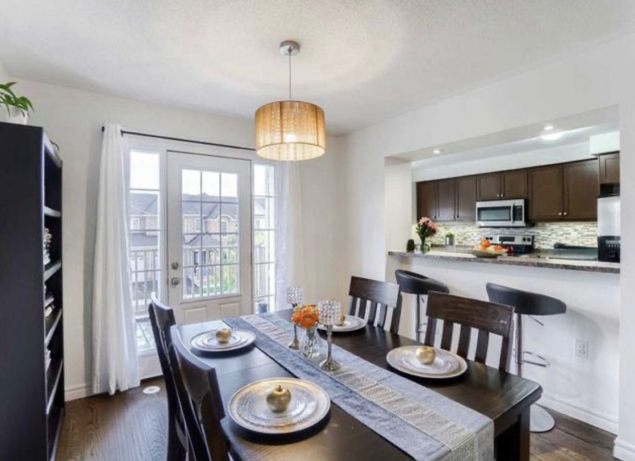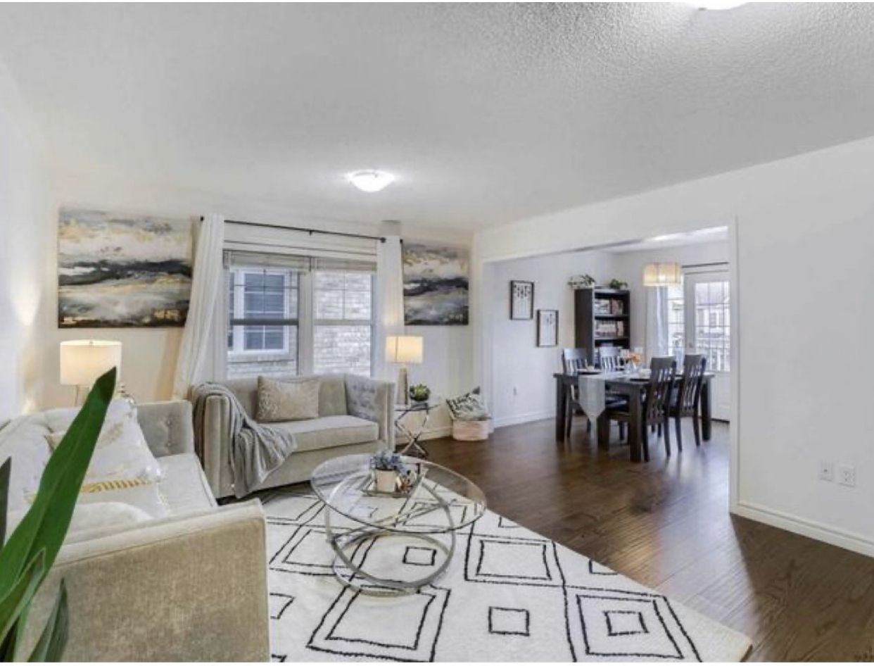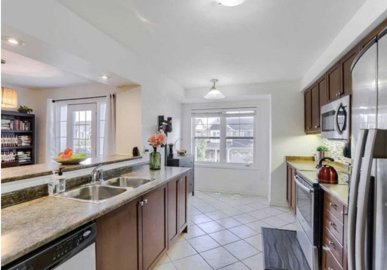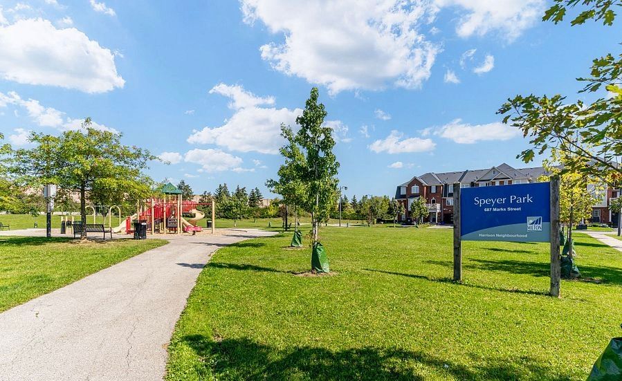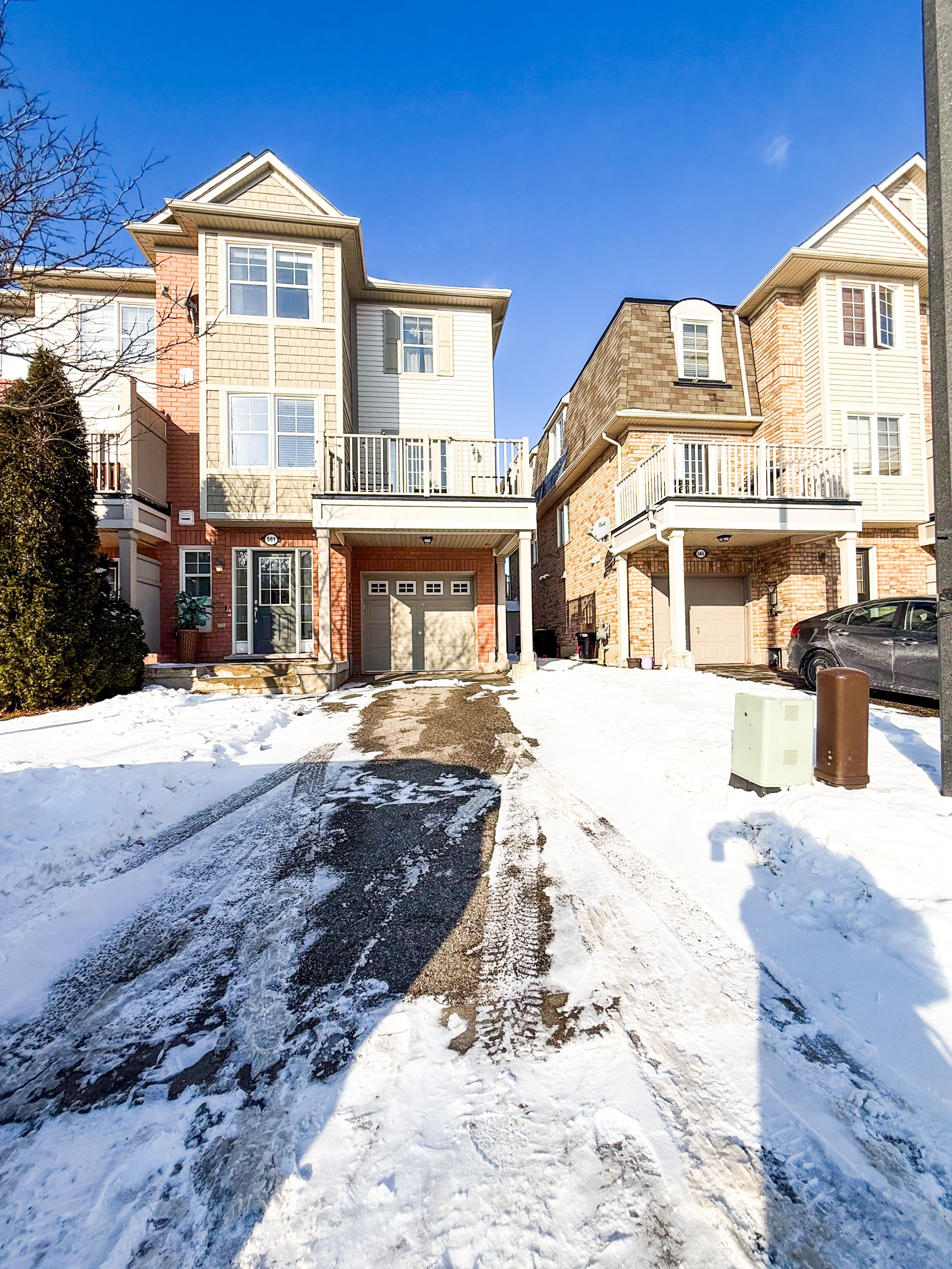Welcome to 561 speyer circle - a sun-filled corner freehold townhouse offering the comfort, privacy, and presence of a semi-detached home. With windows on multiple sides, this exceptional corner unit is bathed in abundant natural light all day and offers beautiful open views of the sky and breathtaking sunrises every morning. Designed for both style and function, the open-concept main floor features hardwood and ceramic flooring throughout with no carpet, creating a clean, modern, and low-maintenance living space. The bright breakfast area seamlessly opens to a large private balcony, the perfect spot to enjoy your morning coffee while taking in the sunrise. This well-appointed home offers three spacious bedrooms and two full bathrooms, ideal for families or professionals. The corner-unit layout provides enhanced privacy, additional windows, and a quieter living experience rarely found in townhomes. A rare and valuable feature, this home includes parking for three vehicles and direct access from the garage into the home, adding everyday convenience and security. Located in the highly desirable harrison / hawthorne village community, you're just minutes from parks, schools, shopping, and major highways.