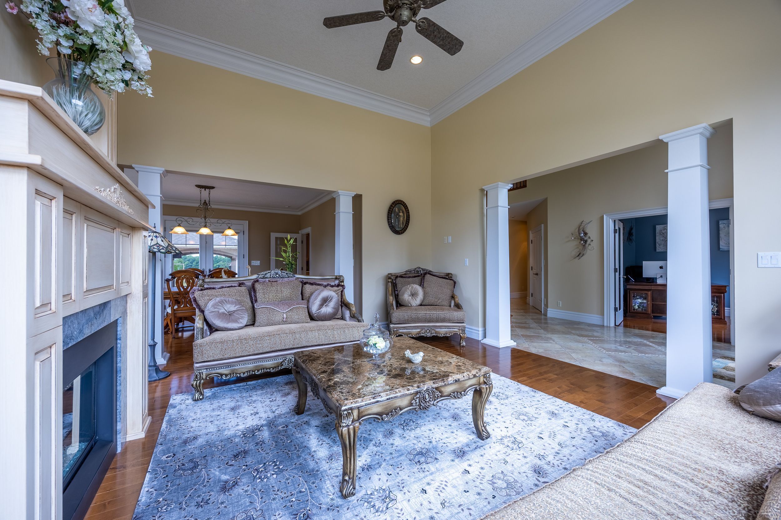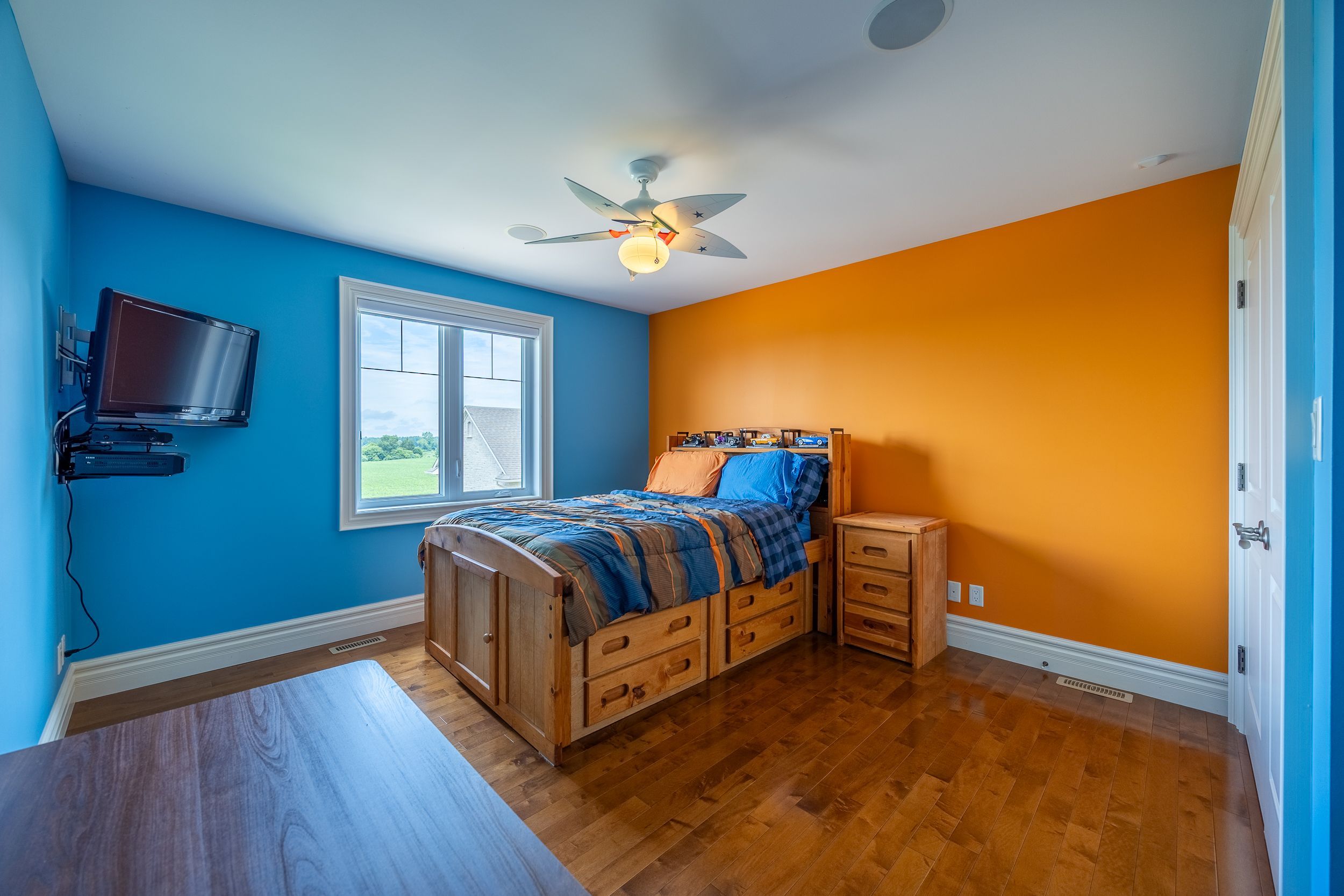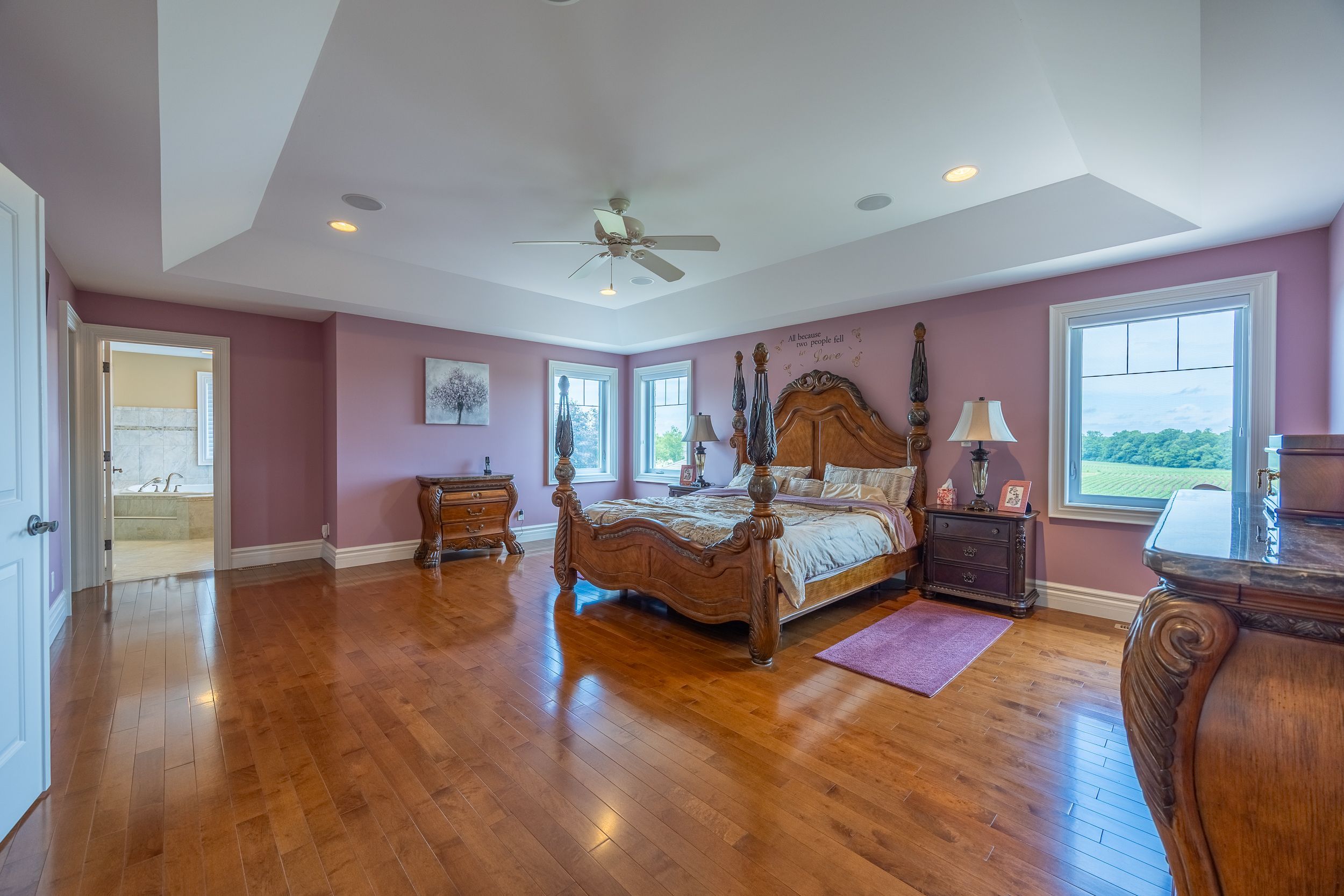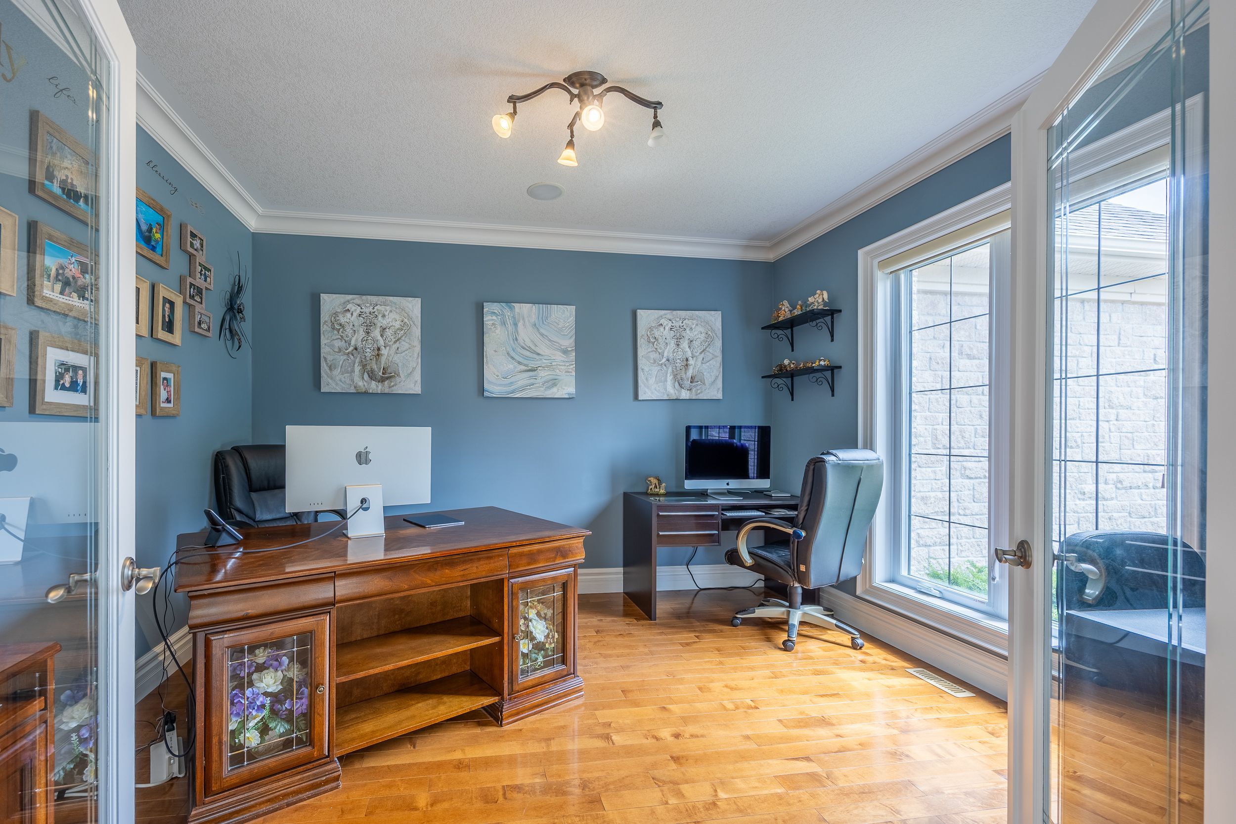 Luxurious estate with outdoor living oasis, dual garages and premier security. Welcome to your dream home. An exquisite estate that perfectly balances luxury, privacy, and everyday functionality. Designed for both families and sophisticated entertaining, this executive home offers spacious, thoughtfully planned living areas. As you enter the grand foyer a striking spiral staircase serves as a dramatic architectural focal point, leading to three generously sized bedrooms and two elegant bathrooms. Two floor-to-ceiling gas fireplaces enhance the ambiance in both the family room and formal living room, providing warmth and style. The formal dining room offers a warm and elegant space for family gatherings and entertaining guests, with room for a large table and decor suited to any occasion. A versatile den/home office provides a quiet and private area, ideal for working from home, studying, or managing daily tasks designed for comfort and productivity in mind. At the heart of the home, the expansive kitchen impresses with built-in appliances, quartz countertops, a walk-in pantry, breakfast bar, and a sun-filled dining area. The lower level boasts heated floors throughout the recreation room, games room, and bathroom ensuring year round comfort. Walk-up from basement to garage. The exterior is equally remarkable, featuring professionally landscaped grounds, a wide circular interlocking brick driveway and a stately brick facade that leaves a lasting first impression. The backyard is designed for connection, with multiple gathering area and a bubbling rock water feature. Water gently bubbles from the tops of three hand-selected stones, creating soothing sounds and a peaceful atmosphere an eye-catching focal point that blends naturally with the surrounding greenery. Enjoy dining in the covered, custom-built outdoor kitchen. The additional detached garage/shop offers extra space for vehicles, workshop or custom storage solutions.