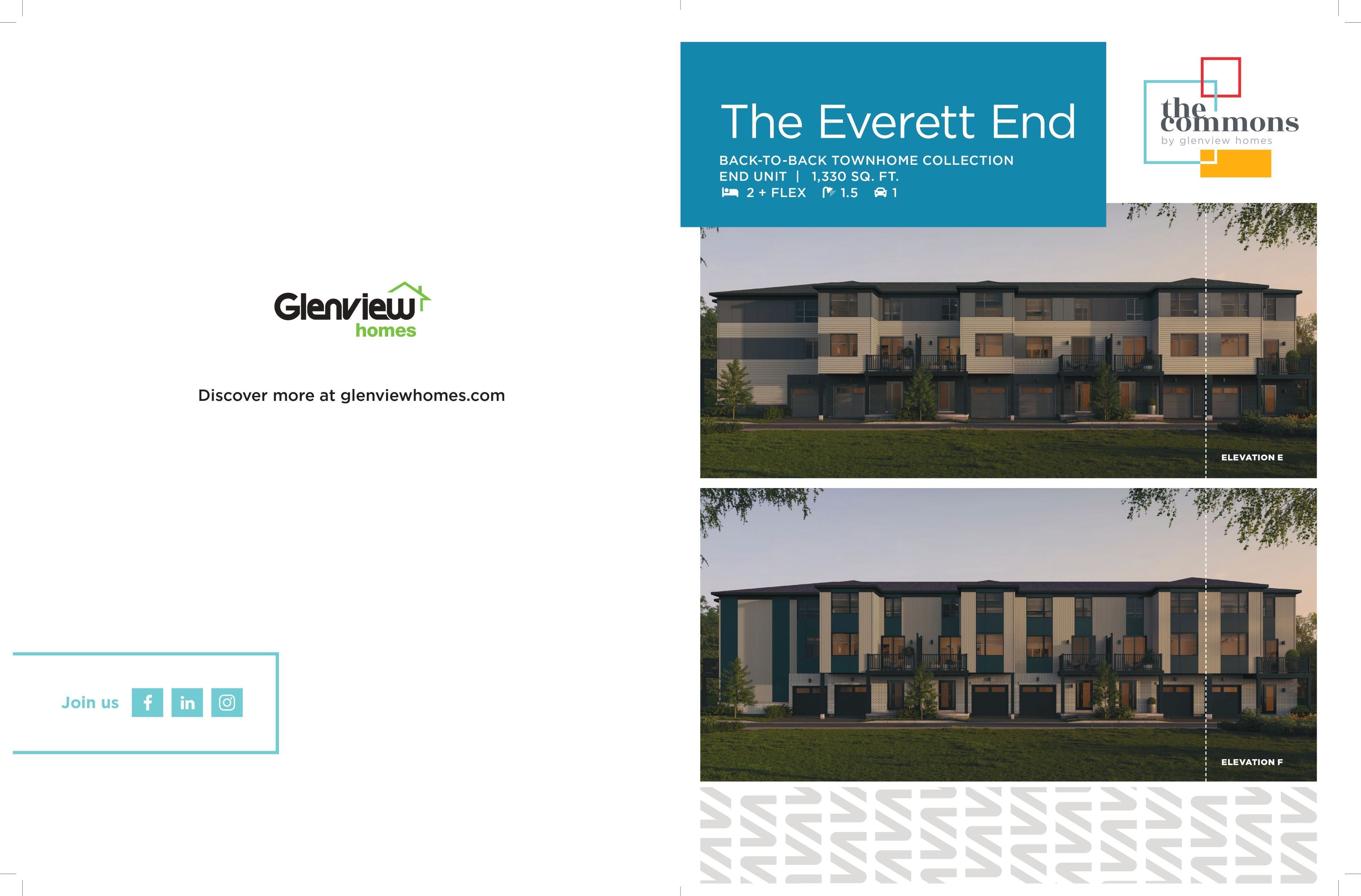'the everett' - an exquisite 3-storey back-to-back townhome debuting for the 1st time in the highly desirable chapel hill community -the commons- by glenview homes! First-time buyer seeking a low-maintenance entry into homeownership or an investor looking for a premium, high-demand rental property, this end unit is a sought-after choice. With 1330sqft this home has been brilliantly designed to maximize space, style, and everyday comfort. Entry level welcomes you with a covered porch, bright foyer, and convenient garage access. The open-concept main floor centers around a stunning kitchen featuring a quartz island, opens to a private balcony perfect for morning coffee, and is equipped with a full suite of stainless steel appliances. Entertain seamlessly in this inviting space and flow into the bright great room and dining areas. Convenient powder room completes this level. Upper level hosts the spacious primary bedroom with a generous walk-in closet, a comfortable second bedroom, flex space perfect as a home office (which can be upgraded to ensuite bathroom), and a modern 4pc bathroom also featuring quartz counters. Coming full of upgrades like smooth ceilings throughout, elegant composite wood flooring on the entry and main levels, and contemporary pot lights that illuminate the space. Customize your layout and finishes by acting now to take advantage of a $2,500 design studio bonus! The commons is an amenity-rich community offering the perfect blend of convenience and quality of life. Enjoy local shops, fantastic restaurants, parks, and recreation facilities right outside your door. All this and some of the city's best schools. Best of all commuting is a breeze with direct bus route access to downtown ottawa and quick access to the city's core. Rendering of the park, interiors and elevations is an artist's concept and is for illustrative purposes only. Actual features, landscaping, and layouts may vary. E&oe