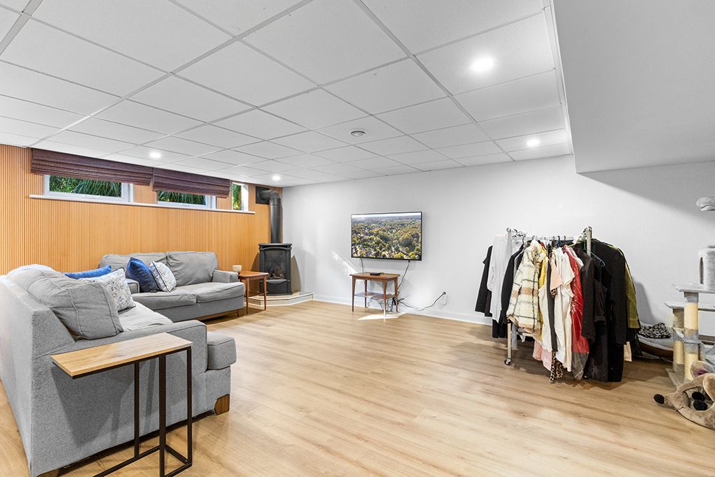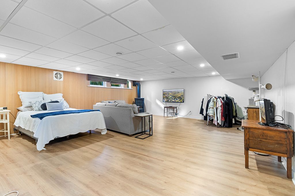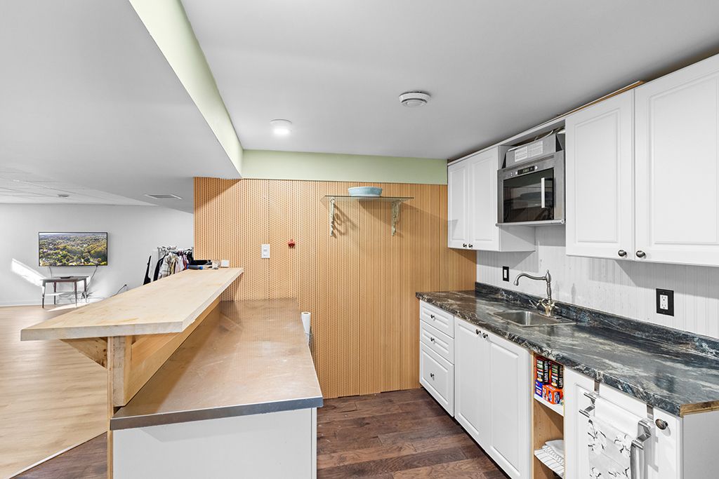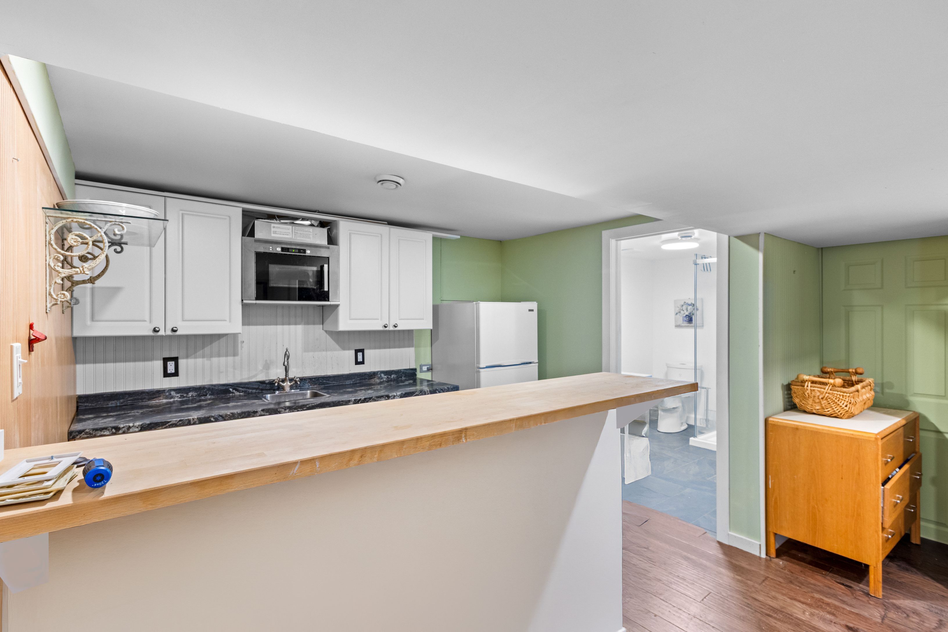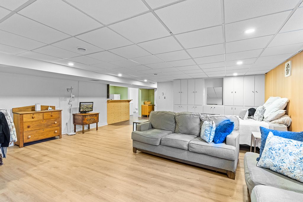 • Renovated lower level with kitchenette and modern bathroom for additional living space.