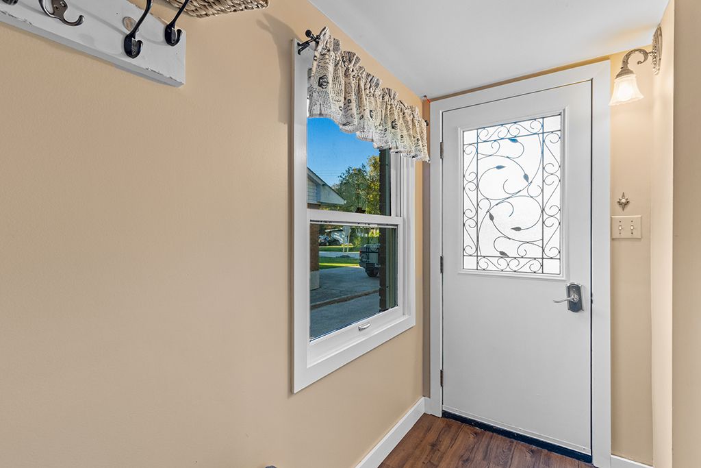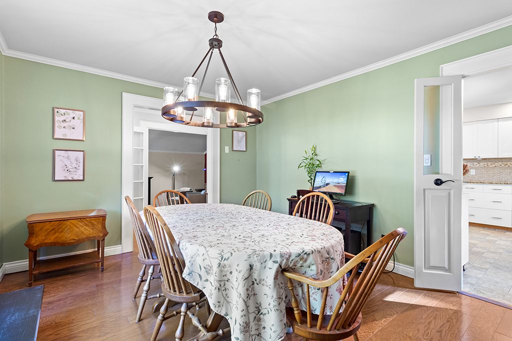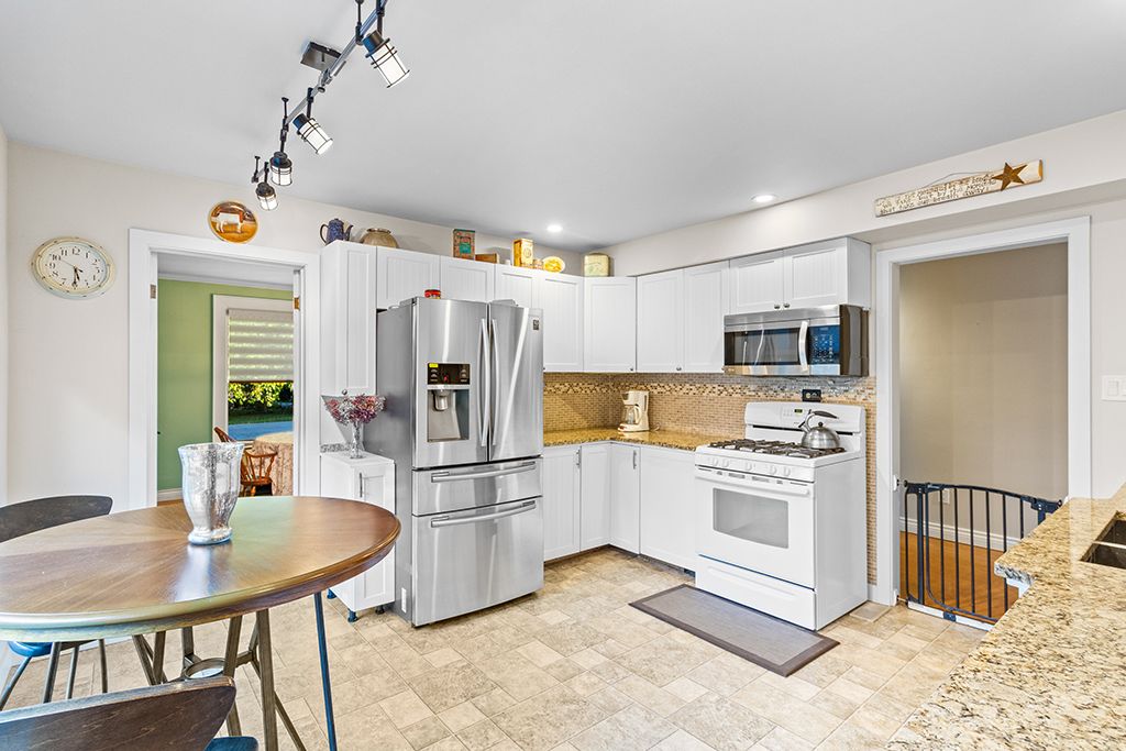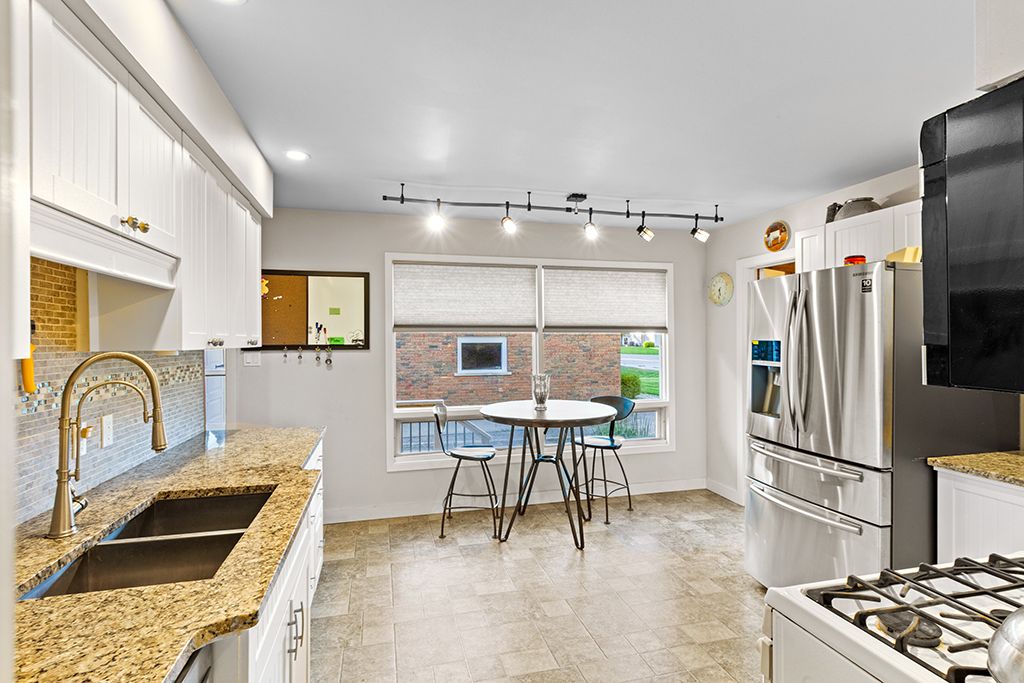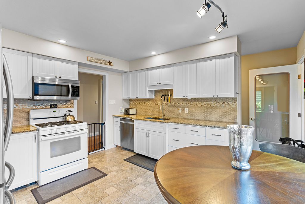 • Updated kitchen with granite countertops and dining room featuring French doors.