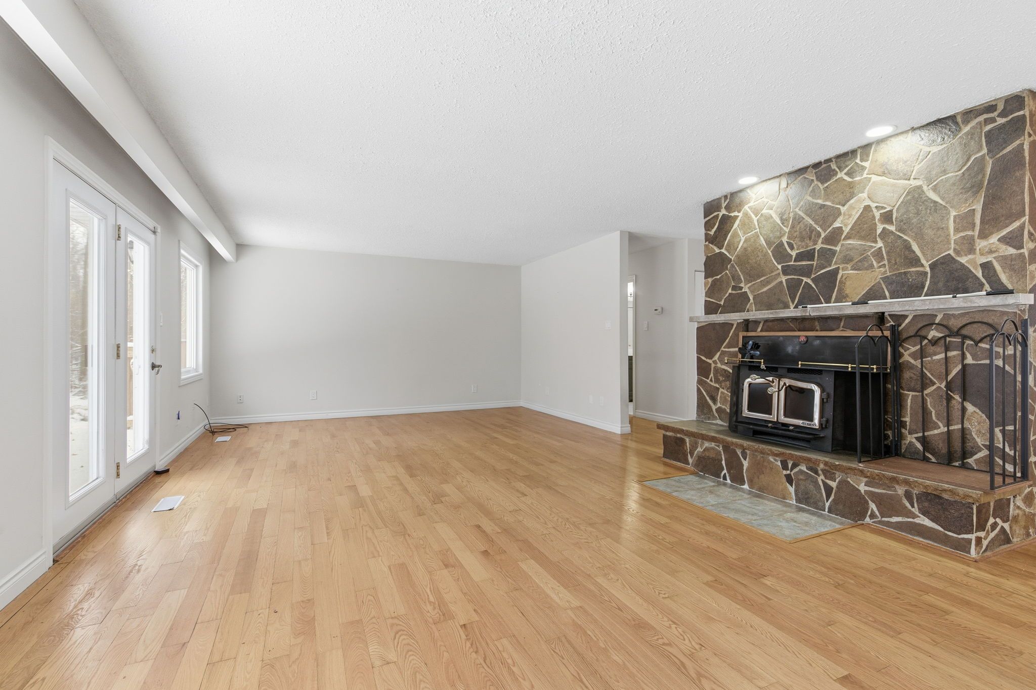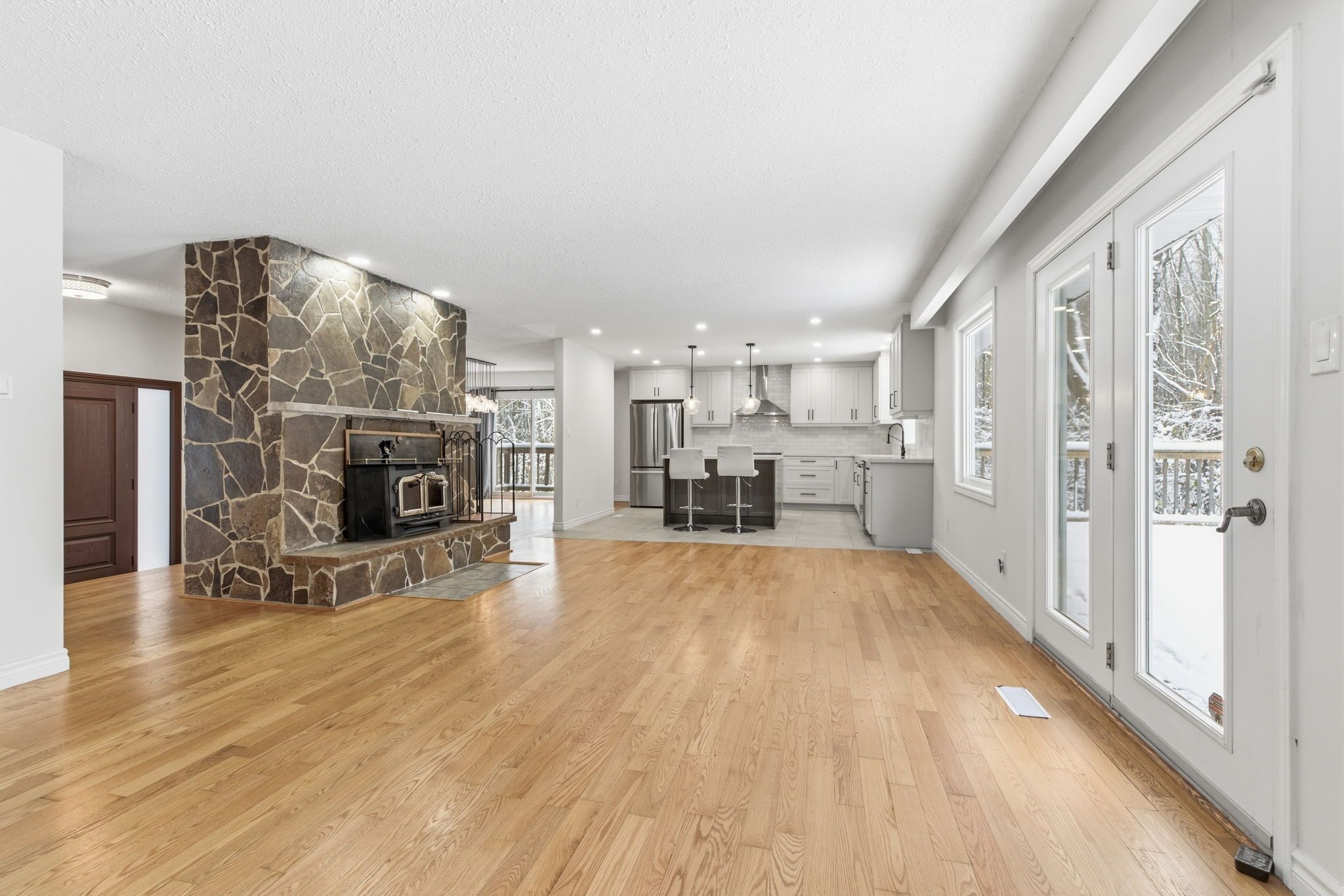 Introducing this amazing rural retreat on a stunning, private and wooded lot. Enjoy 15 beautiful acres, only 10 minutes from everything you could need! This raised bungalow has 3+1 bedrooms, 2 bathrooms and has recently been renovated. This updated, custom white kitchen features a spacious island, complemented by sleek stainless steel appliances for a modern, timeless look. In the winter months, enjoy the warmth of your own air-tight wood fireplace in the spacious dining room or cozy up by the gas fireplace in the cozy sunken living room. The large primary bedroom complete with its own private, outdoor deck! This home has a beautifully renovated family bathroom and a stunning ensuite bathroom off the primary bedroom. Entertain guests on the large deck off the dining room overlooking this large, forested property. The two-car garage has plenty of room for your cars or would make a great place to keep your outdoor toys. A lovely package all around! Rsa.