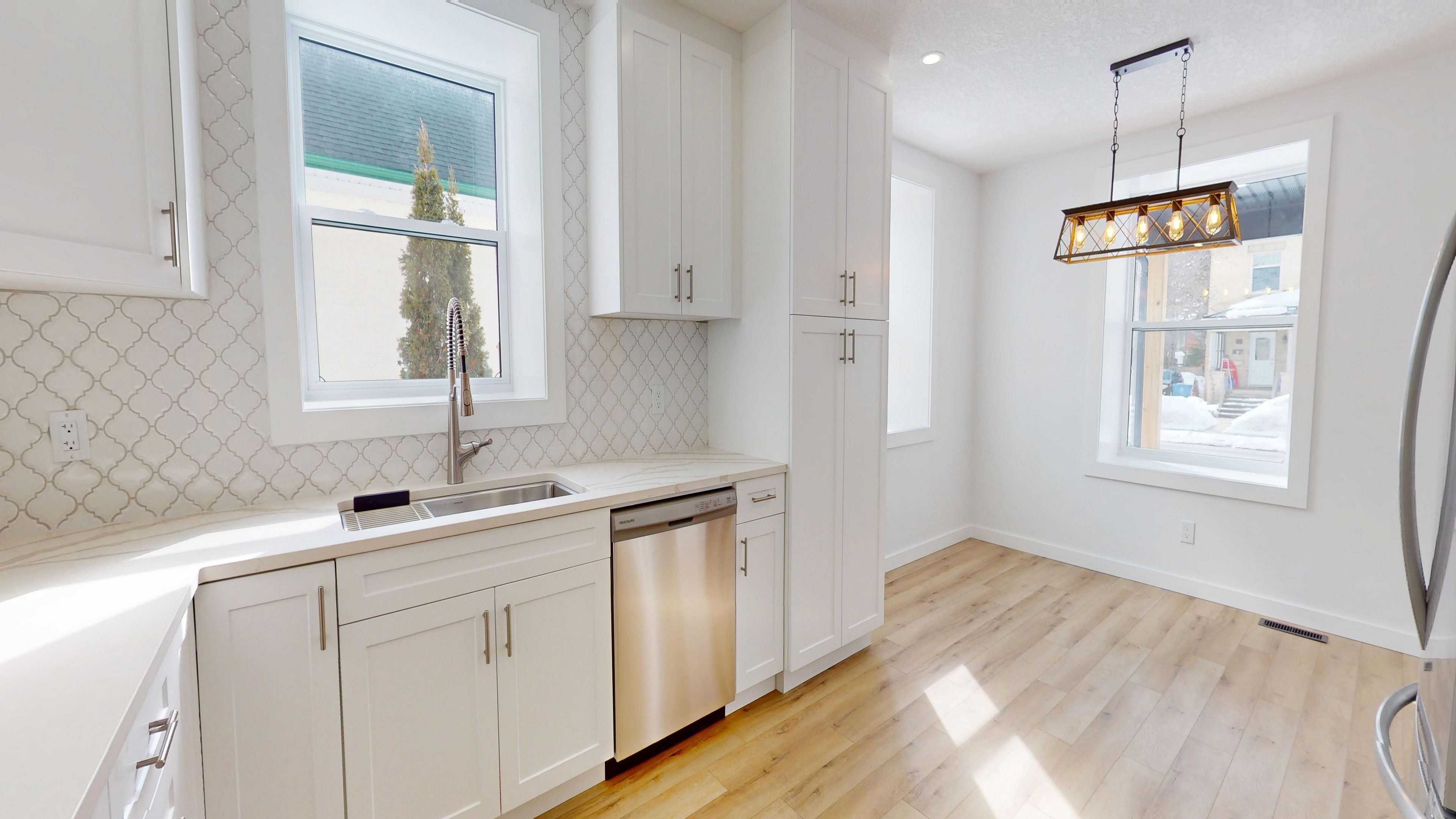 • Spacious kitchen with quartz countertops and a welcoming eat-in area.