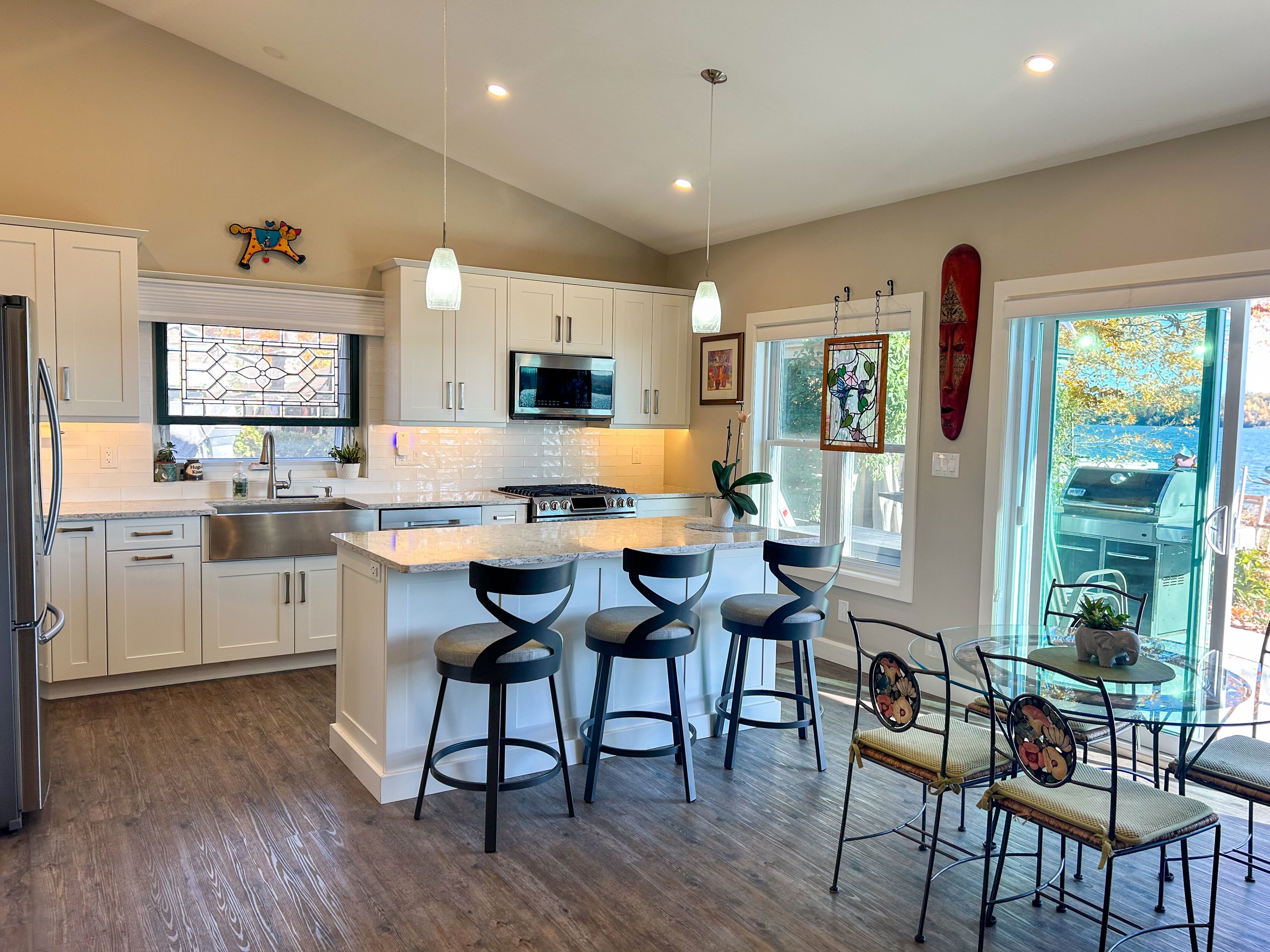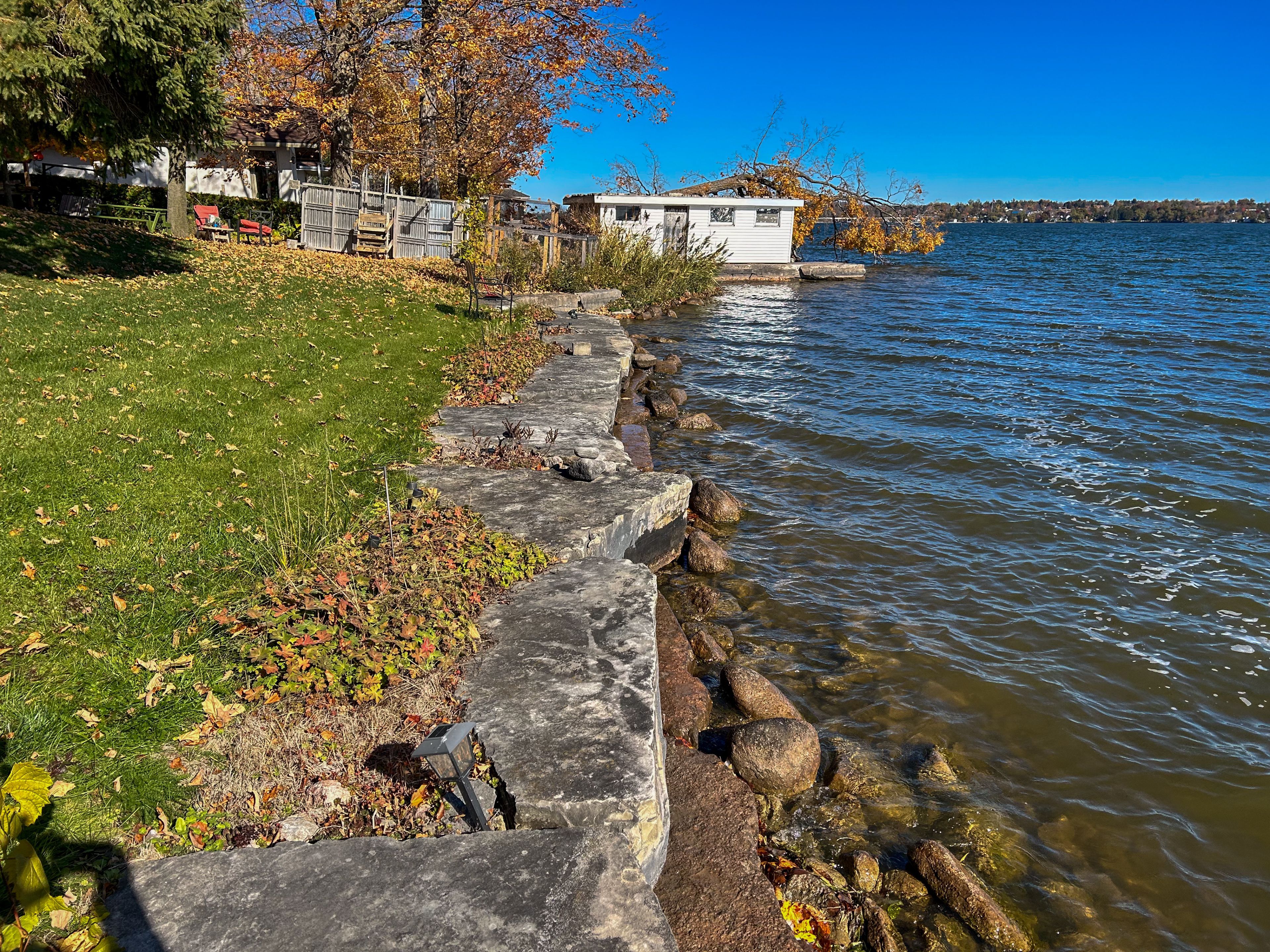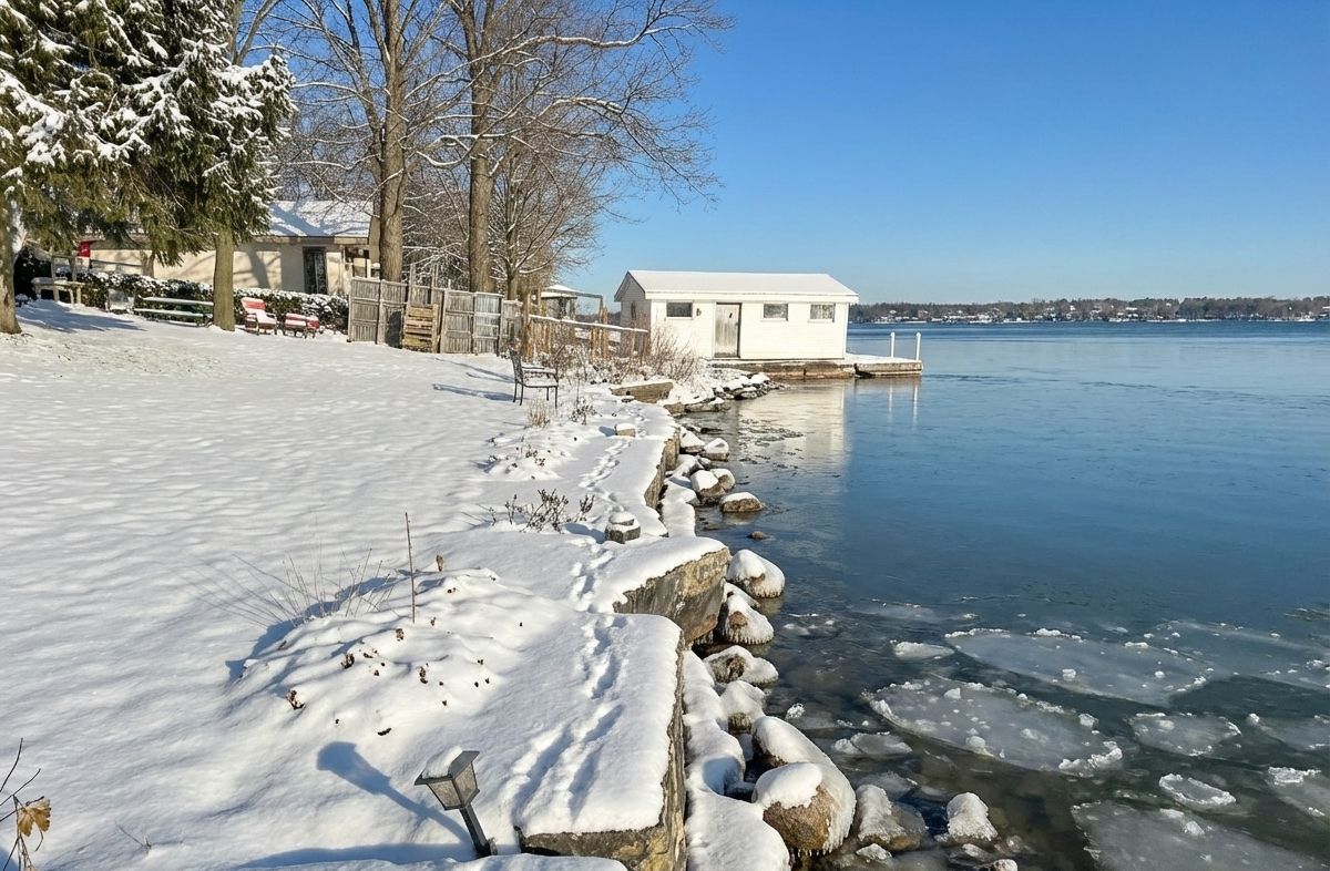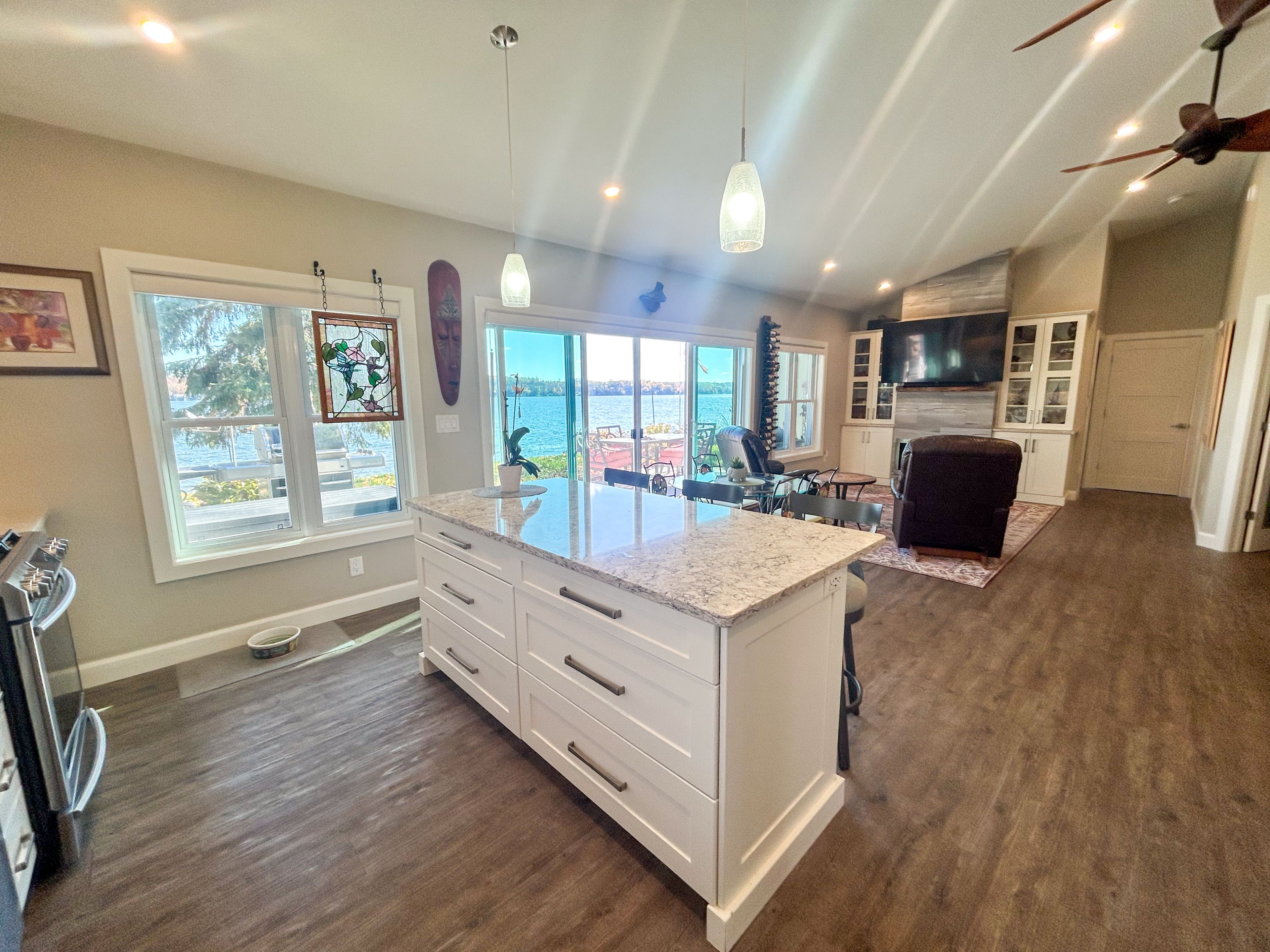 Prepare to be captivated by this exceptionally designed and meticulously crafted 5-year-old waterfront home in desirable ennismore! Sparing no detail for quality and comfort, this 3-bedroom, 2-bathroom residence offers an unparalleled lakeside lifestyle just minutes from bridgnorth and peterborough. The main floor boasts a seamless flow, featuring a modern, sleek kitchen with a large island, ideal for entertaining, and open dining/living areas. Thoughtful use of space maximizes the spectacular lake views and natural light throughout the home. The light and airy primary bedroom overlooks the lake and includes a spacious walk-in closet and a gorgeous 4-piece ensuite with a relaxing soaker tub. Enjoy the year-round comfort of in-floor radiant natural gas heat with zone control and a heat pump for supplemental heat and summer air conditioning. For superior tranquility, every room has been soundproofed! An easily connected generator ensures comfort and convenience during any power outage. For your exterior & waterfront features: the exterior is designed for effortless living, featuring a paved driveway and beautifully landscaped, low-maintenance yards. A welcoming rear patio with sliding door entry and a charming gazebo offer perfect spots for outdoor entertaining. The property provides maximum access to chemong lake with an armour stone entry and a private dock, plus a shed for storing waterfront toys. Situated on a private road in a quiet area, this property offers a wonderful retreat while maintaining close proximity to amenities. This truly is a move-in-ready, detail-oriented sanctuary where luxury meets the lake!