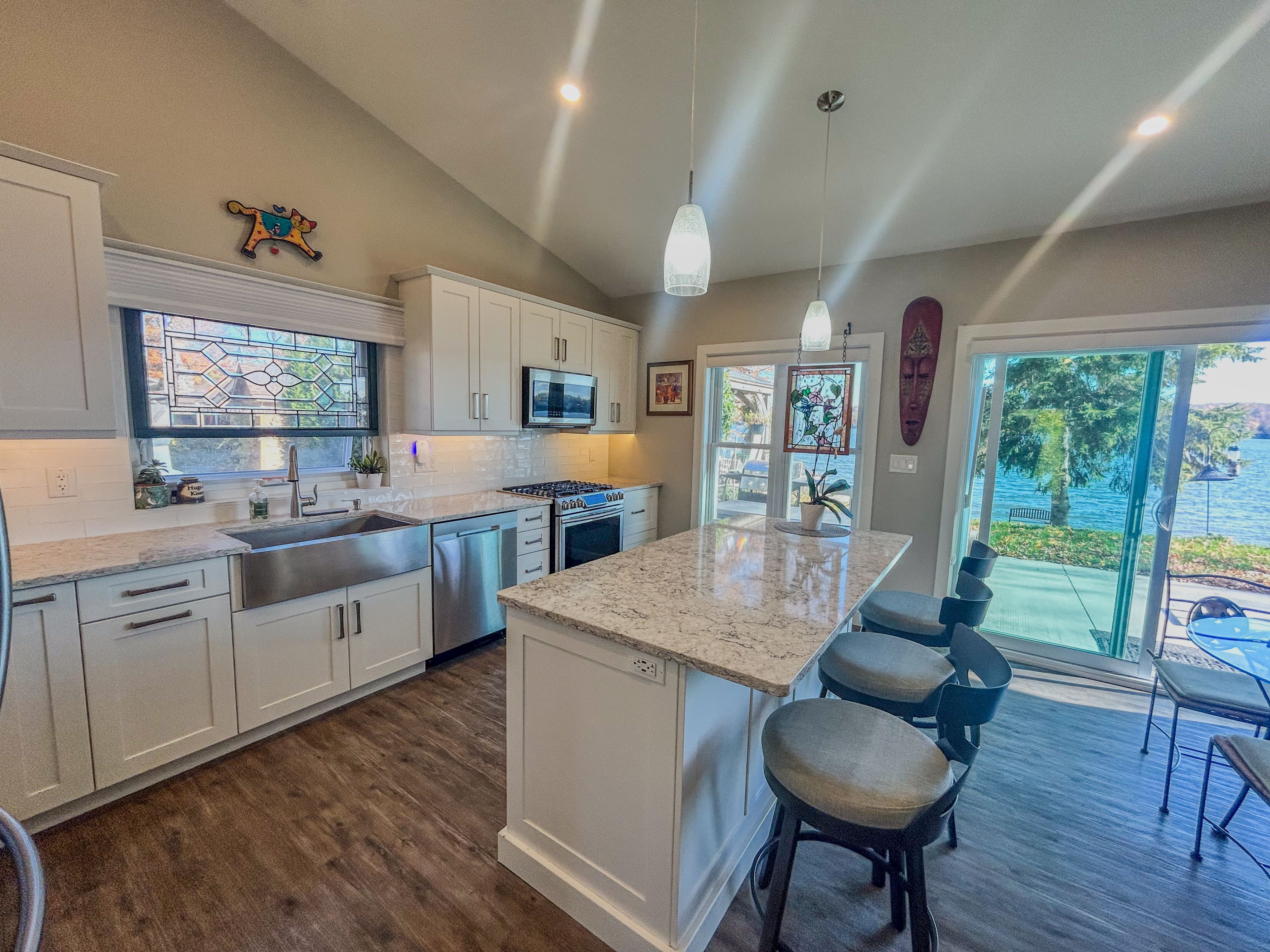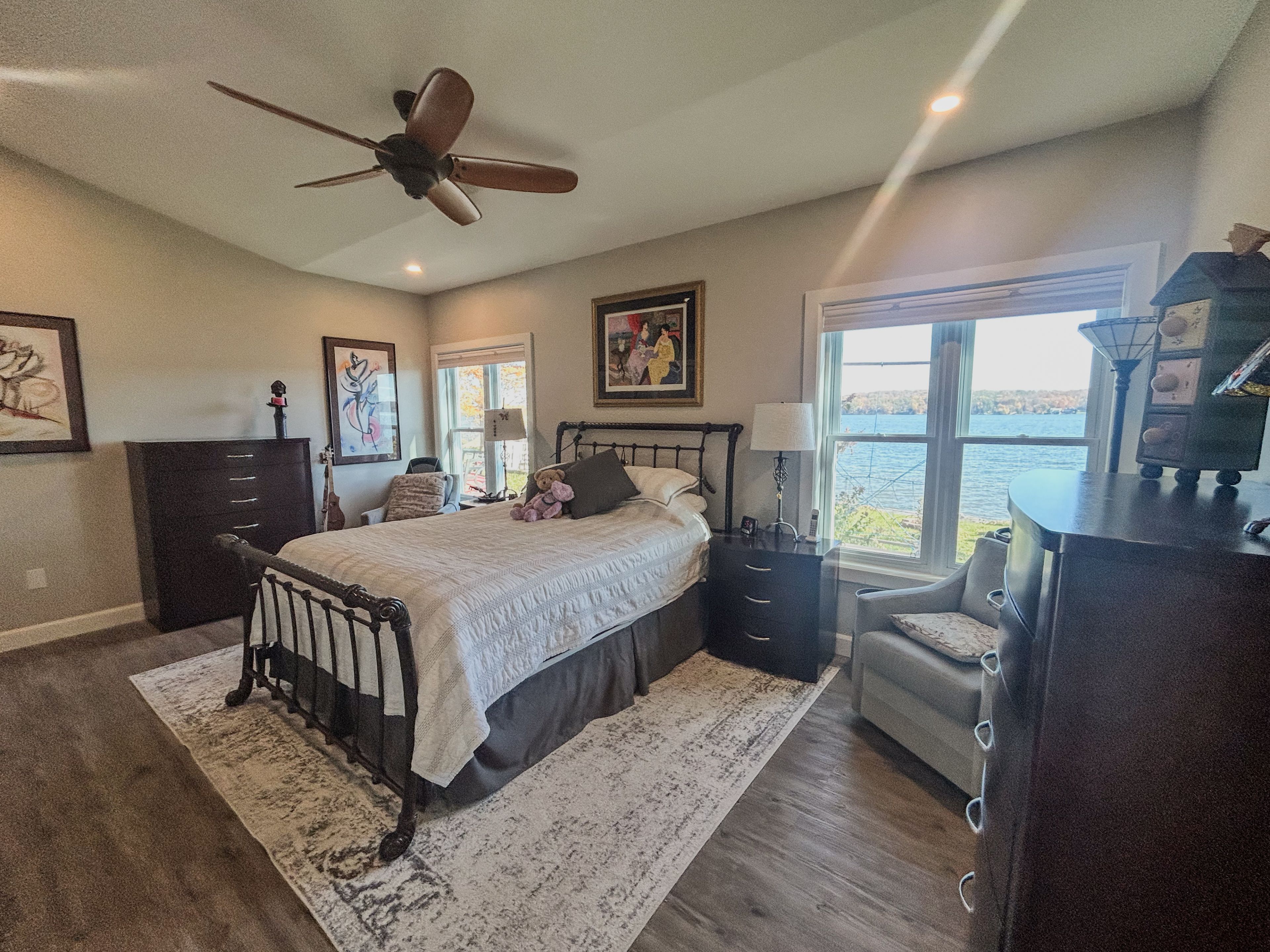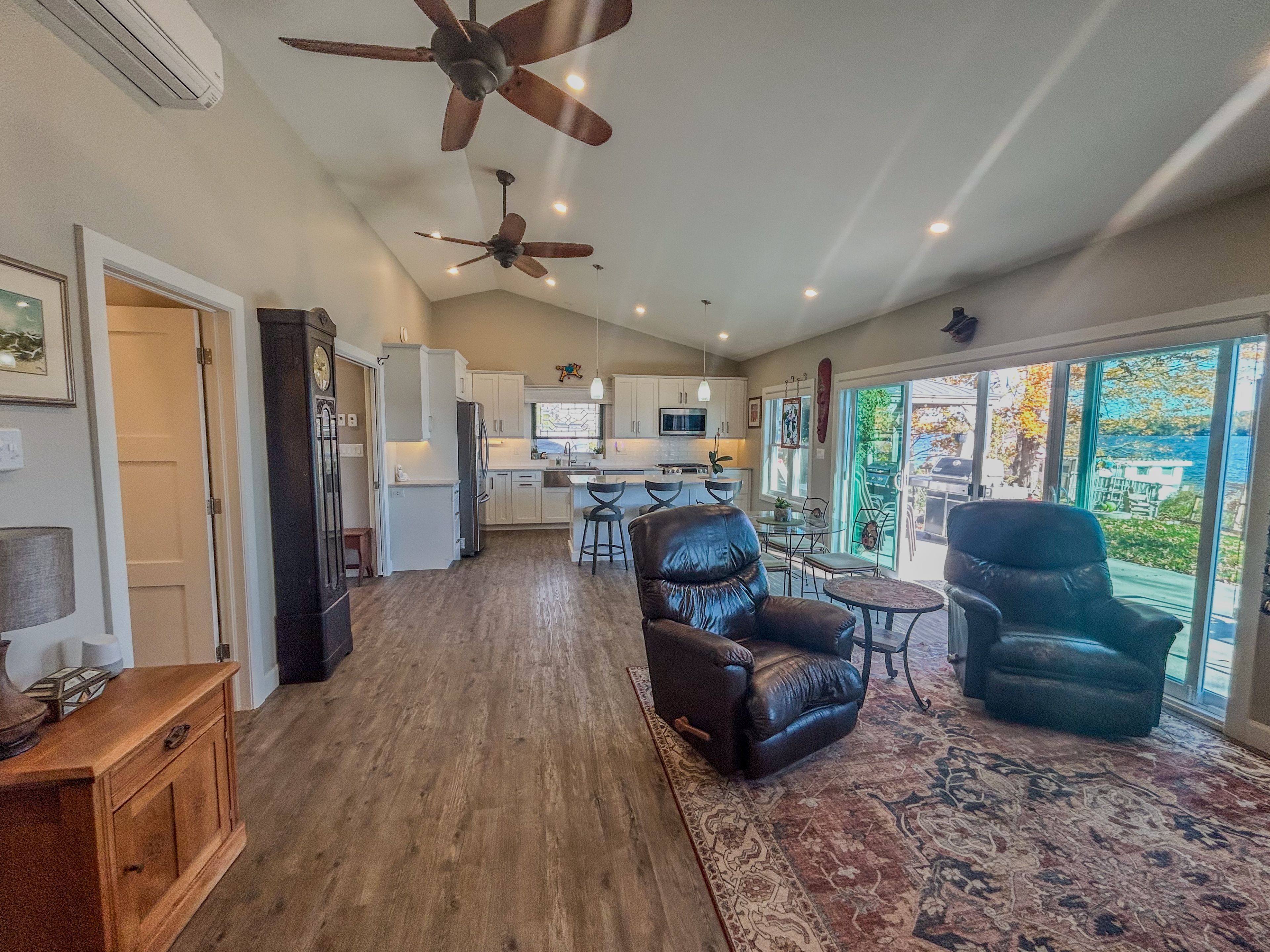 Prepare to be captivated by this exceptionally designed and meticulously crafted 5-year-old waterfront home in desirable ennismore! Sparing no detail for quality and comfort, this 3-bedroom, 2-bathroom residence offers an unparalleled lakeside lifestyle just minutes from bridgnorth and peterborough. The main floor boasts a seamless flow, featuring a modern, sleek kitchen with a large island, ideal for entertaining, and open dining/living areas. Thoughtful use of space maximizes the spectacular lake views and natural light throughout the home. The light and airy primary bedroom overlooks the lake and includes a spacious walk-in closet and a gorgeous 4-piece ensuite with a relaxing soaker tub. Enjoy the year-round comfort of in-floor radiant natural gas heat with zone control and a heat pump for supplemental heat and summer air conditioning. For superior tranquility, every room has been soundproofed! An easily connected generator ensures comfort and convenience during any power outage. For your exterior & waterfront features: the exterior is designed for effortless living, featuring a paved driveway and beautifully landscaped, low-maintenance yards. A welcoming rear patio with sliding door entry and a charming gazebo offer perfect spots for outdoor entertaining. The property provides maximum access to chemong lake with an armour stone entry and a private dock, plus a shed for storing waterfront toys. Situated on a private road in a quiet area, this property offers a wonderful retreat while maintaining close proximity to amenities. This truly is a move-in-ready, detail-oriented sanctuary where luxury meets the lake!