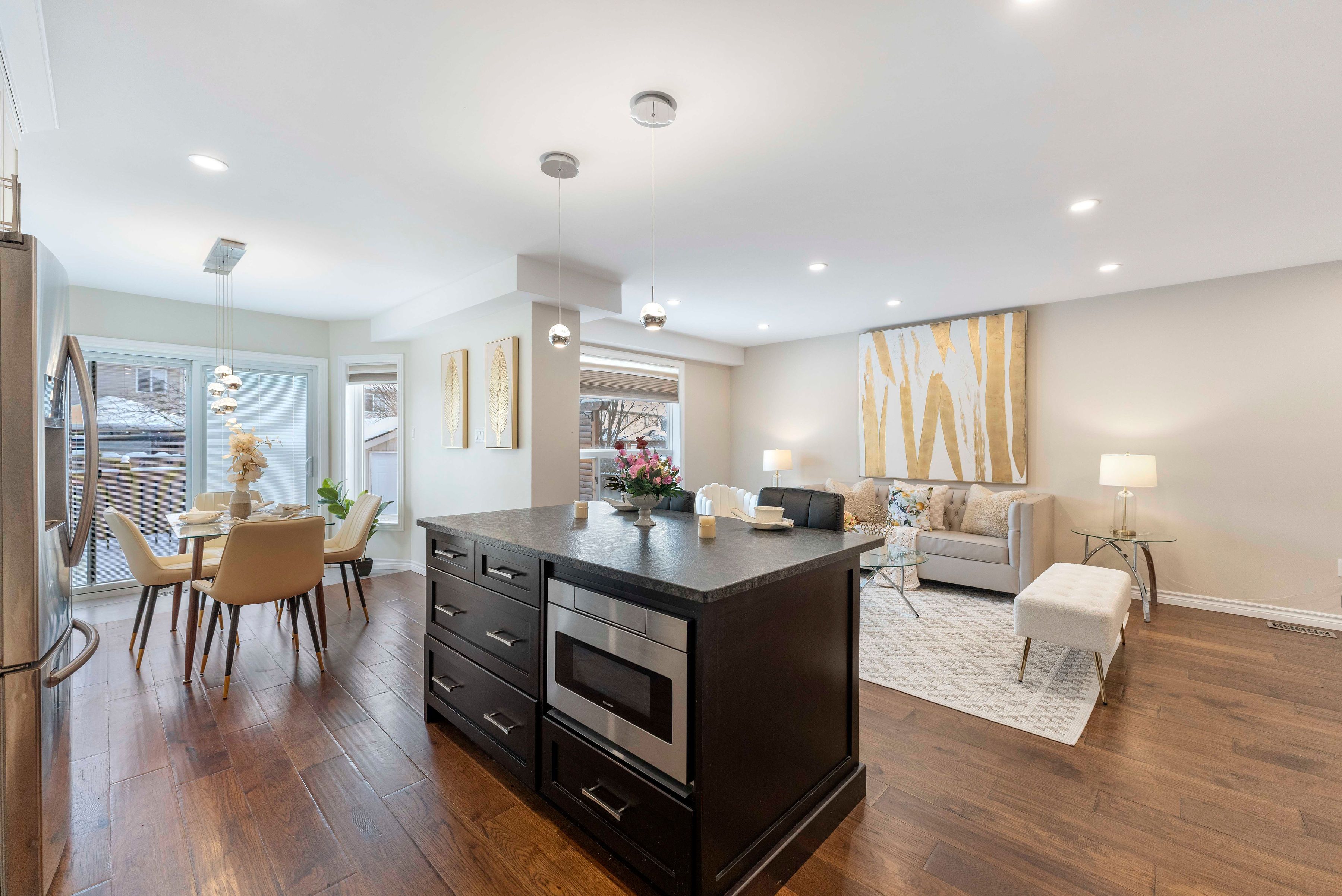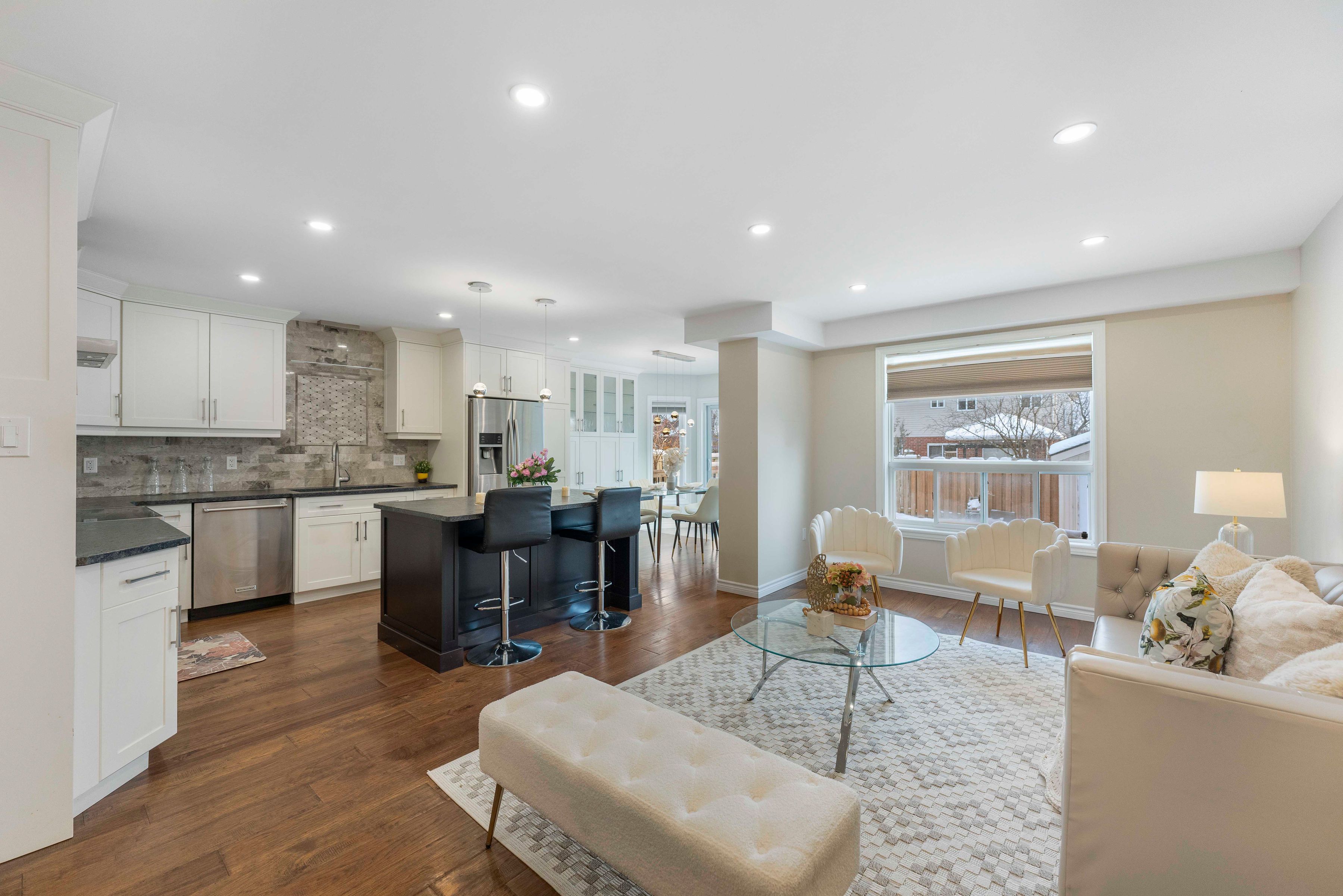 Welcome to this stunning detached home located in the desired family-friendly grange rd neighbourhood offering nearly 2,000 square feet of executive, carpet-free living! With hardwood flooring throughout, heated floors and thousands spent in custom upgrades and finishes, this house provides the perfect blend of comfort, luxury and convenience. As you enter through the covered front porch, the welcoming and spacious foyer leads to an immaculate open concept living room, complete with a modern fireplace. The gourmet custom-finished kitchen overlooks the living and dining room, and features a large island, stainless steel appliances, premium countertops, and an extended pantry! A walkout to your private fully-fenced backyard featuring a two-tier deck completes this level. Upstairs, you find a spacious primary bedroom, and two additional generous-sized bedrooms! The spa-like main bathroom has been reconfigured with an oversized walk-in shower, a luxurious soaker tub, and updated fixtures. Heading down, the fully finished basement offers a large, bright recreation room, ideal for entertainment, home-office, or an additional living space, complete with a full bathroom. Permit has been issued to convert this level into a secondary dwelling unit, if needed. With a newer roof and furnace, you can enjoy a maintenance free lifestyle for many years! Located minutes from uofg, a hospital, and essential amenities like library, shopping and dining, this house provides unparalleled access to everything you need. You are steps away from highly sought-after elementary schools with easy access to walking trails, and bus stop literally down the driveway. Whether you're savouring a morning coffee on your front porch, spending evenings at the community park just a few steps down, or enjoying the nearby conveniences, this home promises an exceptional living experience!
