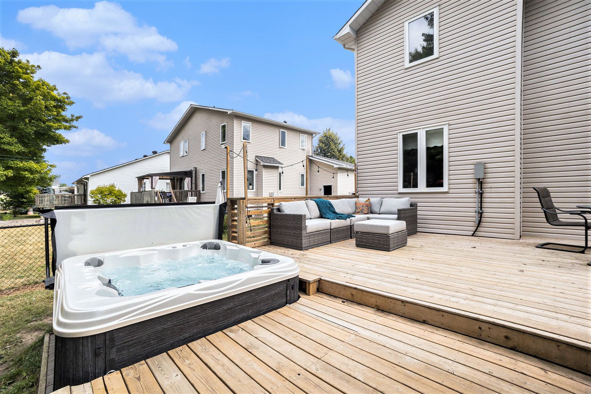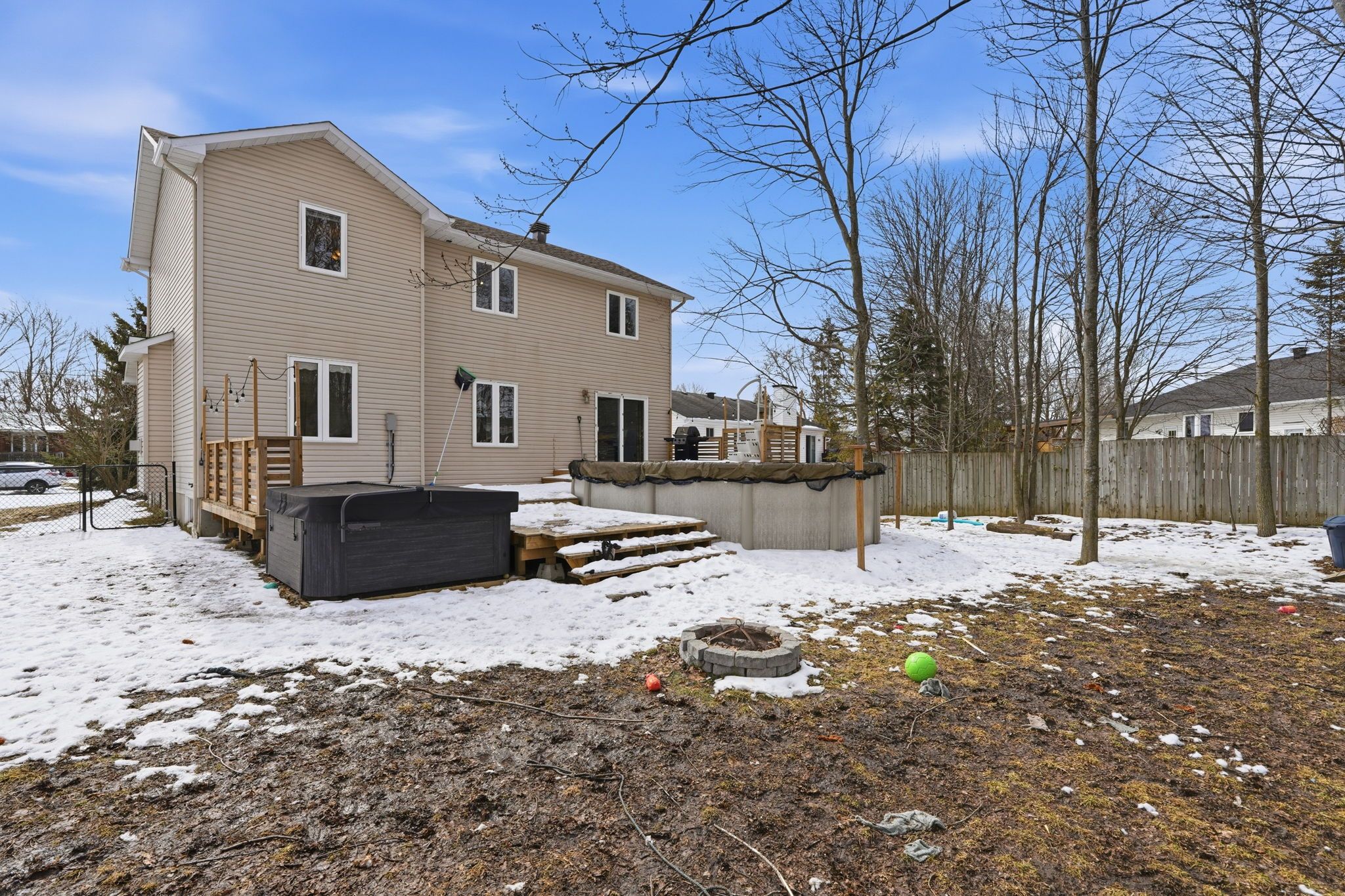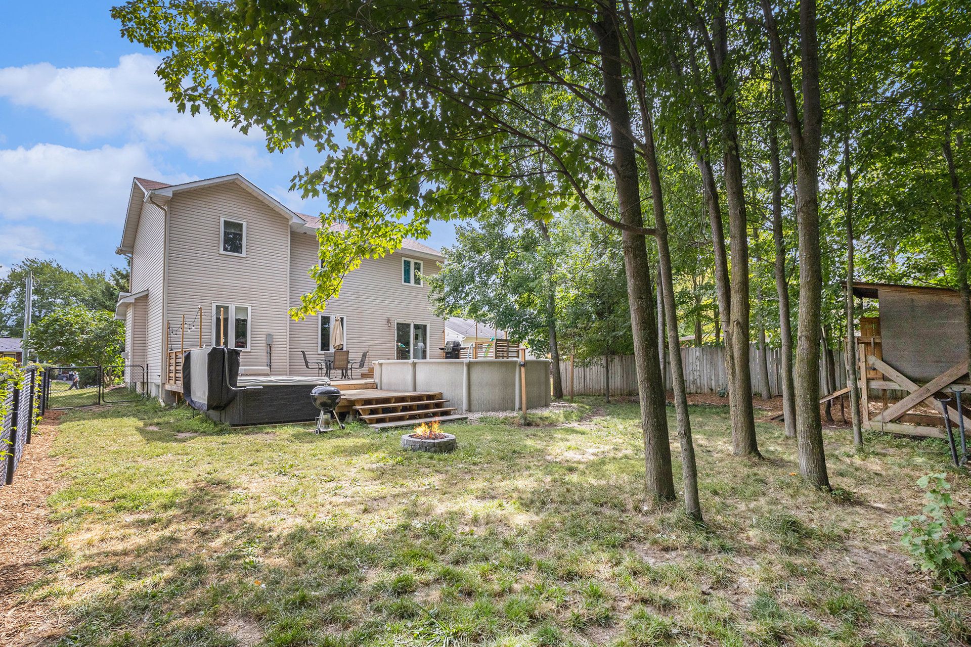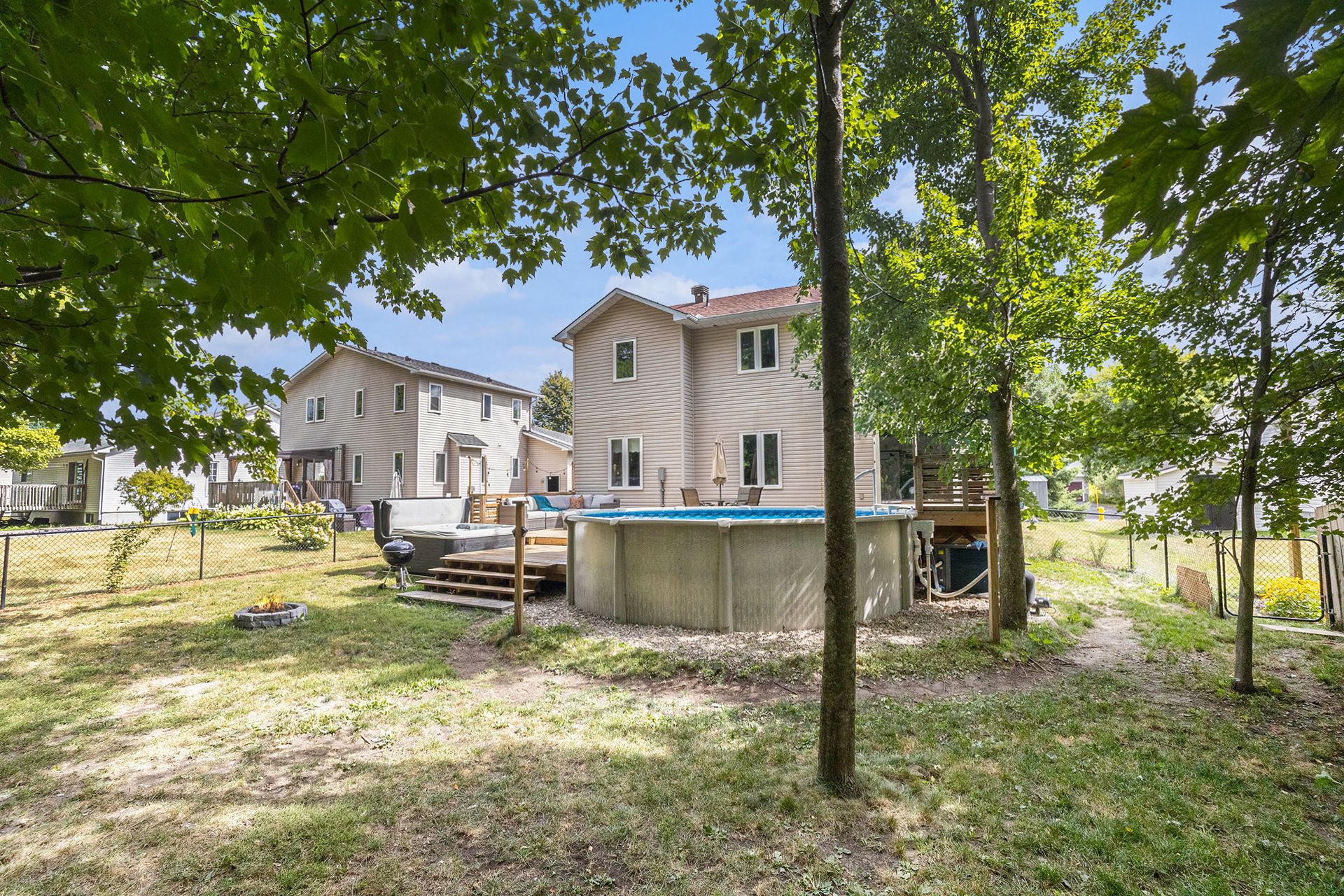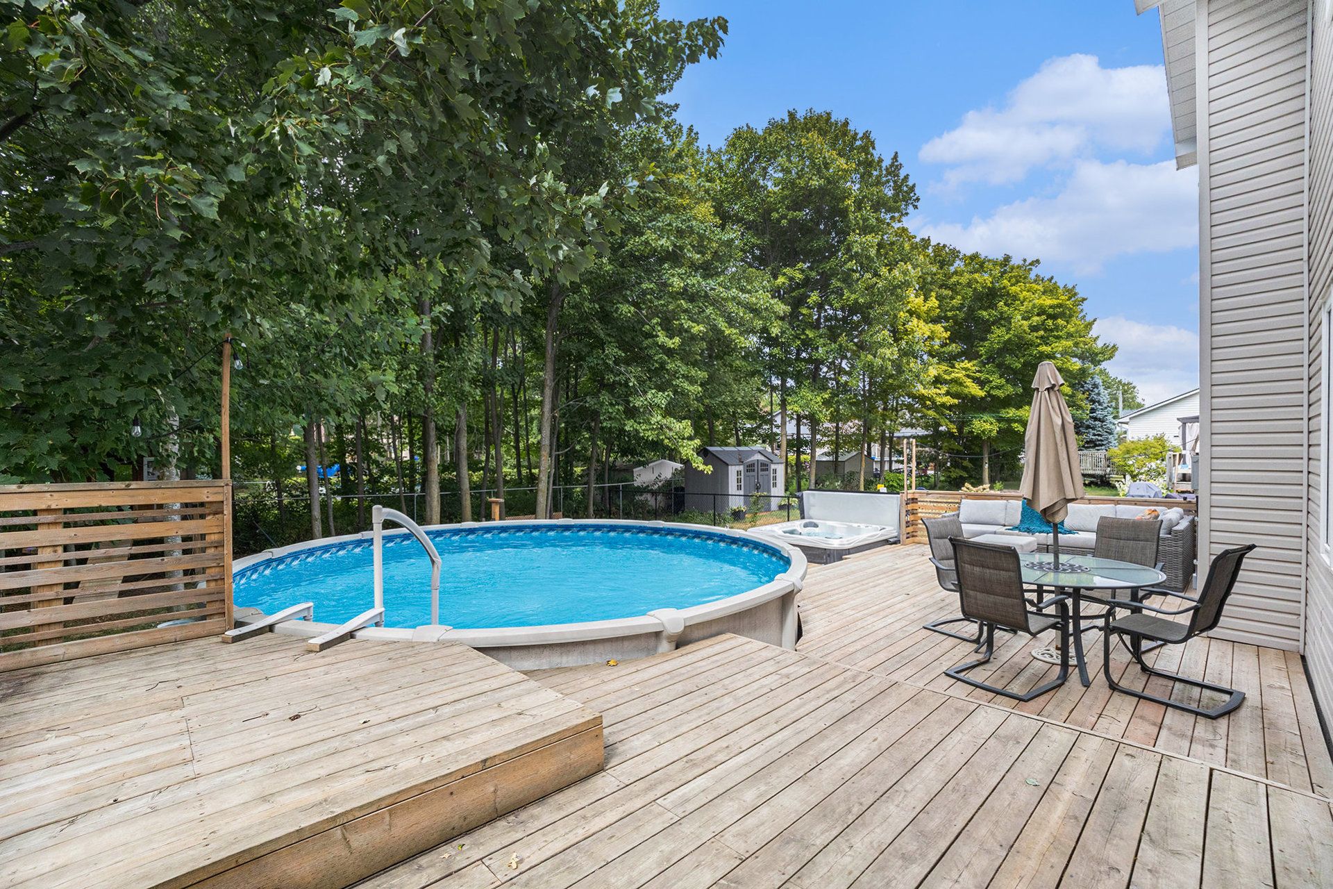 • Backyard oasis with a large deck and above-ground saltwater pool.