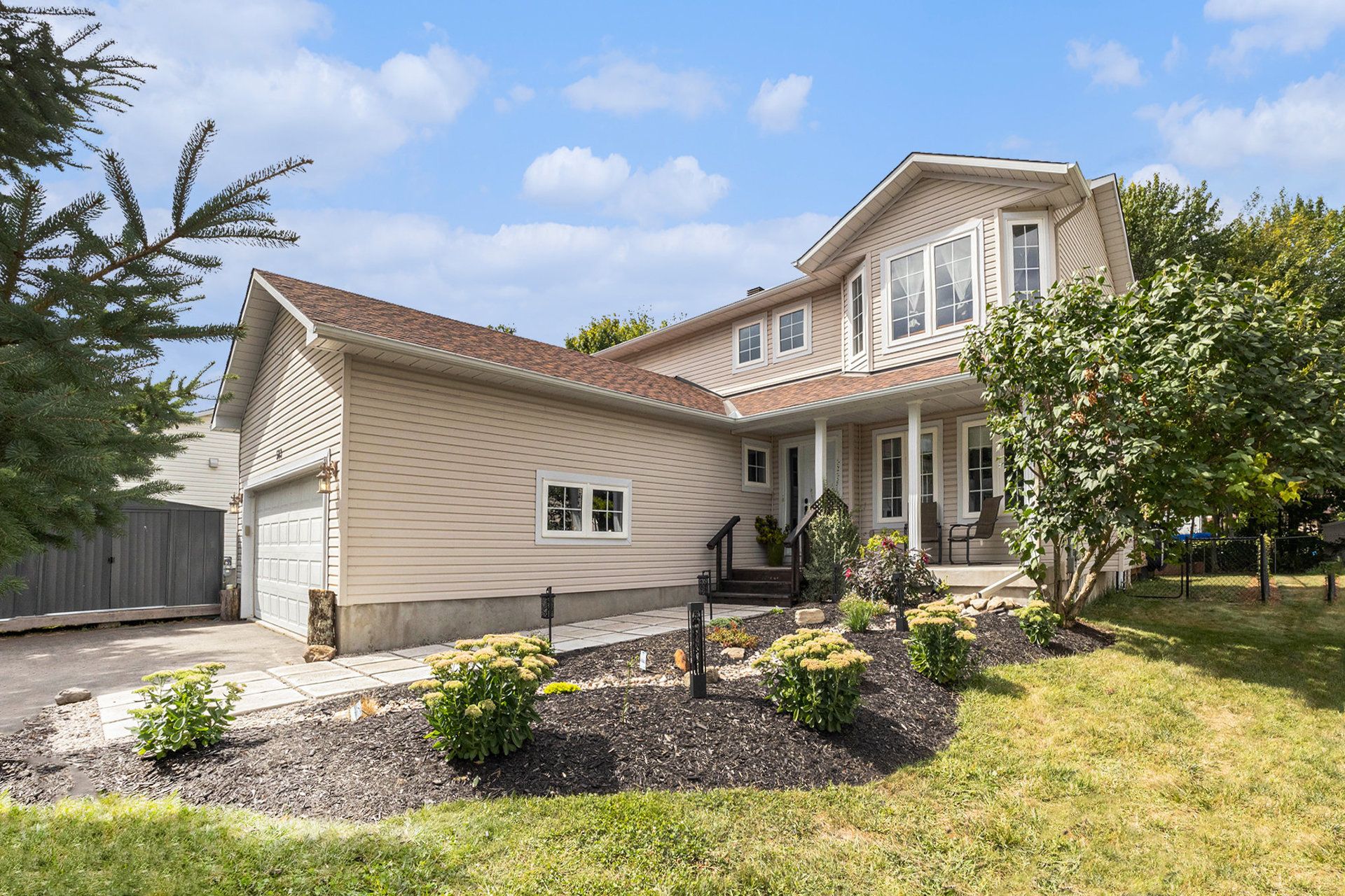 Welcome to this stunning home in the heart of russell, perfectly located near schools, parks, recreation, a lovely walking trail, and all essential amenities. Set on a beautifully landscaped lot, this property offers the ideal blend of comfort, style, and outdoor enjoyment. Step inside to a bright, open-concept main level designed for both everyday living and entertaining. The inviting living room features a cozy fireplace and flows seamlessly into the elegant dining area. The kitchen is both functional and stylish, offering ample cabinetry, beautiful finishes, a breakfast area, and patio doors that lead to the backyard. A convenient main floor partial bath and laundry room add to the home's practicality. Upstairs, you'll find three spacious bedrooms and two full bathrooms. The primary suite is a true retreat, complete with a walk-in closet and a private ensuite bathroom. Step outside to your own backyard oasis featuring a large deck, an above-ground saltwater pool, mature trees, and a fully fenced yard. A charming treehouse adds a unique touch, making this space perfect for families and entertaining alike. A perfect place to call home in a sought-after, family-friendly community.