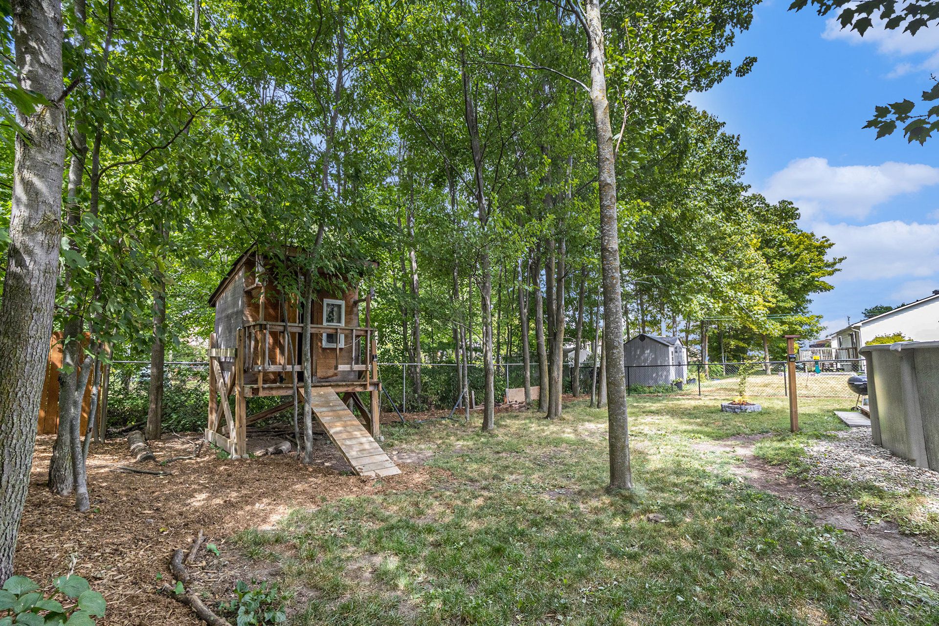 • Charming treehouse adds fun for families and guests.