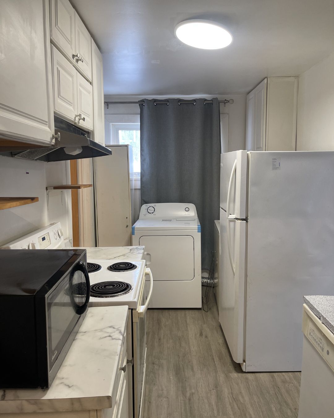 • Functional kitchen and in-unit laundry for convenience.