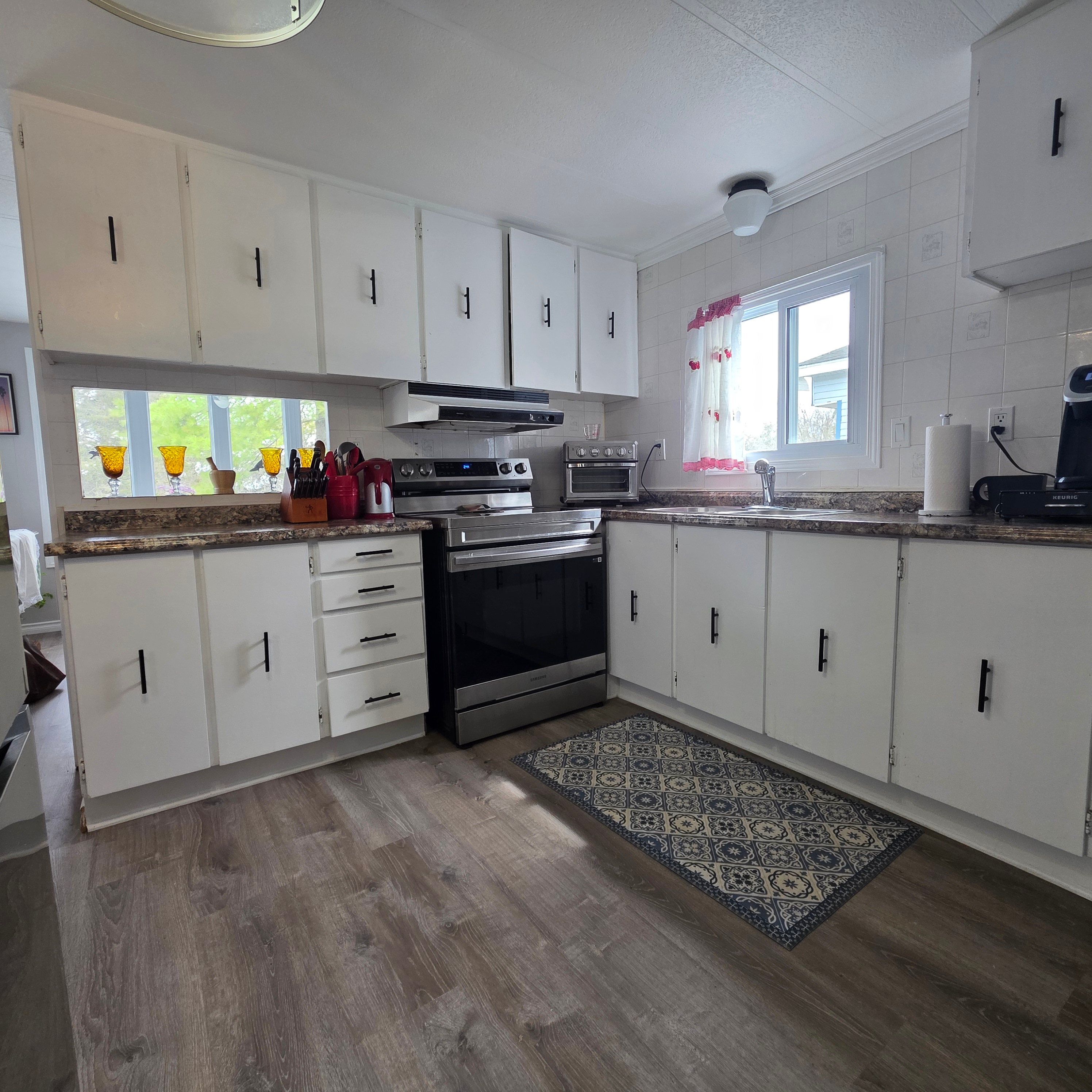 Looking for a cozy spot with a little personality? This updated mobile home has you covered. The bathroom's fresh, the primary bedroom is extra roomy thanks to a rear extension (big enough for your king size bed), and the wall of closets could handle a small wardrobe crisis. Stay comfy with a four-year-old ac and seven-year-old furnace. Thedining room's bay window gives you front-row seats to lake ontario-no ticket required. Outside, this shed comes with skylights and plenty of storage. Kick back in the backyard with the gazebo atop the elevated deck, all setagainst peaceful woods and a partially fenced yard. Most windows have been replaced, the paint was refreshed two years ago, and the flooring is new. The expanded living room and handy mudroom make life easier, and the built-in china cabinet keeps your kitchen classy. The front deck is ideal for sipping coffee and judging the sunrise. Looking for a day trip? Skip across to amherst island and join the bird watchers. Friendly neighbours and a relaxed vibe included-just add yourself!