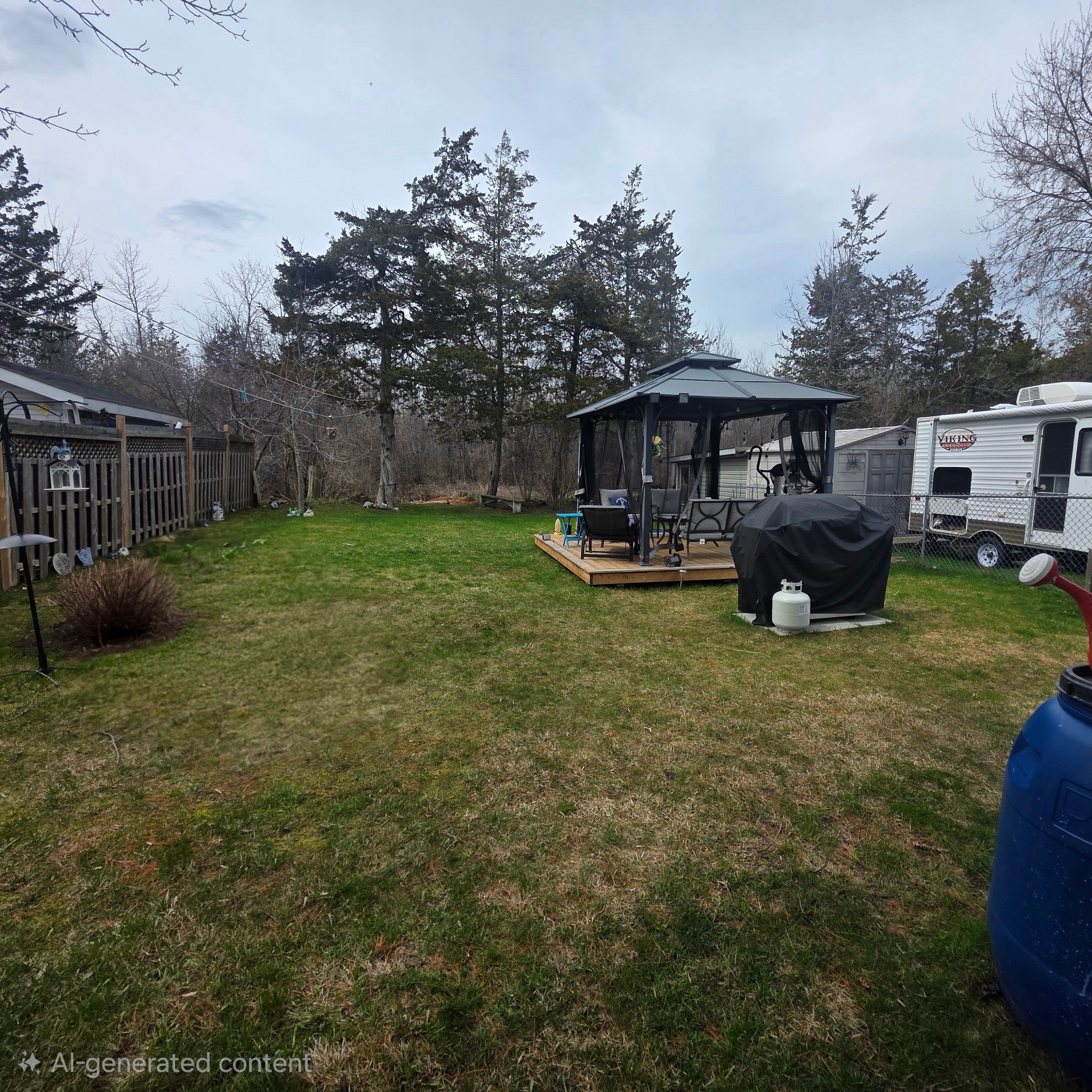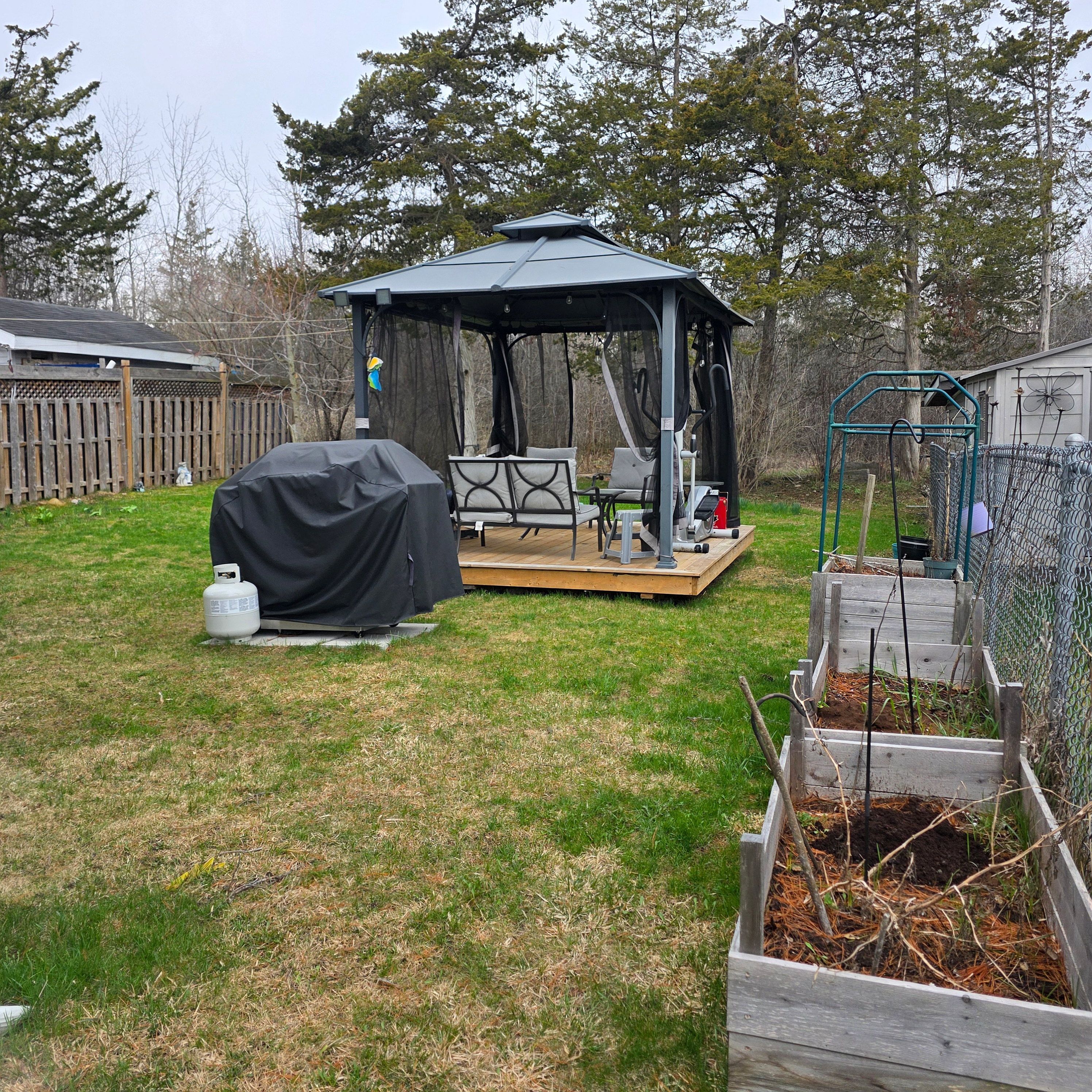 • Backyard features a gazebo on an elevated deck for relaxation.