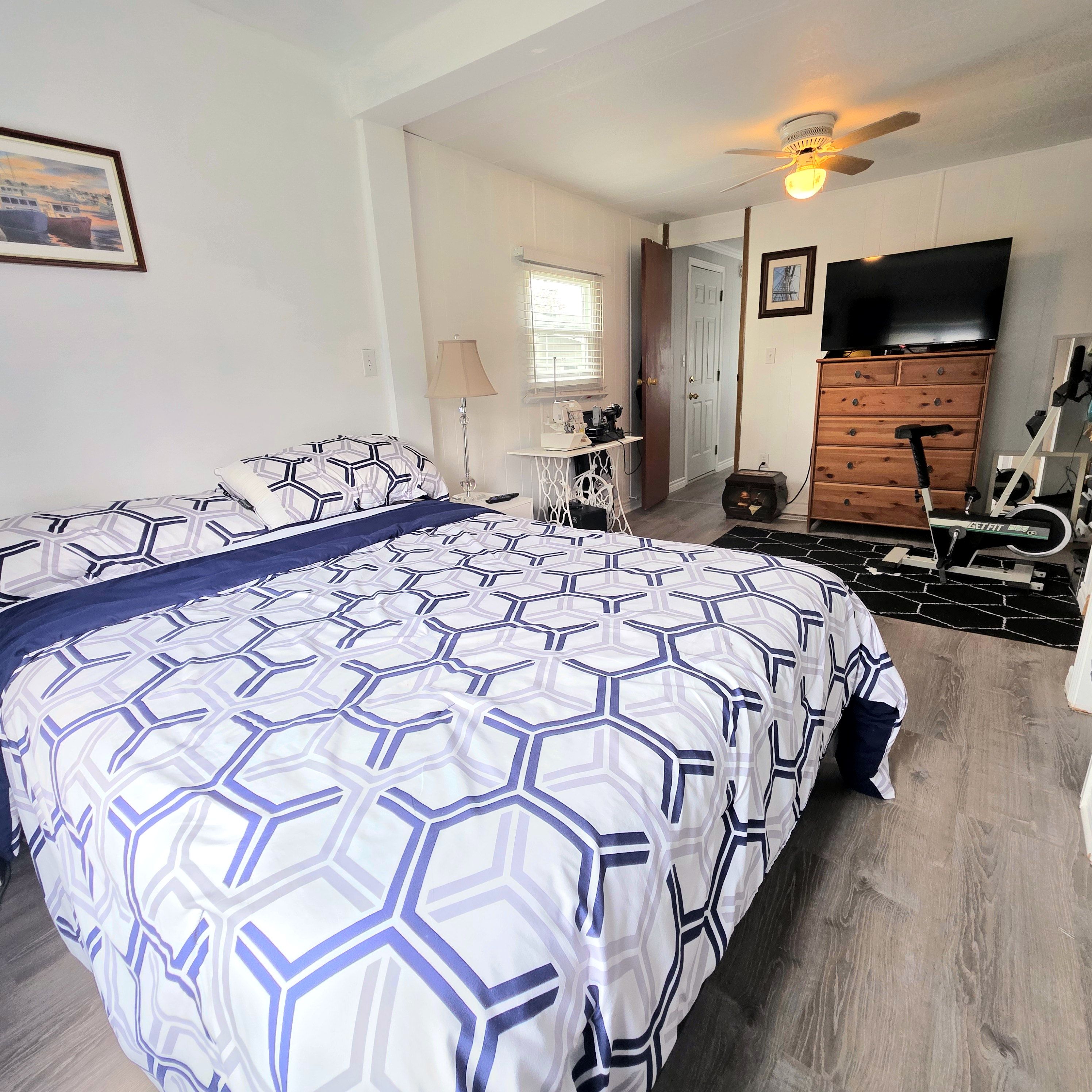 • Spacious primary bedroom with extra room for a king-sized bed.