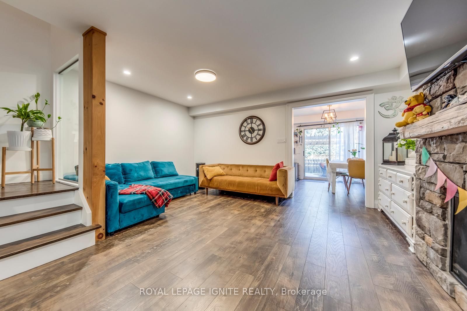 Beautiful, well-maintained and upgraded townhouse, linked only by the garage withconvenient door access to both the home and backyard. Features a bright and invitingliving/dining area with a real stone gas fireplace. Modern kitchen with a largeeat-in area, granite countertops, slate backsplash, stainless steel appliances, andwalk-out to a wood deck. Wood staircase with iron pickets leads to the second floorwith 3 spacious bedrooms, including a primary bedroom with a 4-piece ensuite, whilethe second and third bedrooms are also generously sized. Finished basement. Freshlypainted and very well maintained. Enjoy a private, fully landscaped backyard with arborvitae, white hydrangeas, andlilies-perfect for relaxing or entertaining. Great location within minutes to fortinos, longos, the outlet mall, and the upcomingcostco. Close to food basics, shoppers drug mart, local shops, cineplex, restaurants,cafes, beaches, and scenic trails. Near a community centre, parks, and just 7 minutesto appleby go. Located in a safe and quiet neighborhood with friendly neighbor's-perfect forcomfortable family living.