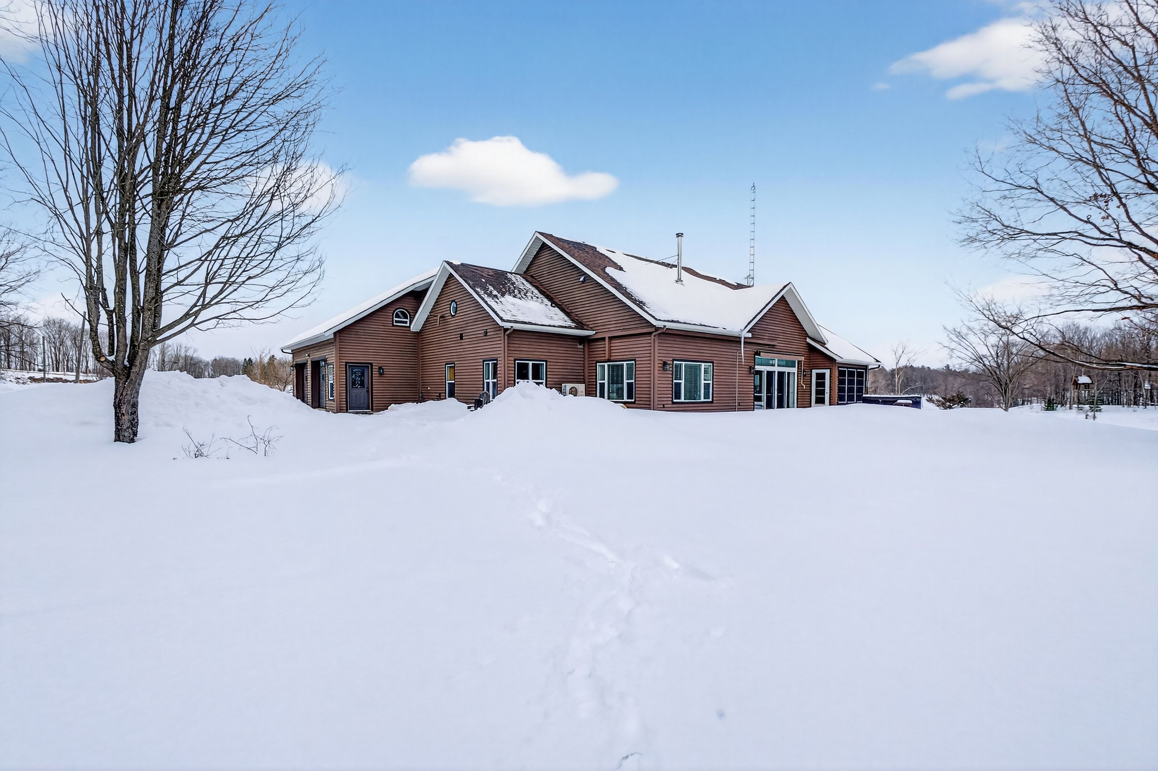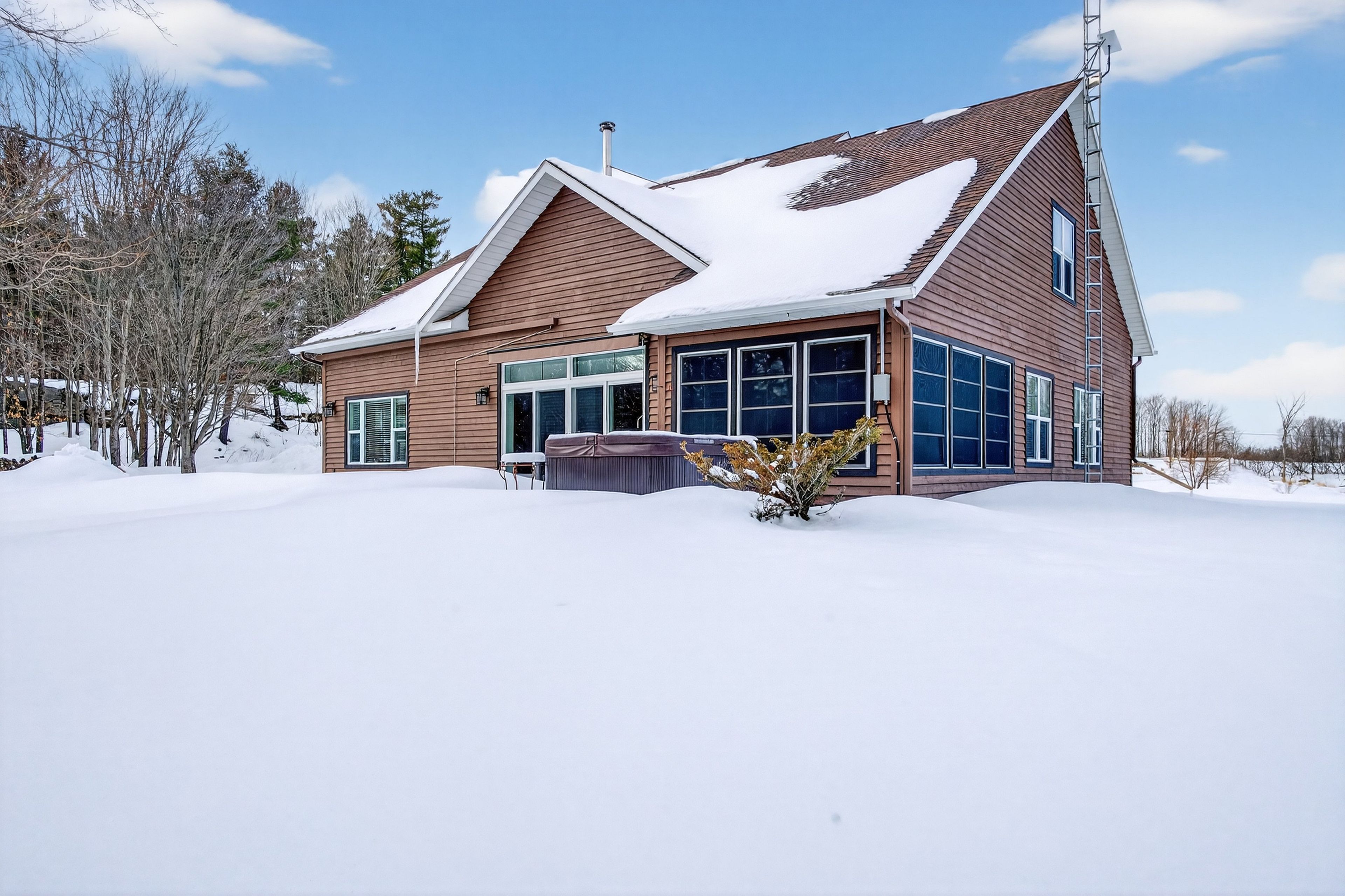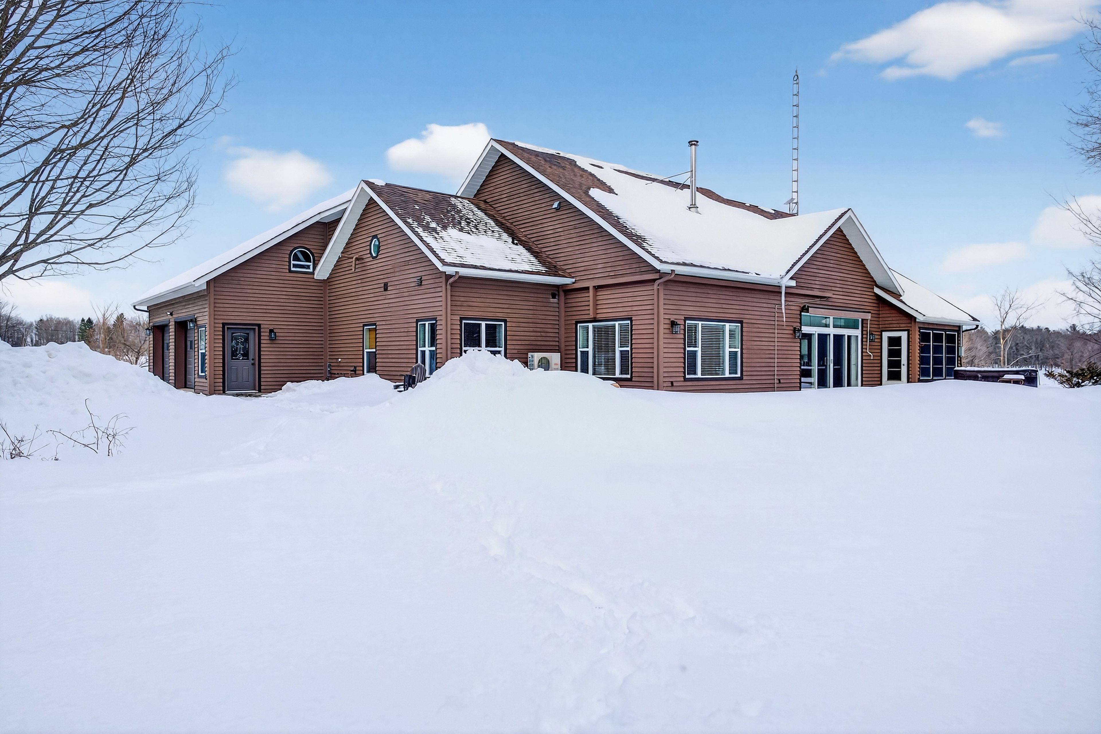 Set on just over 10 acres of beautifully treed countryside, this exceptional slab-on-grade bungaloft offers the perfect blend of quality craftsmanship, thoughtful design, and serene rural living. Built with icf construction right to the rafters for superior efficiency and durability, this home is as solid as it is stunning. Complete with an attached 2-car garage and an additional detached 1. 5-car garage, there's ample space for vehicles, hobbies, and storage. Conveniently located just a 20-minute drive from kingston for easy access to city amenities. Surrounded by nature, the property features two spring-fed ponds and an abundance of wildlife, creating a private retreat-like setting you'll enjoy year-round. Step inside to a bright, open-concept main living space highlighted by an abundance of large windows that flood the home with natural light. The inviting living room features a cozy wood-burning fireplace and patio doors leading to the backyard stamped concrete patio - the perfect place to unwind and take in the peaceful views. A dedicated dining room seamlessly flows into the gourmet kitchen, designed to impress with a large center island, granite countertops, and an abundance of cabinetry for all your storage needs. Just off the kitchen, a charming 3-season sunroom offers a tranquil space to enjoy your morning coffee while overlooking the surrounding landscape. On the opposite wing of the home, you'll find a convenient 2-piece bath, a spacious laundry room, and a generously sized primary suite. The primary bedroom boasts a walk-in closet and a luxurious 5-piece ensuite complete with a soaker tub and glass shower - your own private escape at the end of the day. Upstairs, the bungaloft design offers three lovely sized bedrooms, ample storage space, and a well-appointed 4-piece bathroom - ideal for family or guests. A truly beautiful home offering peace, privacy, and the quiet charm of country living - all wrapped in quality construction and timeless design.