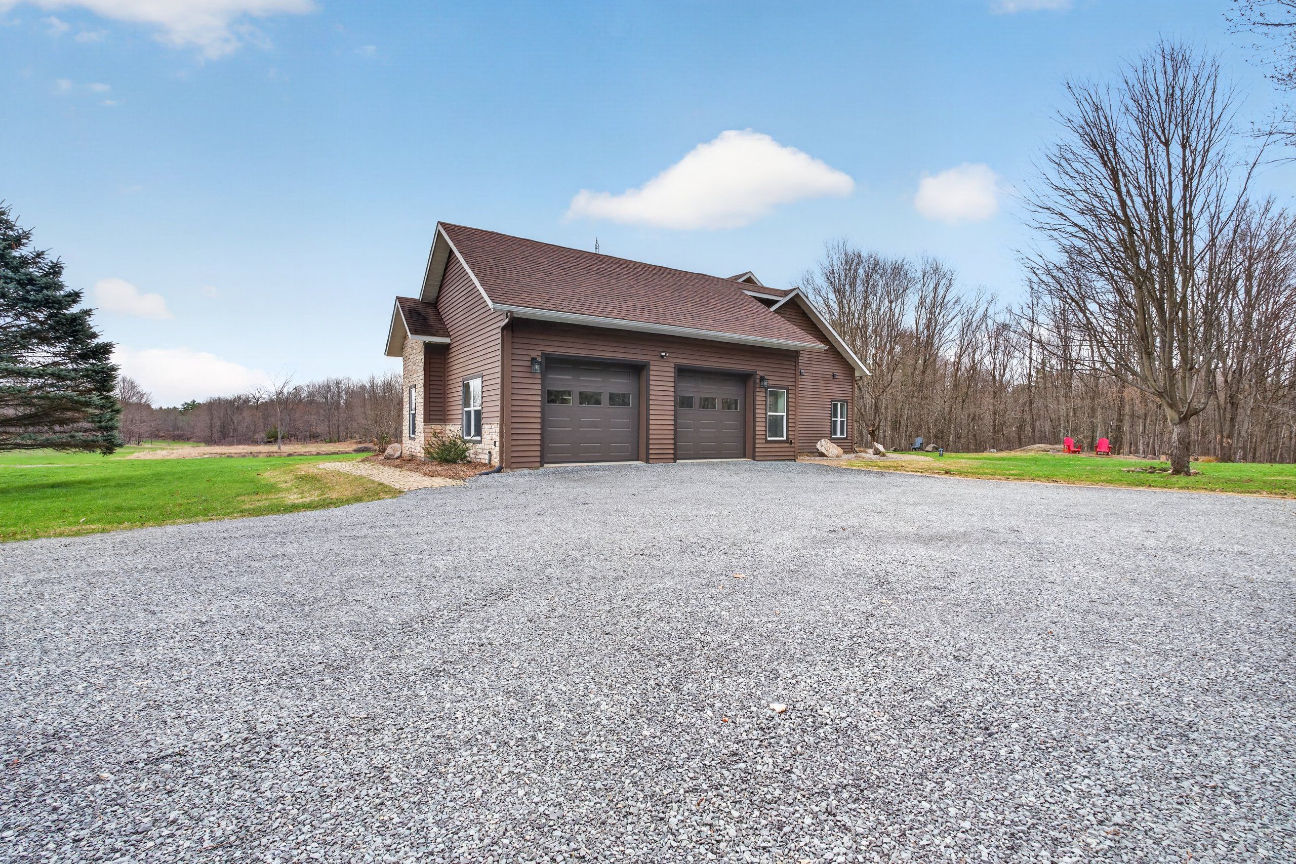 • Includes multiple garages for vehicles, hobbies, and storage needs.