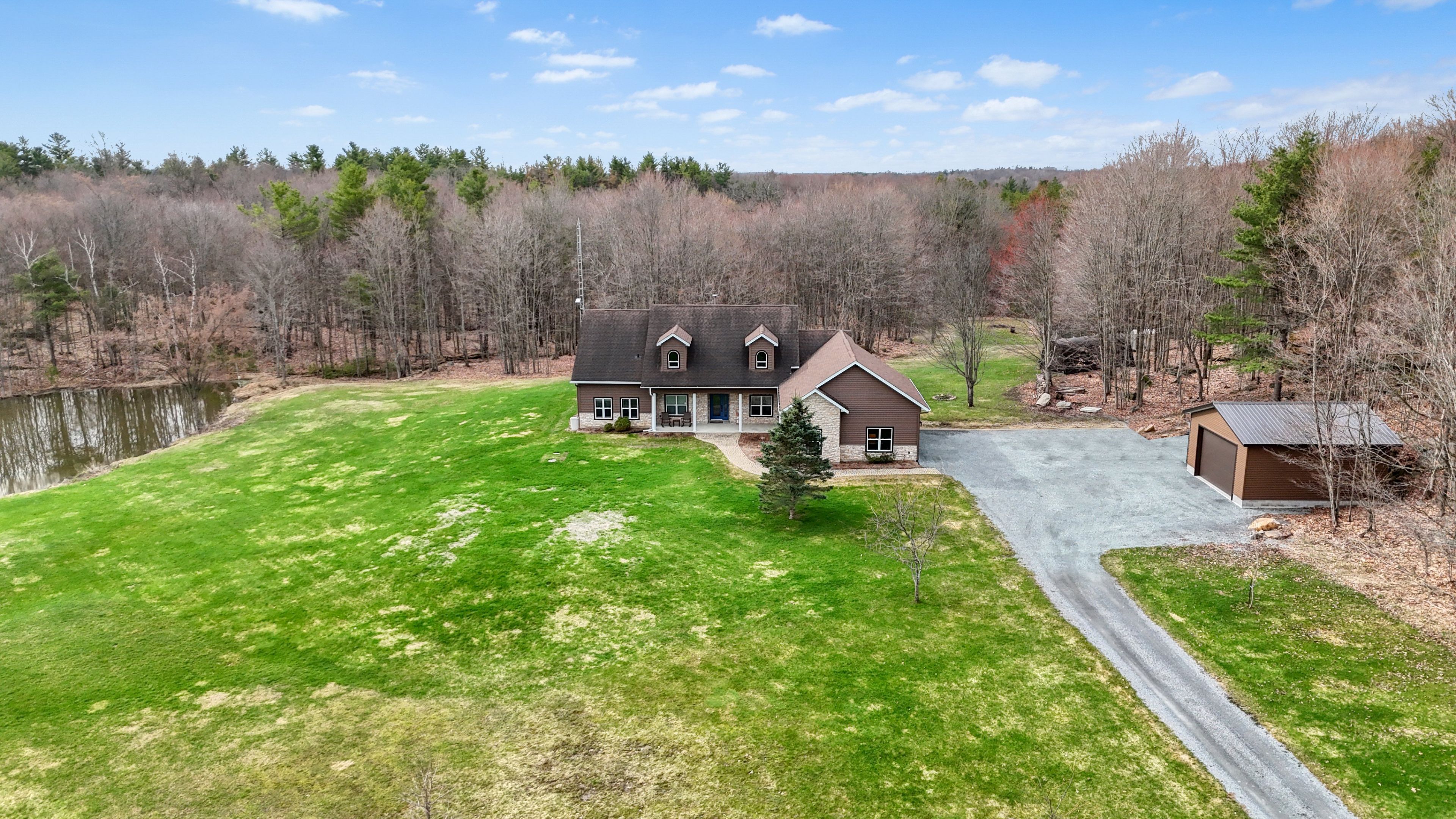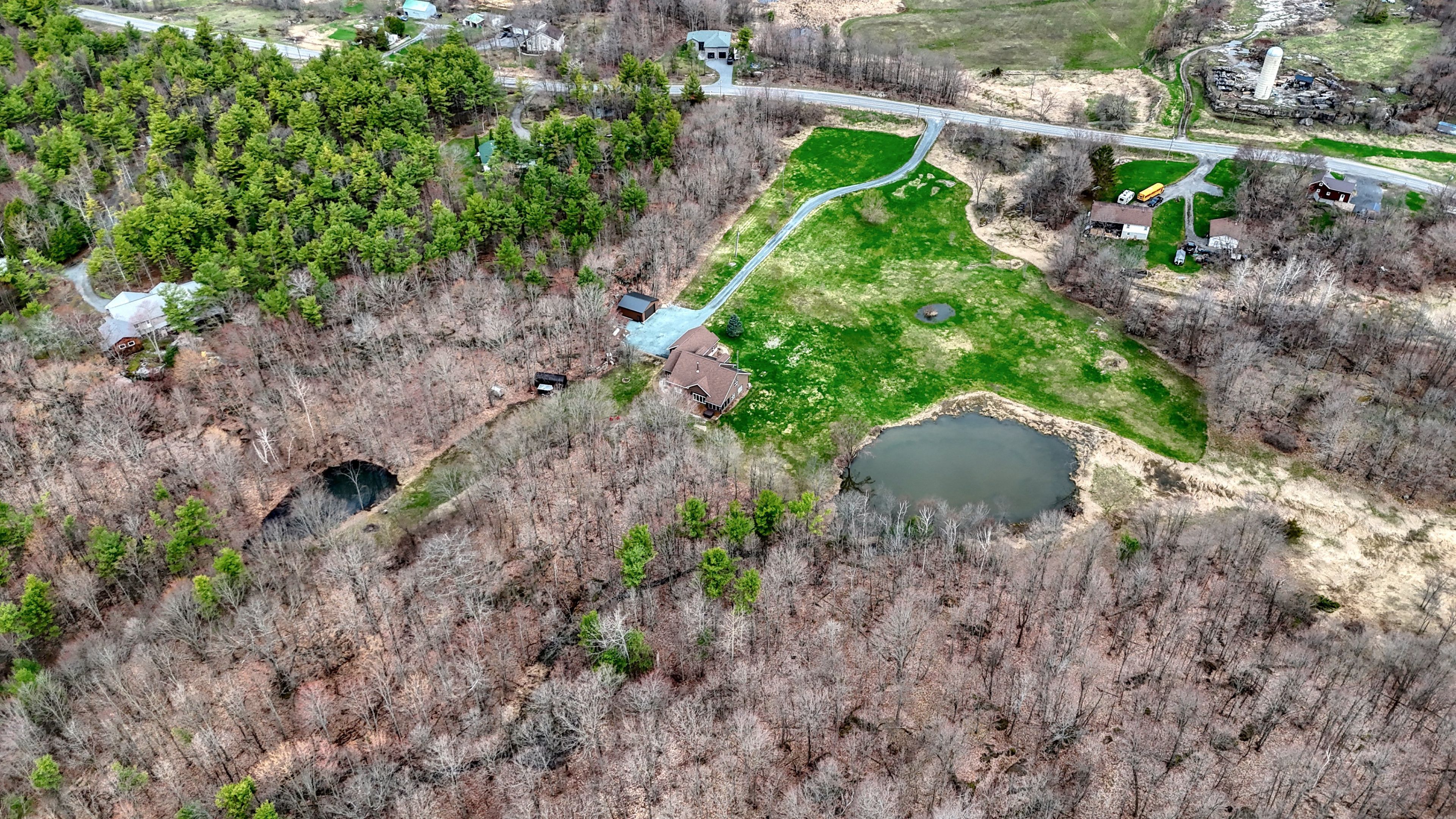 Set on just over 10 acres of beautifully treed countryside, this exceptional slab-on-grade bungaloft offers the perfect blend of quality craftsmanship, thoughtful design, and serene rural living. Built with icf construction right to the rafters for superior efficiency and durability, this home is as solid as it is stunning. Complete with an attached 2-car garage and an additional detached 1. 5-car garage, there's ample space for vehicles, hobbies, and storage. Conveniently located just a 20-minute drive from kingston for easy access to city amenities. Surrounded by nature, the property features two spring-fed ponds and an abundance of wildlife, creating a private retreat-like setting you'll enjoy year-round. Step inside to a bright, open-concept main living space highlighted by an abundance of large windows that flood the home with natural light. The inviting living room features a cozy wood-burning fireplace and patio doors leading to the backyard stamped concrete patio - the perfect place to unwind and take in the peaceful views. A dedicated dining room seamlessly flows into the gourmet kitchen, designed to impress with a large center island, granite countertops, and an abundance of cabinetry for all your storage needs. Just off the kitchen, a charming 3-season sunroom offers a tranquil space to enjoy your morning coffee while overlooking the surrounding landscape. On the opposite wing of the home, you'll find a convenient 2-piece bath, a spacious laundry room, and a generously sized primary suite. The primary bedroom boasts a walk-in closet and a luxurious 5-piece ensuite complete with a soaker tub and glass shower - your own private escape at the end of the day. Upstairs, the bungaloft design offers three lovely sized bedrooms, ample storage space, and a well-appointed 4-piece bathroom - ideal for family or guests. A truly beautiful home offering peace, privacy, and the quiet charm of country living - all wrapped in quality construction and timeless design.