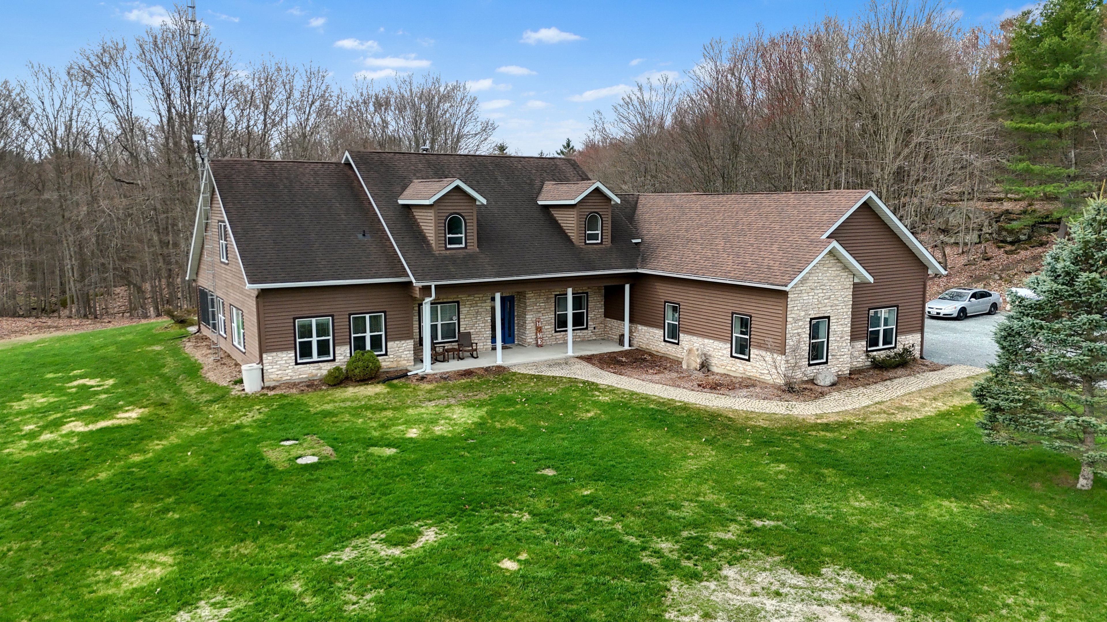• Set on over 10 acres of beautiful treed countryside for privacy.