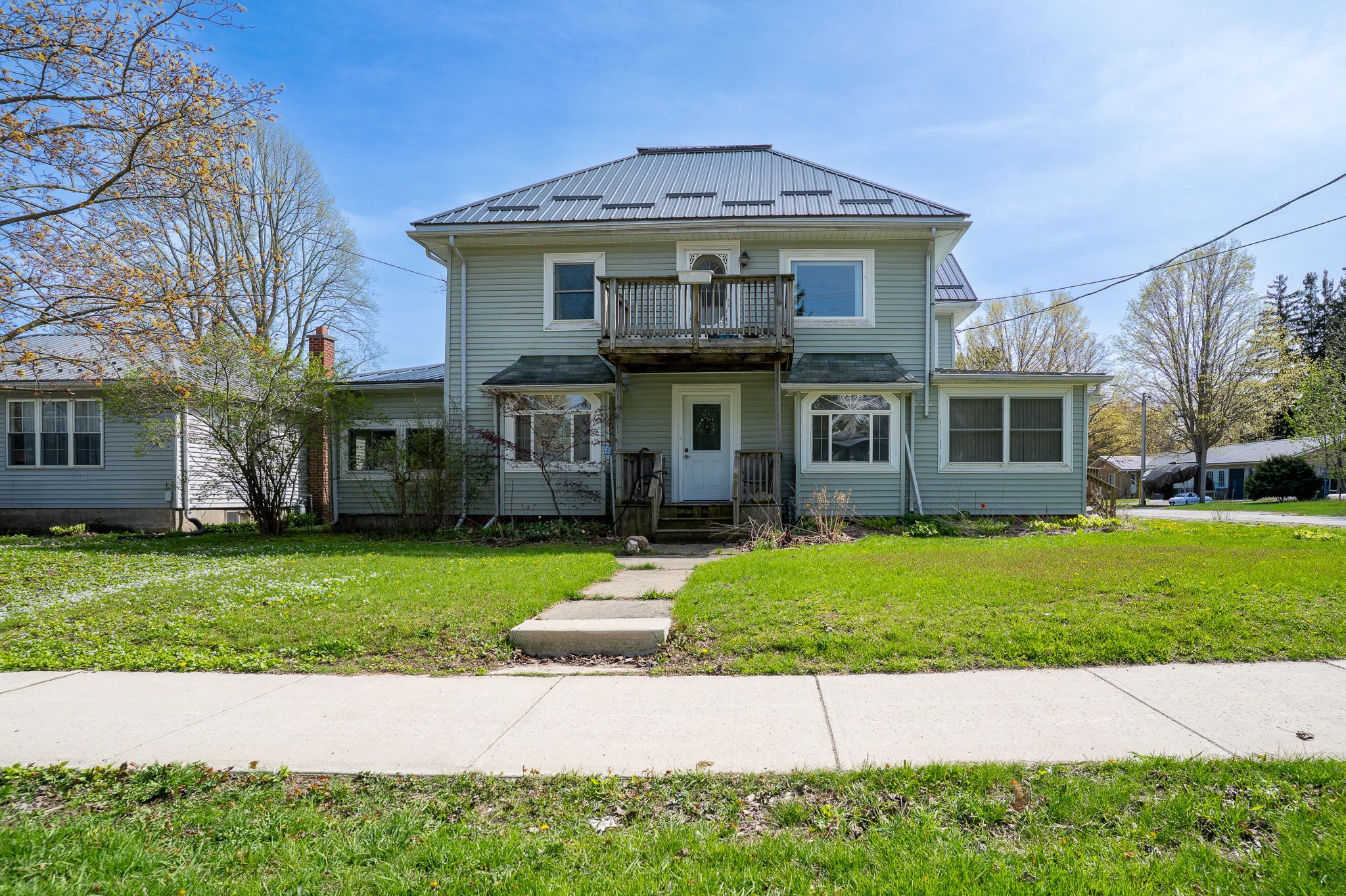 Lots of room in this home with an attached double car garage and a detached two car shop with a shed. This home has a newer steel roof, on a corner lot with a direct entrance to upstairs which has its own kitchen, two bedrooms, and bathroom. This is a single family home but set up for a duplex with the main floor having its own bedroom, bathroom, kitchen, and large living room. There is some work needed here, but the structure of the home is solid. If you are handy and need a large home for your family, this is a perfect place to consider.