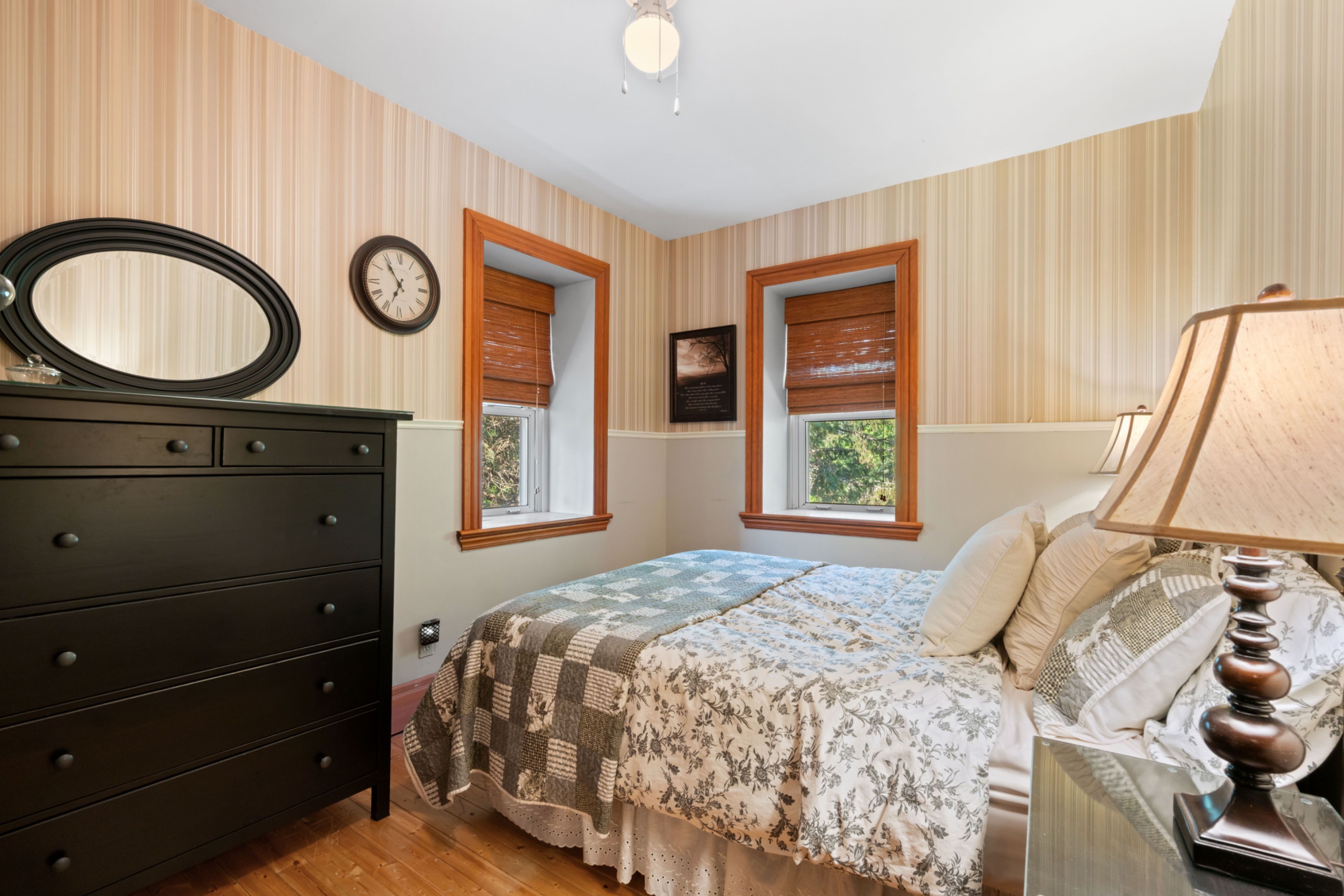 Horse farm with century home on 10 acres! Step back in time with this enchanting brick century home, built in the 1860s & set on approximately 10 acres of countryside just minutes from lancaster & alexandria and about an hour from montreal & ottawa. Bursting with charm & character this property is the perfect blend of history, comfort & rural living. The tree-lined laneway, bordered by a natural rustic wood fence, leads you to the homes welcoming front yard, complete with a graceful weeping willow & a classic tire swing, a picture-perfect country setting. Inside, the three-bedroom home showcases original flooring, soaring main-floor ceilings, & authentic trim & moldings, with sun-filled windows in every room. The kitchen island with cooktop & seating for two is ideal for quick meals, while the formal dining room offers an elegant space for family gatherings or entertaining guests. The living room features a cozy gas fireplace & expansive windows overlooking the grounds, while the parlor highlights a charming three-part bay window with views of the treed front yard. Step outside to enjoy the porch, perfect for morning coffee or evening relaxation, continue to the above-ground pool for family fun, barbecues, or simply soaking in the peaceful sounds of nature. For equestrian enthusiasts, the property is complete with a 4-stall barn, 2 paddocks, & a large pasture, a turnkey setup for horses & country living. This timeless property offers more than a home, it offers a lifestyle, combining historic elegance with the serenity of the countryside.