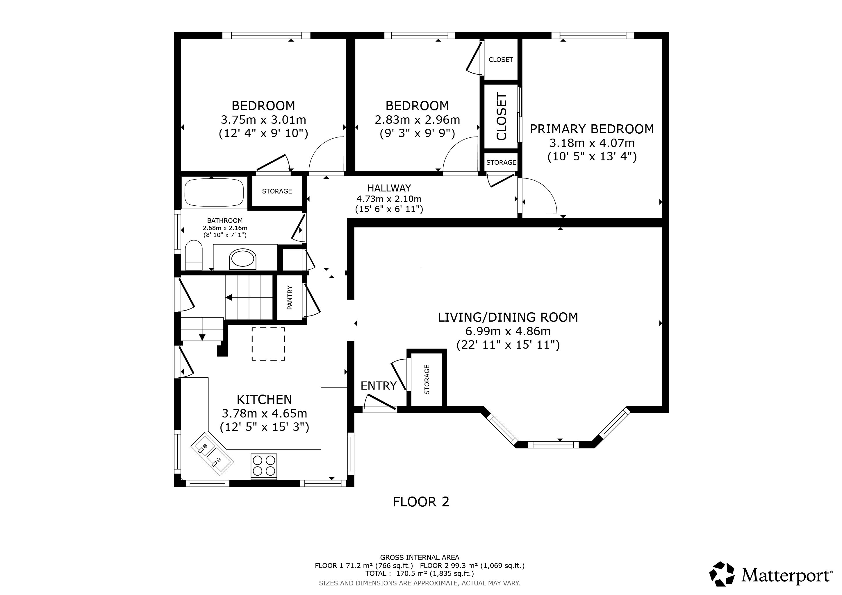 • Private fenced backyard with inground pool and convenient storage sheds.