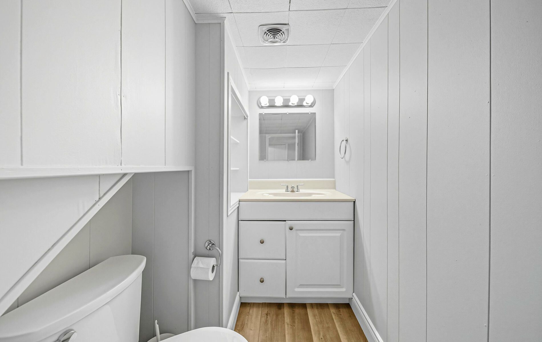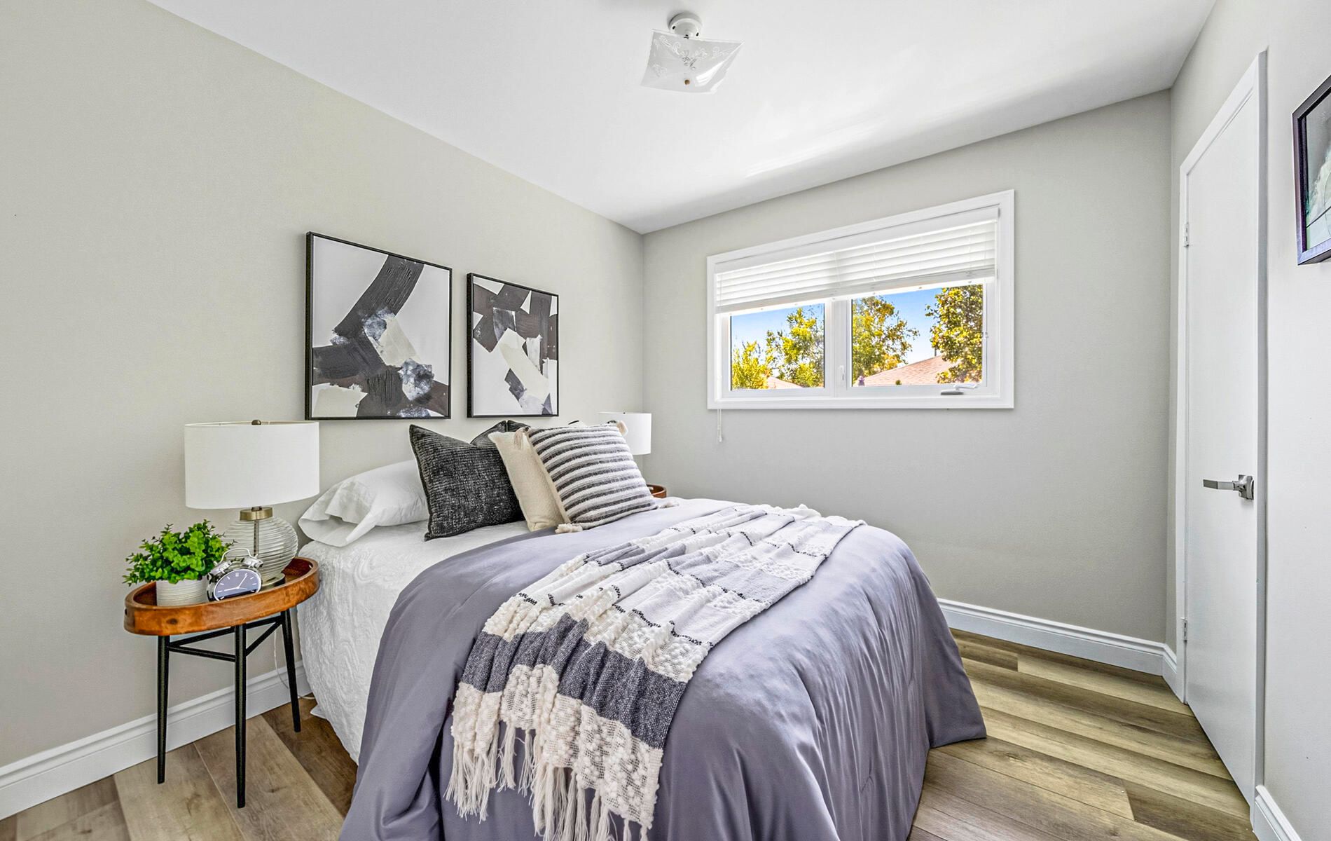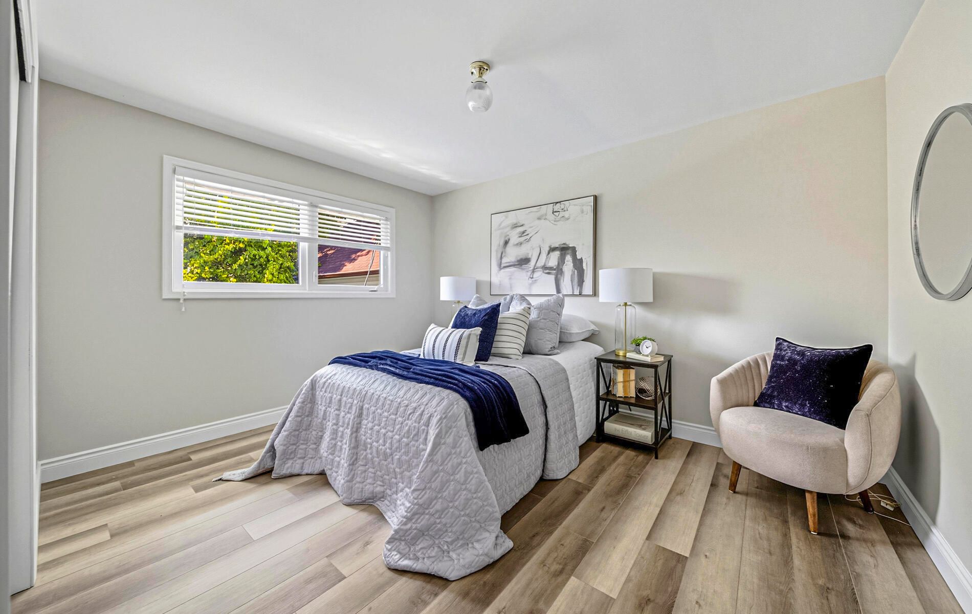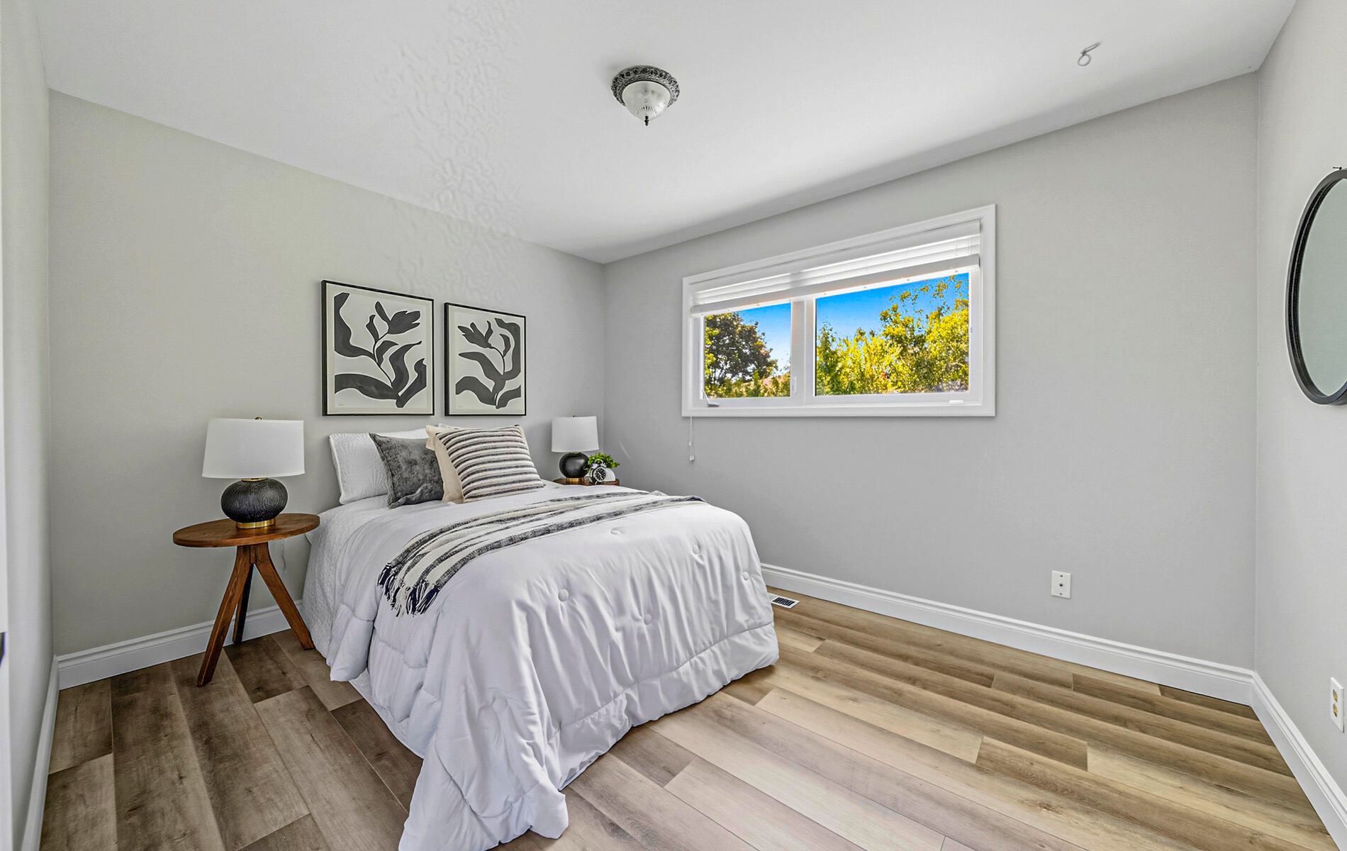 • Renovated kitchen with hardwood cabinetry and oversized windows for a welcoming feel.