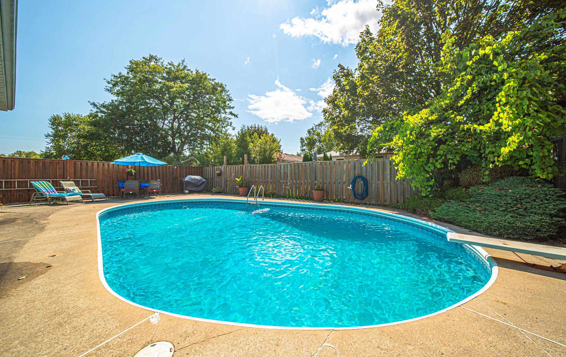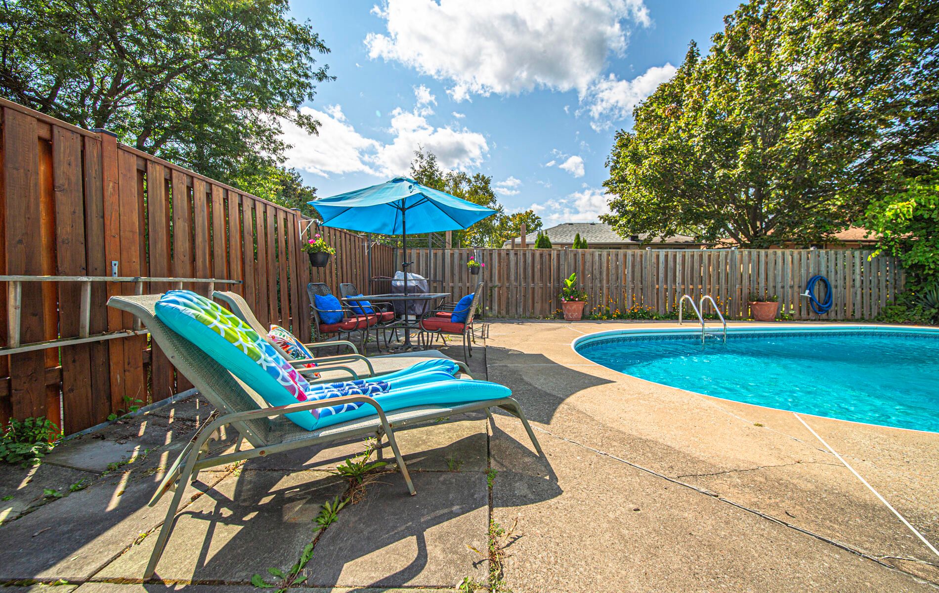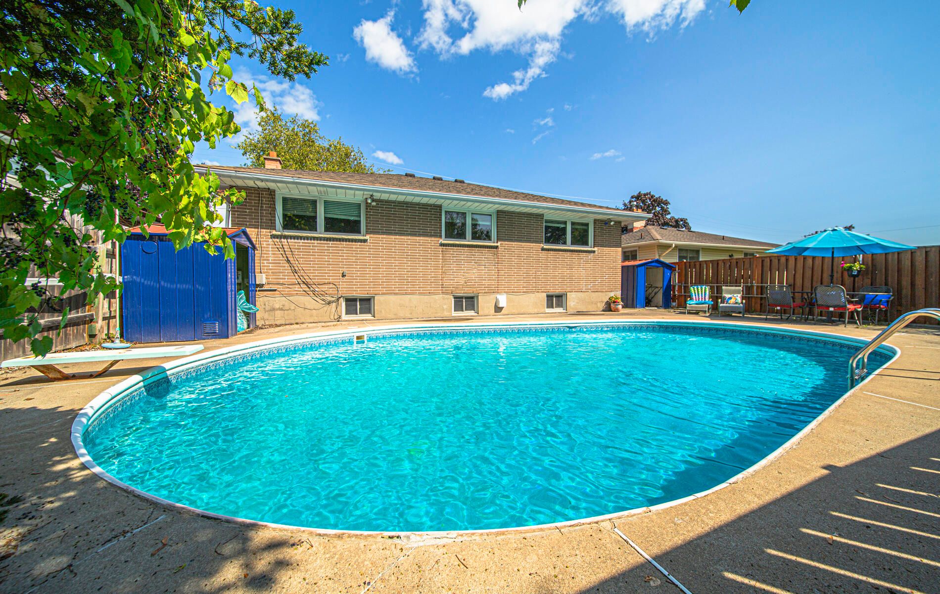 • Private fenced backyard with inground pool, two sheds, and plenty of outdoor space.