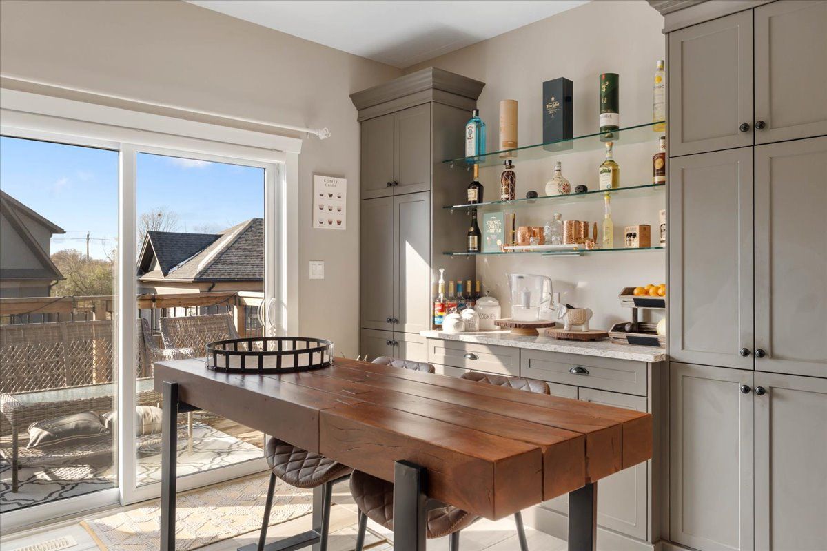 • Modern kitchen featuring granite countertops and a spacious island.