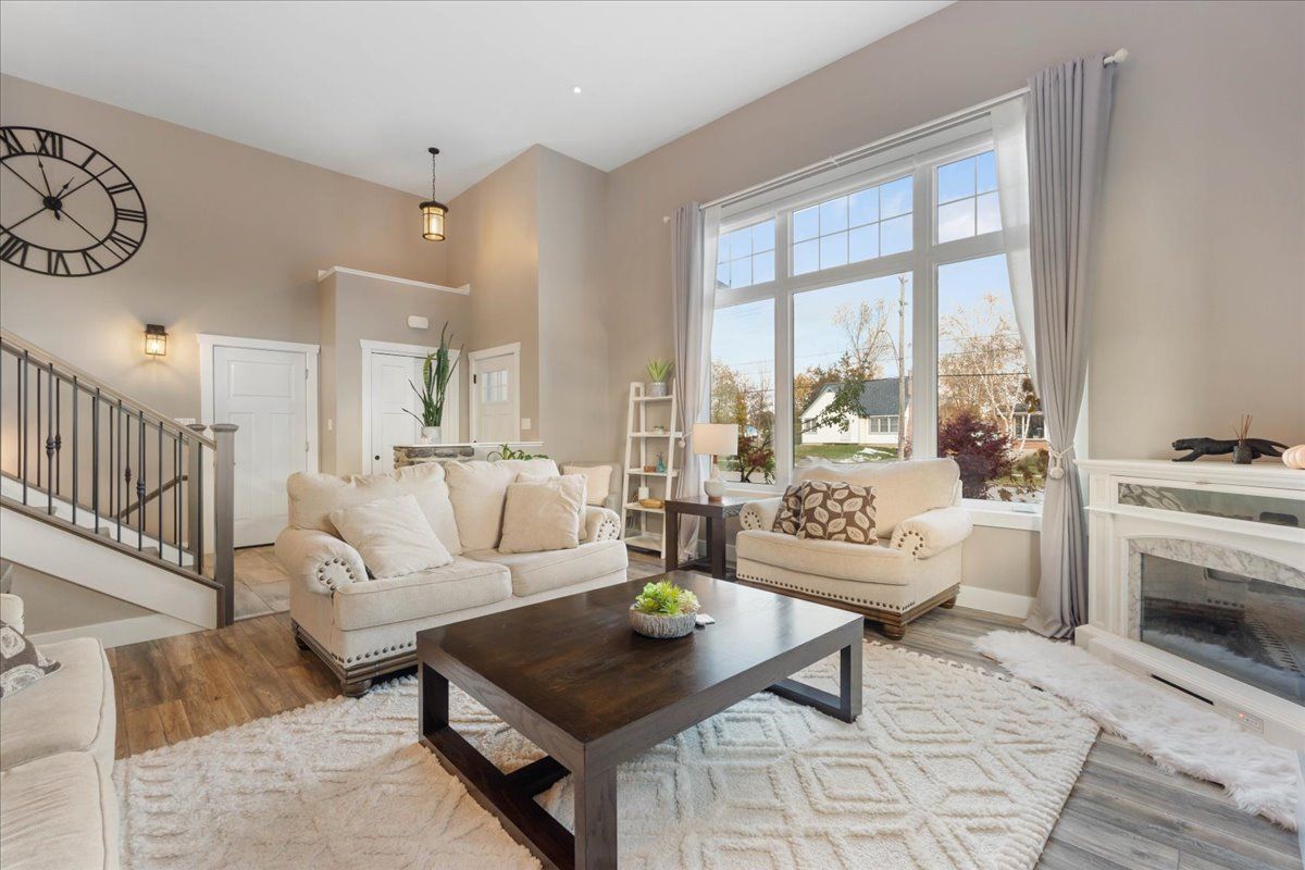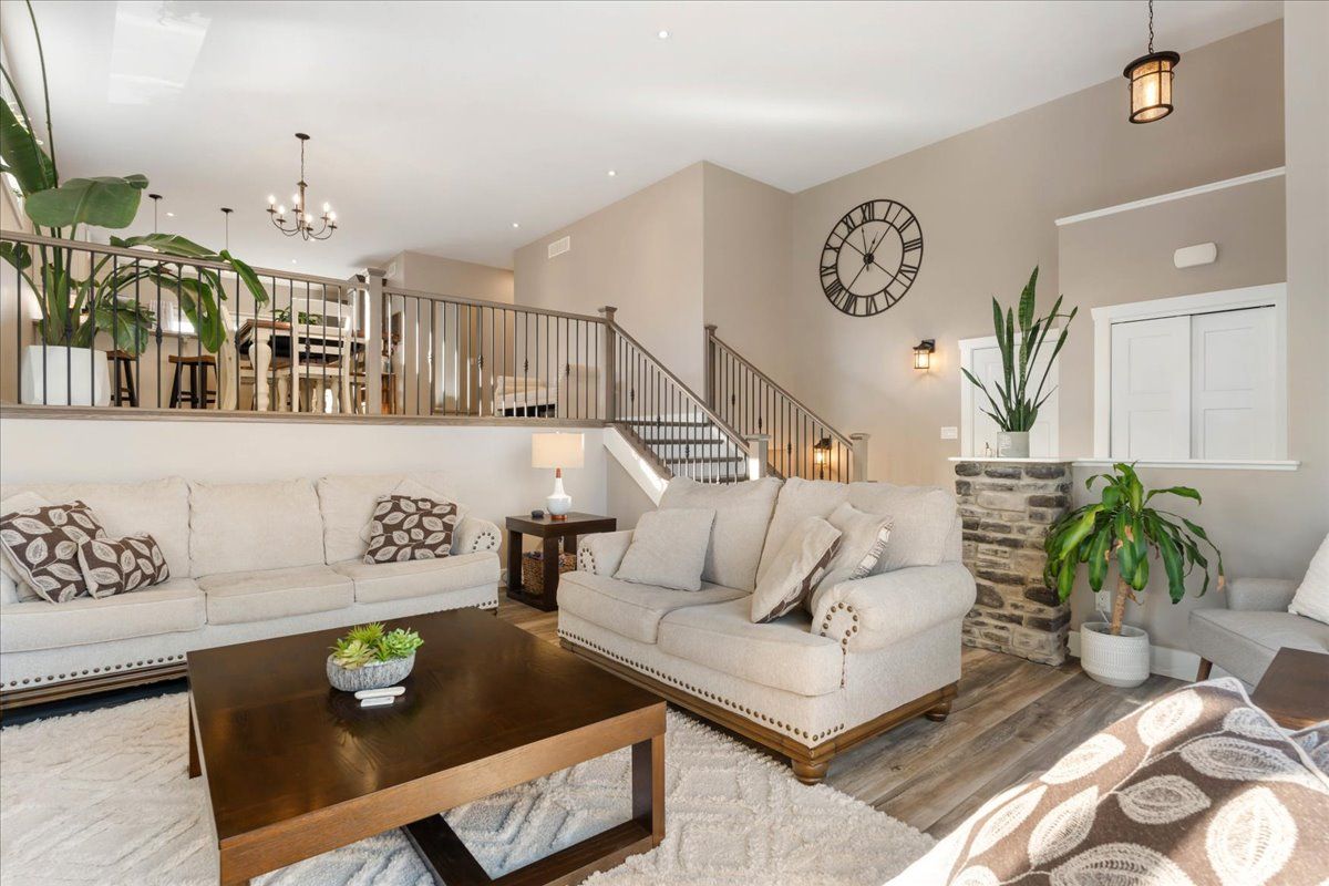 • Bright open-concept layout with cathedral ceilings and large windows.