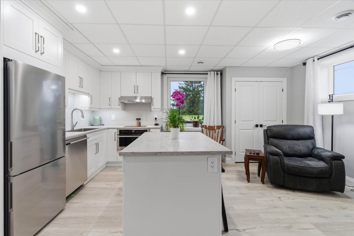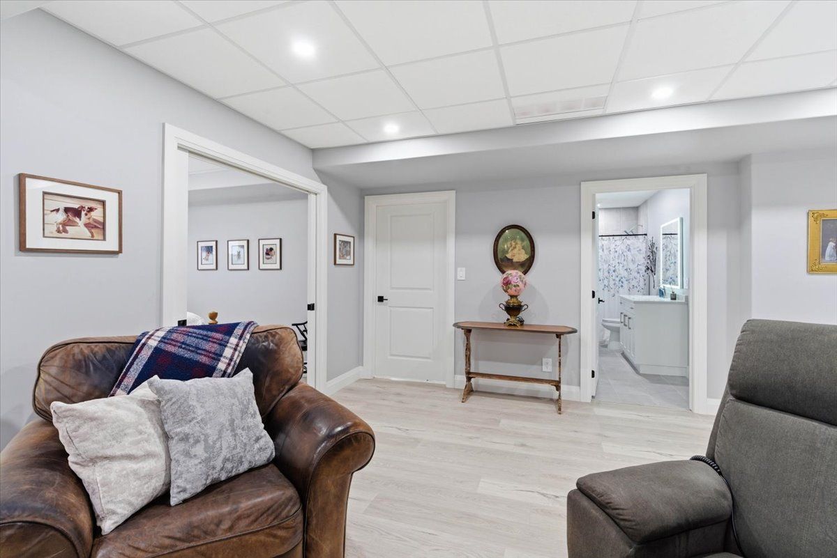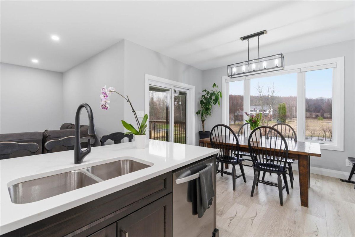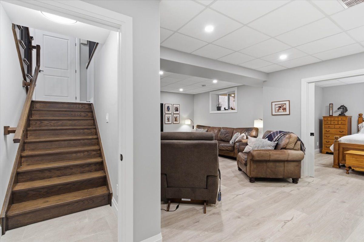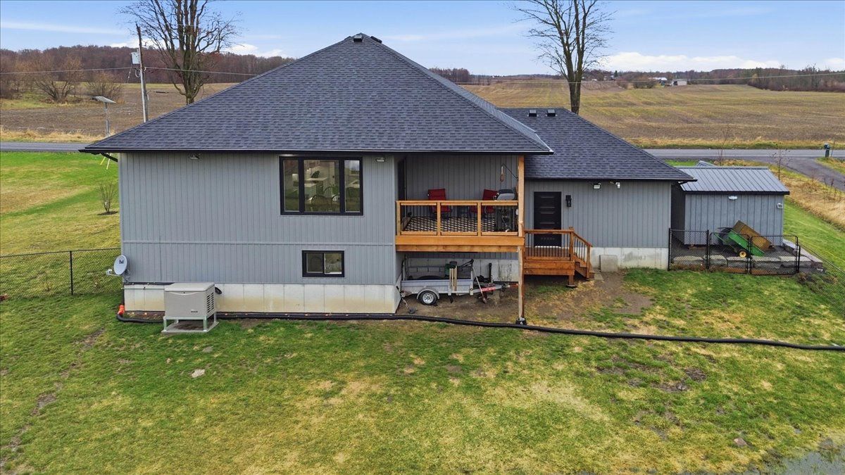 Gorgeous modern home in a lovely quiet rural setting. This property has exactly that and updates galore. This home shines with pride of ownership and has been beautifully renovated. Main floor offers spacious foyer and 9 foot ceilings throughout the main floor. Open concept living area with stunning kitchen complete with quartz countertops, island with overhang for bar stools, corner pantry and cabinets to the ceiling. Bright dining area with walk out to covered deck. Primary bedroom with walk in closet and spa like 4pc ensuite with large glass shower and amazing soaker tub. Two additional generous bedrooms, 4pc bath and main floor laundry with cabinets for additional storage. The lower level has been fully finished and is a wonderful addition to this home. It offers a large rec room and bedroom. Further to that a lovely guest suite which boasts a kitchenette (2 burner induction cooktop/convection microwave oven) and island. Bright bedroom area, large closets, fully rotating tv mount and 3 pc bath. Fully fenced area of yard, attached insulated and heated double car garage. Further property updates include, 12 x 12 wooden shed with hydro, yard lights, 26kw kohler home generator, 5ft high chain link fence, bathroom mirrors are lighted and heated. Basement walls have extra insulation and safe'n sound insulation in ceiling. Located less than 20 minutes to 401, shopping, schools and all amenities. If you are looking for a tranquil setting and home that offers everything you could need then this is the one!