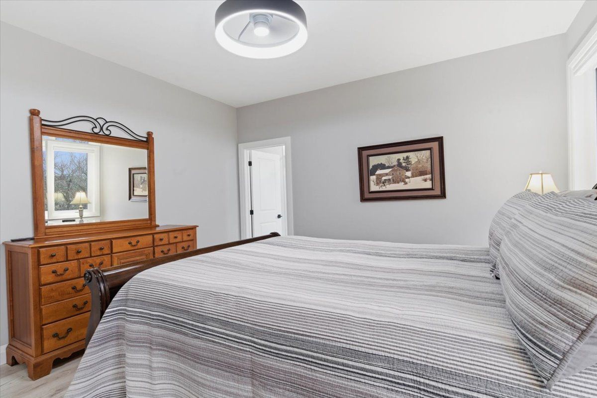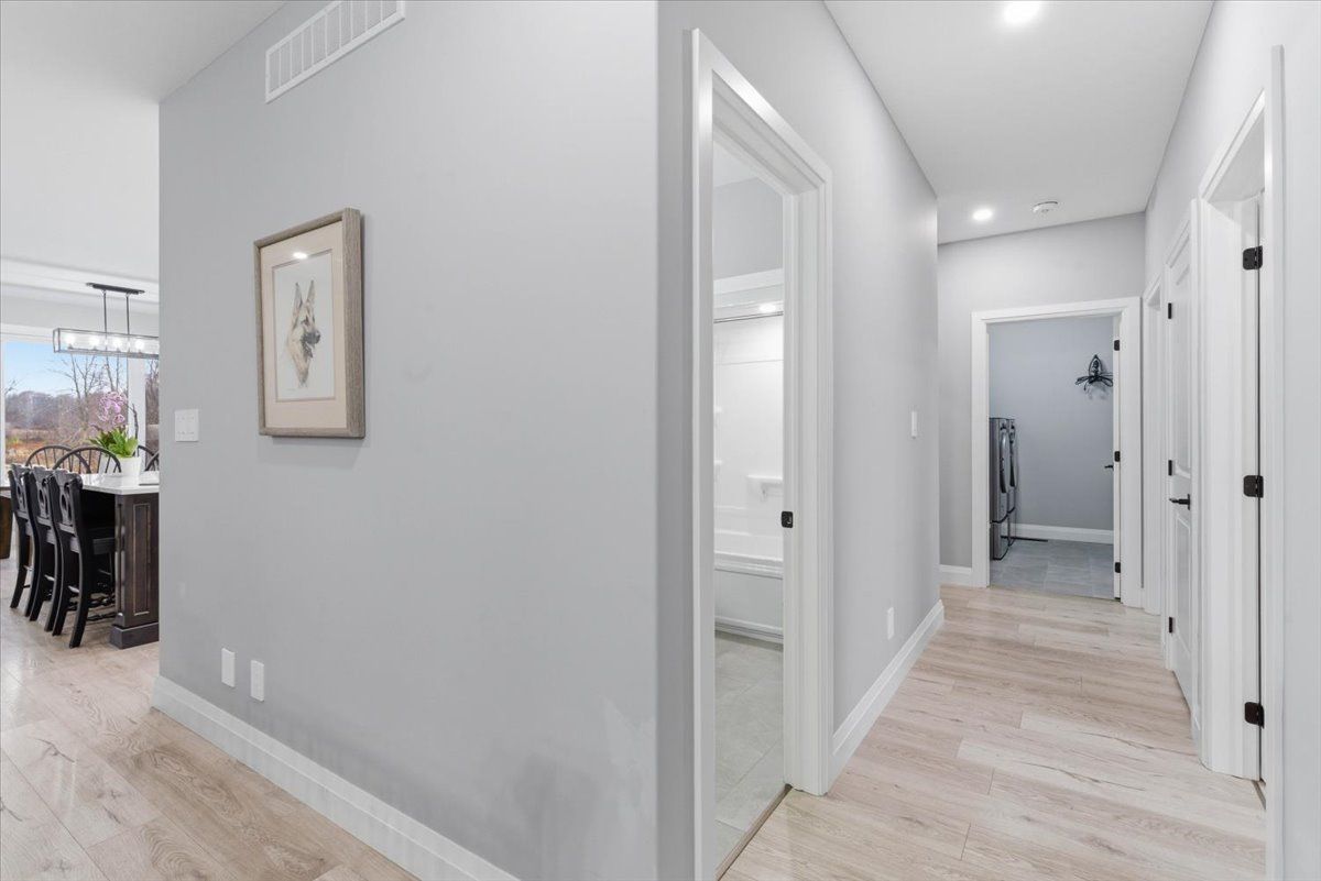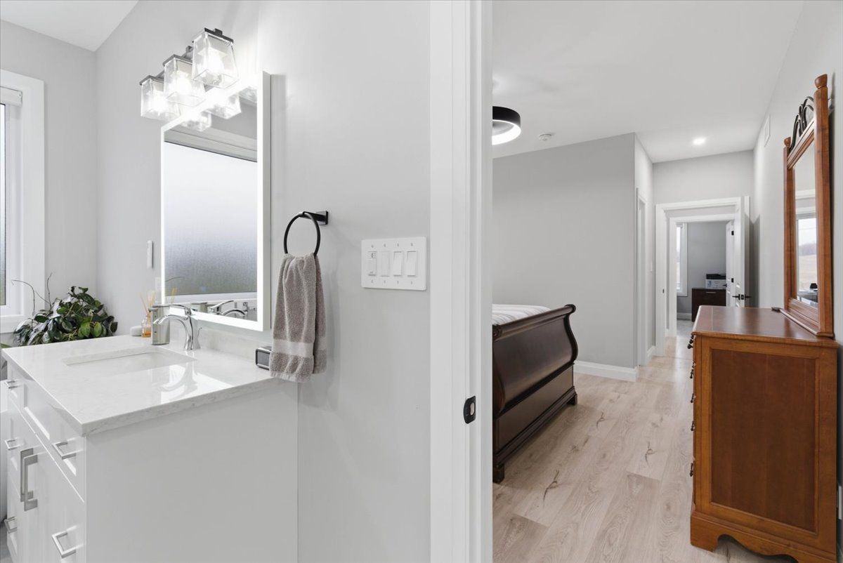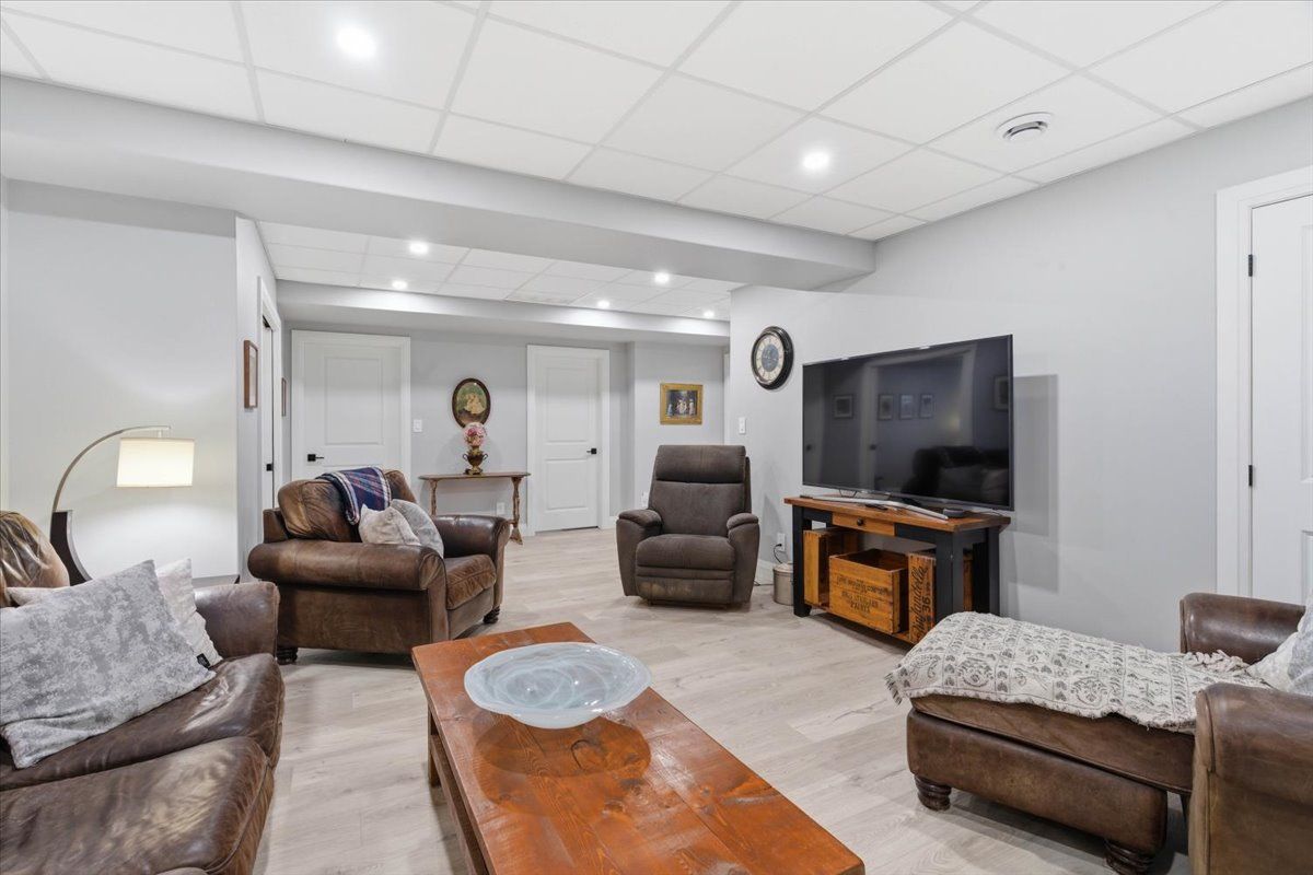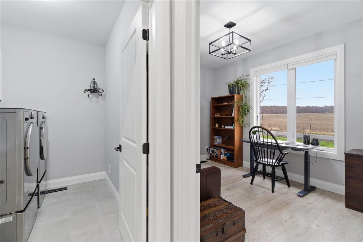 Gorgeous modern home in a lovely quiet rural setting. This property has exactly that and updates galore. This home shines with pride of ownership and has been beautifully renovated. Main floor offers spacious foyer and 9 foot ceilings throughout the main floor. Open concept living area with stunning kitchen complete with quartz countertops, island with overhang for bar stools, corner pantry and cabinets to the ceiling. Bright dining area with walk out to covered deck. Primary bedroom with walk in closet and spa like 4pc ensuite with large glass shower and amazing soaker tub. Two additional generous bedrooms, 4pc bath and main floor laundry with cabinets for additional storage. The lower level has been fully finished and is a wonderful addition to this home. It offers a large rec room and bedroom. Further to that a lovely guest suite which boasts a kitchenette (2 burner induction cooktop/convection microwave oven) and island. Bright bedroom area, large closets, fully rotating tv mount and 3 pc bath. Fully fenced area of yard, attached insulated and heated double car garage. Further property updates include, 12 x 12 wooden shed with hydro, yard lights, 26kw kohler home generator, 5ft high chain link fence, bathroom mirrors are lighted and heated. Basement walls have extra insulation and safe'n sound insulation in ceiling. Located less than 20 minutes to 401, shopping, schools and all amenities. If you are looking for a tranquil setting and home that offers everything you could need then this is the one!