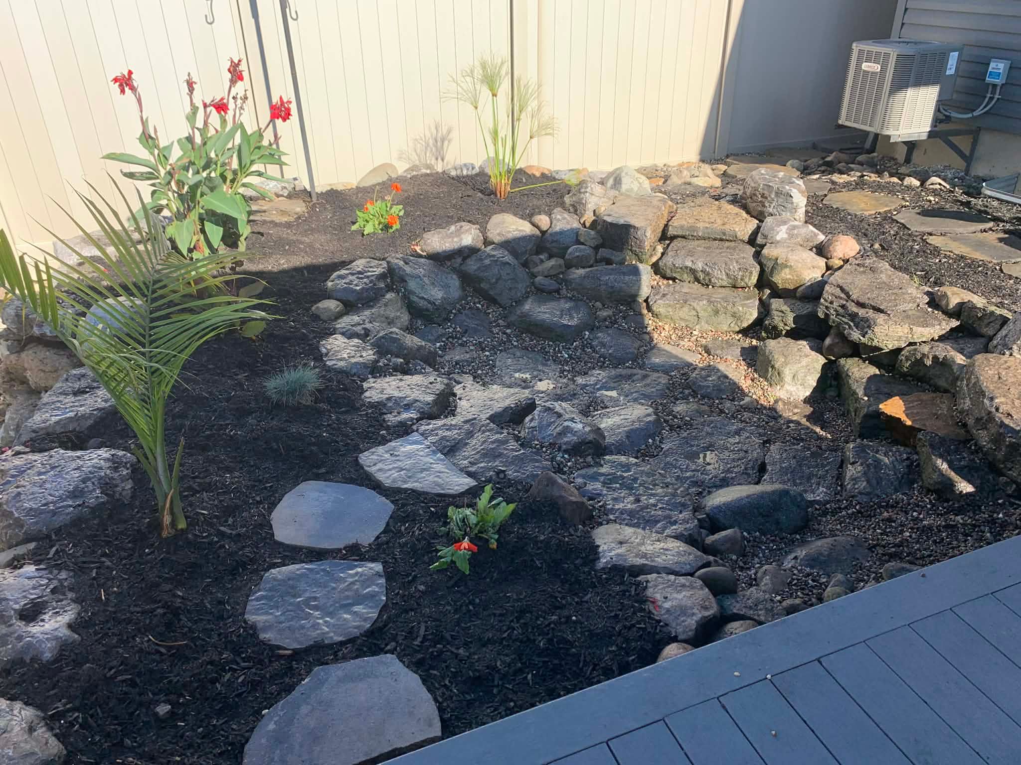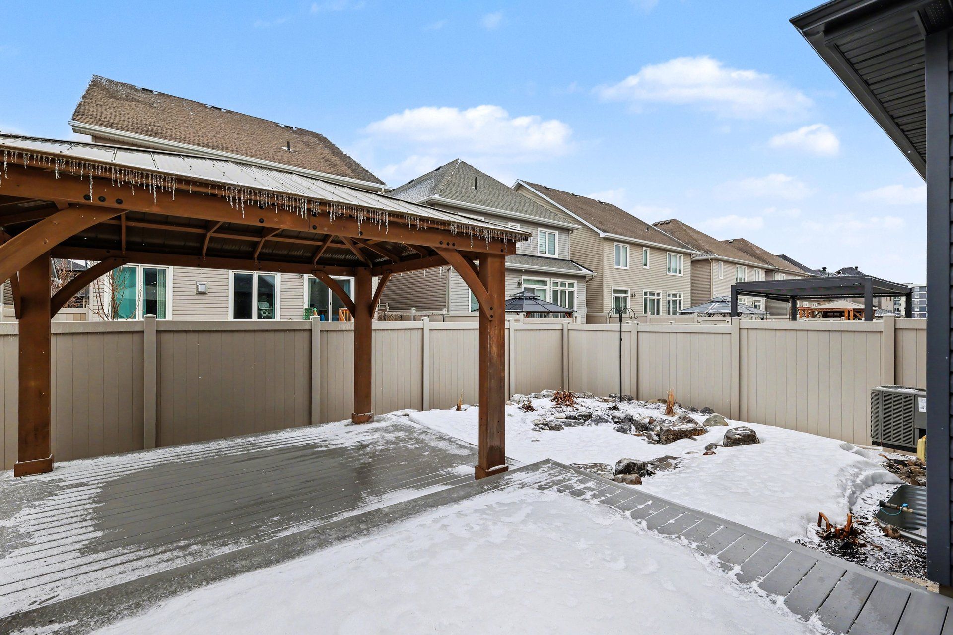 • Maintenance-free backyard with a two-tiered deck for outdoor enjoyment.