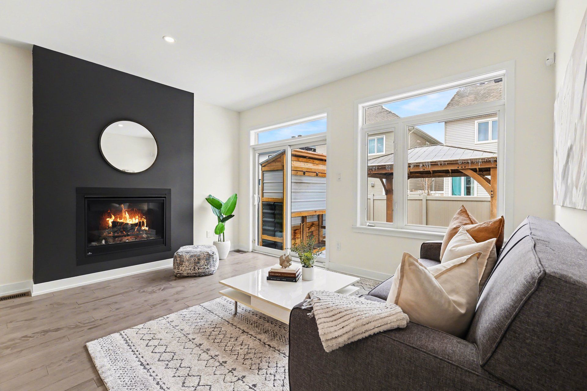 Welcome to 565 bobolink ridge, located in the highly sought-after community of westwood. This detached bungalow was originally the claridge model home and features over $70,000 in custom upgrades, including stunning 9-foot ceilings. The main level offers two spacious bedrooms and two full bathrooms, along with a generous dining room perfect for entertaining. The open-concept kitchen and living area are flooded with natural light, creating a warm and inviting atmosphere. The kitchen is beautifully appointed with upgraded cabinetry, additional pantry storage, white quartz countertops, breakfast bar seating, ample prep space, and striking white appliances that elevate the entire space. The living room is anchored by a standout gas fireplace and large windows overlooking the backyard. The oversized primary retreat easily accommodates a king-size bed with room for any additional furnishings. It features a walk-in closet with custom built-ins and a luxurious five-piece ensuite complete with a soaker tub, water closet, double sinks with quartz counters, and a tiled glass shower. The fully finished basement nearly doubles the living space and includes a large recreation room and a third bedroom-perfect for guests or a home office. Outside, the fully fenced maintenance free backyard offers a two-tiered deck, and plenty of additional space for outdoor living and entertaining. Ideally located close to great schools, the trans canada trail, transit, parks, shopping, and a short walk to the new blackstone bistro which will house a cafe great for your morning coffee, date night spot at the lounge or visiting the market, a convenient local grab and go grocery store. The home is complete with an expanded driveway and stunning interlock walkway, it is truly turn-key!