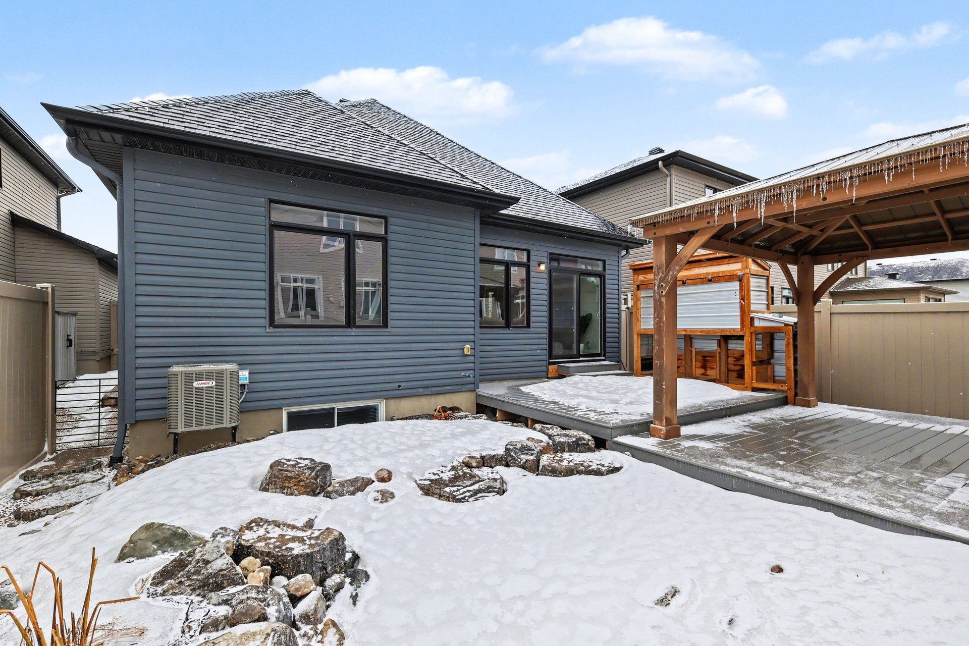 • Maintenance-free backyard with two-tiered deck for outdoor entertaining.