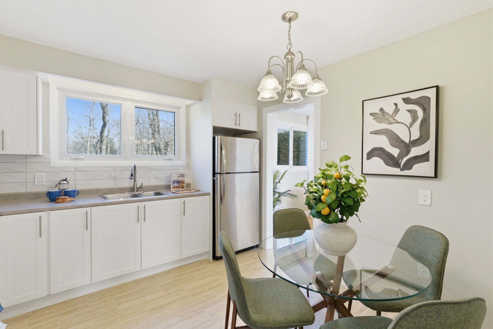 • Updated kitchen with stainless steel appliances and modern cabinetry.