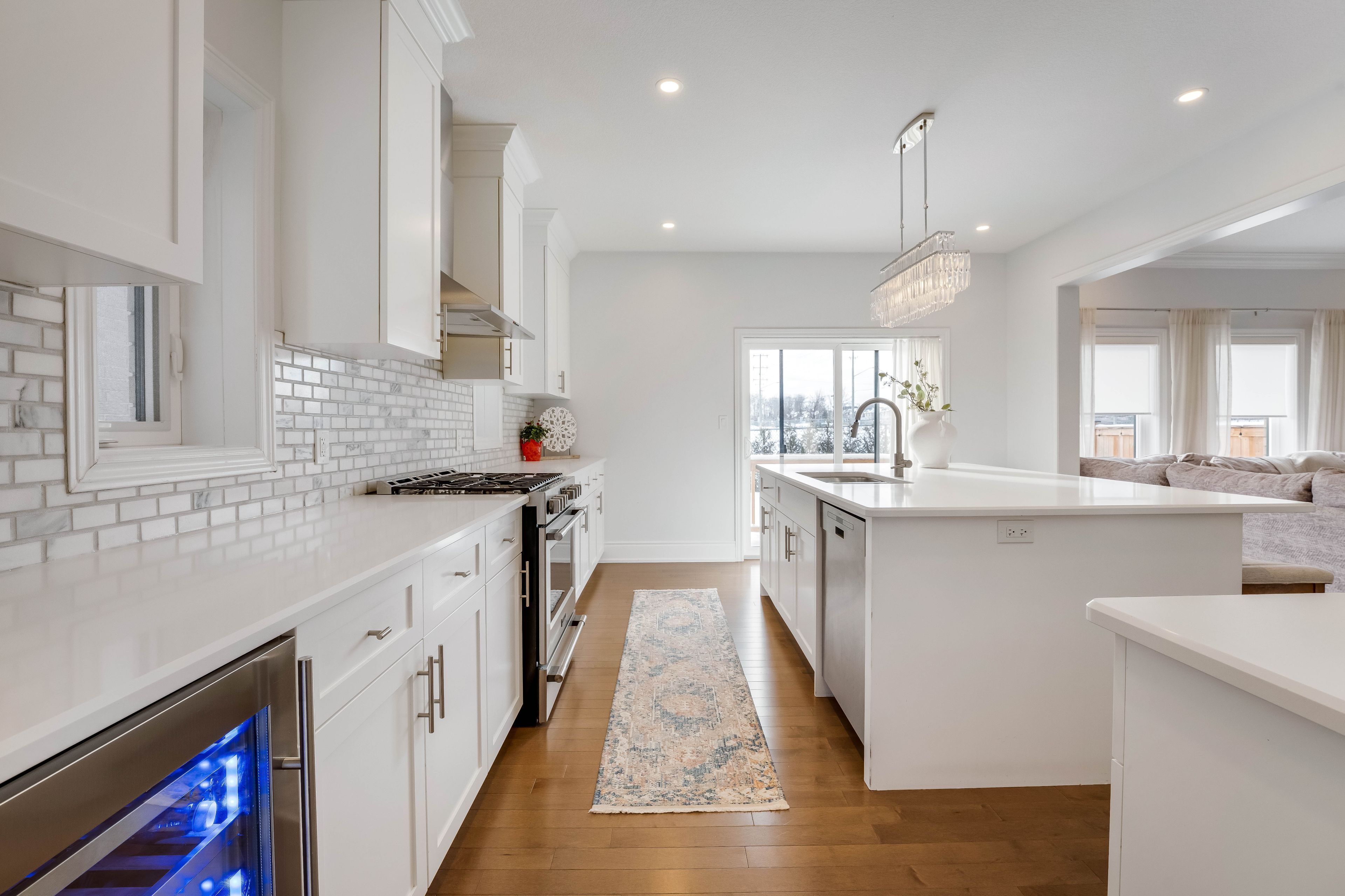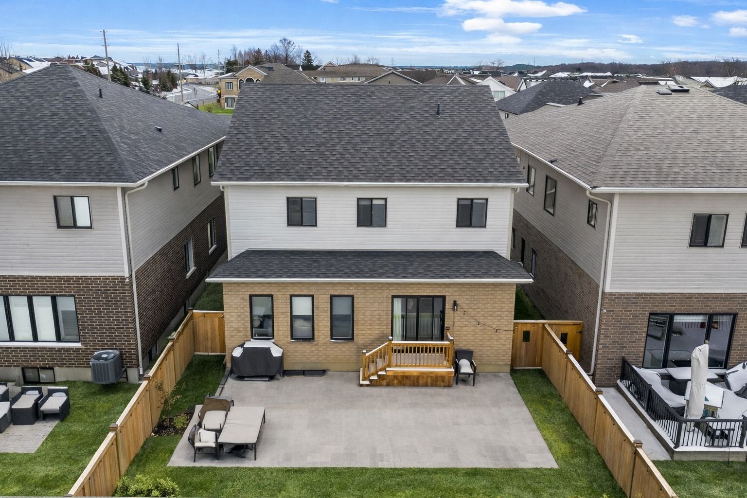Welcome to 565 florencedale crescent, kitchener: exceptional opportunity in the highly sought-after community of huron park. Nestled on a quiet, family-friendly crescent, this beautifully maintained 3-bedroom, 3-bathroom house offers outstanding curb appeal with lush landscaping and rare 5-car parking (2-car garage, 3-car driveway). Step inside the welcoming foyer with grand entrance overlooking a spacious powder room. The sun-filled open-concept main level showcases solid hardwood flooring, 9-ft ceilings, oversized windows and a cozy fireplace that anchors the living space with warmth and style. The kitchen is perfectly designed, featuring quartz countertops, ss appliances, sleek finishes, a sizeable centre island and a walk-in pantry. (range hood sold as is.) the adjacent dining area offers an ideal setting for family meals. Upstairs, a bright bonus family room adds flexibility, perfect for a media space, office or additional lounge area. The primary suite complete with a walk-in closet and a well-appointed ensuite featuring dual sinks, soaker tub and a separate standing shower. 2 additional spacious bedrooms and a shared 4pc bath provide comfortable accommodations. Upper-level laundry is cherry on cake. The fully finished basement with separate access significantly increases the property's value, featuring 9-ft ceilings, a large rec area, kitchenette setup, 3pc bathroom and an additional bedroom, this lower level offers excellent in-law suite or multi-generational living potential. The fully fenced backyard is for summer enjoyment, offering a generous patio space ideal for bbqs, entertaining or relaxing outdoors. Location is a major highlight. Minutes to huron natural area, trails, rbj sports complex, top-rated schools, parks, public transit and easy highway access. Whether you are expanding your portfolio or searching for a home with income potential, this property is a perfect opportunity. Schedule your showing today and make this your forever home!